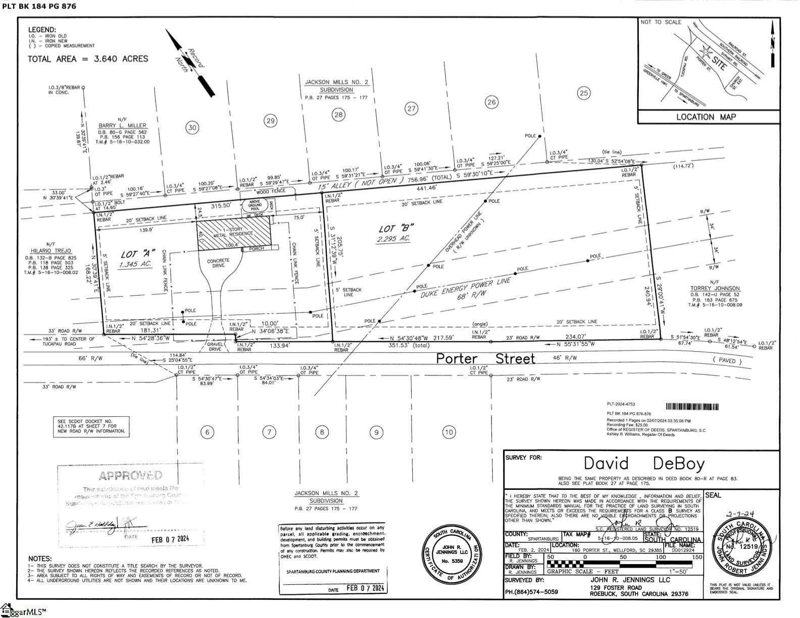 This is great location for a new home. Seller is selling .76 acres indicated on Lot B. Buyer will be responsible for surveying the .76 acres. This listing is for Lot B on the exhibit. Buyer will need to have a survey completed and PERC test. There's an electrical easement that runs through the property. Seller confirmed that the electrical line can be moved by Duke Power when a permit to build is received.