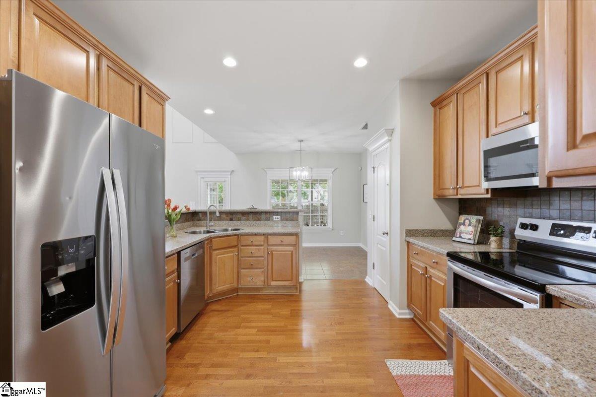 YOUR NEXT FIVE FORKS DREAM HOME! This Beautiful 3BR/2.5BA with Huge Bonus Room home sits on a large .30 fenced corner lot in the Popular Gilder Creek Farm Pool Community of Simpsonville. This home has a wonderful combination of Brick & Stacked Stone in the front with plenty of opportunities for landscaping to the "hilt"! There's also a Gigantic screened porch in the back, perfect for BBQs and Relaxing on those great Carolina nights! Stepping inside you'll be WOWED by the Spectacular Two-Story Foyer that ushers you into the Two-Story Great Room! The Great Room shows off a floor to ceiling Stacked Stone Fireplace! There's also a Formal Dining Room and Front Room that currently is used as a pool room with a Wet Bar but could be used as a Formal Living Room or Office. There's a Spacious Kitchen with Gorgeous Granite and Stainless-Steel Appliances plus a Breakfast area too. This home also features a Large Primary Bedroom on the main level with an Elegant Bathroom w/separate shower, garden tub and large closet with organizers. Upstairs you'll find two secondary bedrooms, Full Bathroom and a Huge Bonus/Theater Room. Many of the light fixtures are Brand New. This home offers so much for an affordable price, not to mention that desirable schools are associated with it, Bells Crossing Elem, Riverside Middle and Mauldin High Schools. Hurry before it's gone!