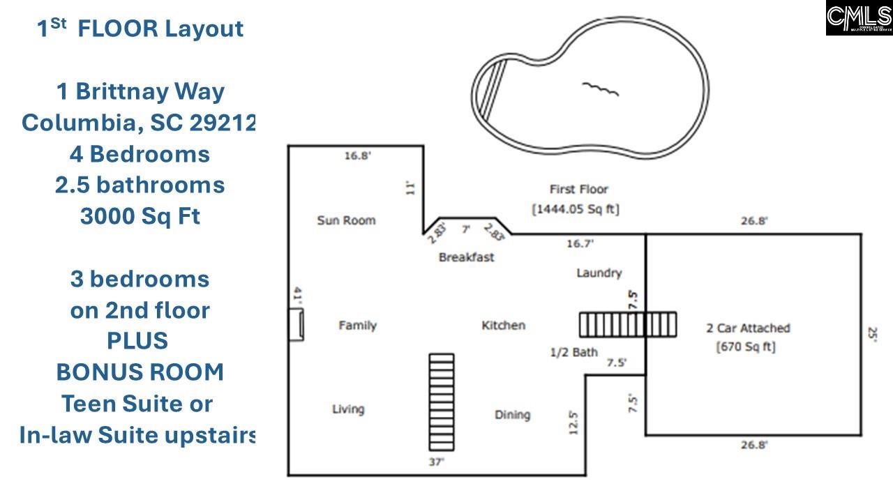 BACKYARD OASIS ALERT!!! This beautifully renovated all-brick home in the desirable Brittany neighborhood features a stunning gunite saltwater pool, nearly half an acre of privacy, and HGTV-style renovations throughout! PRICED $10,000 BELOW RECENT APPRAISAL! Brittany Way, a meticulously maintained 4-bedroom 2.5 bath is located in the award-winning Lexington/Richland 5 School District.Situated on a spacious 0.47-acre lot, featuring beautiful modern updates and timeless character you do not find in newer construction. The 2023 renovated kitchen offers a fresh HGTV-inspired design with warm tones, updated finishes including newer stainless steel appliances, farmhouse sink and a large center island with eat-in kitchen space and LOTS of Storage! The modern lighting flows perfectly into the living and entertaining spaces, making it great to entertain friends and family! The primary ensuite was also fully renovated in 2023, creating a spa-like retreat with large closets and tall tray ceilings. Step into the large sunroom / all-season room, the perfect place to relax year-round while overlooking the fully fenced backyard and your private inground gunite saltwater pool — truly a backyard oasis ideal for entertaining, summer pool days, and quiet evenings at home. This solidly built 1986 all-brick home combines craftsmanship and durability rarely found today, set in a neighborhood known for its custom homes, wide streets, and large half-acre lots — not cookie-cutter living.Additional features include: * Oversized side-entry 2-car garage * New roof (2019) * Encapsulated crawlspace (2023) * Water filtration system (2023) * Air filtration system (2026) * Fresh paint and updated lighting throughoutIf you are looking for space, quality construction, modern updates, and a resort-style backyard, 1 Brittany Way is a must-see. See the walk-through video to appreciate the details! https://youtu.be/dXUIYoDnFY8?si=pngEtTI9OFvz0WEy Disclaimer: CMLS has not reviewed and, therefore, does not endorse vendors who may appear in listings.