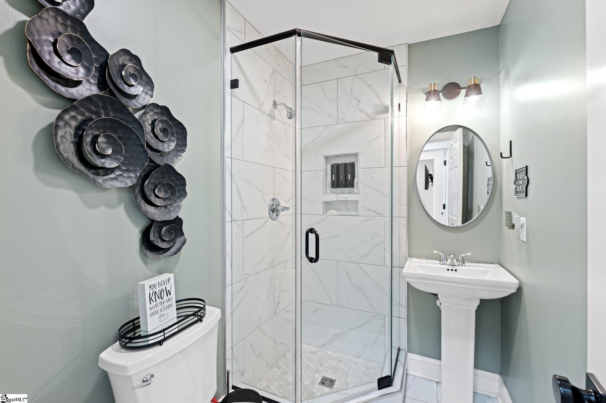 Discover the perfect blend of style, comfort, and convenience in this stunning turn-key home situated on a corner lot in the heart of Simpsonville. 1 Clevington Ct, located in the highly desirable Carrington Green neighborhood, has been completely renovated, every inch has been thoughtfully upgraded to create a space that feels new while still warm and inviting. The open main living area features rich hardwood floors, a striking floor-to-ceiling marble accent wall with an electric fireplace, and abundant natural light. The chef’s kitchen is a showpiece with crisp white cabinetry, granite countertops, stainless steel appliances, and a spacious island for all to gather around.The butlers pantry provides functionality with a beverage cooler, small sink and plenty of organization. There is also a formal dining room with accent wall and a dedicated home office with french doors to provide ample natural light. The primary suite is located on the main floor for easy living, complete with a beautifully updated en-suite bath. A secondary bedroom is also on the main level providing flexibility for guests or a second home office. Upstairs, you’ll find the loft perfect for movie night, two additional bedrooms and a beautifully done laundry room. Step outside to your own backyard retreat. The fenced, landscaped yard with a sparkling saltwater in-ground pool, a pergola-covered patio perfect for cookouts or relaxing under the bistro lights. There is a bonus rec room above the garage with its own half bath perfect for a gameroom. Located minutes from Downtown Simpsonville’s charming shops and dining, and a short drive to Heritage Park Amphitheatre with quick access to I-385 for an easy Greenville commute. Move right in and start enjoying the good life in Simpsonville from day one.