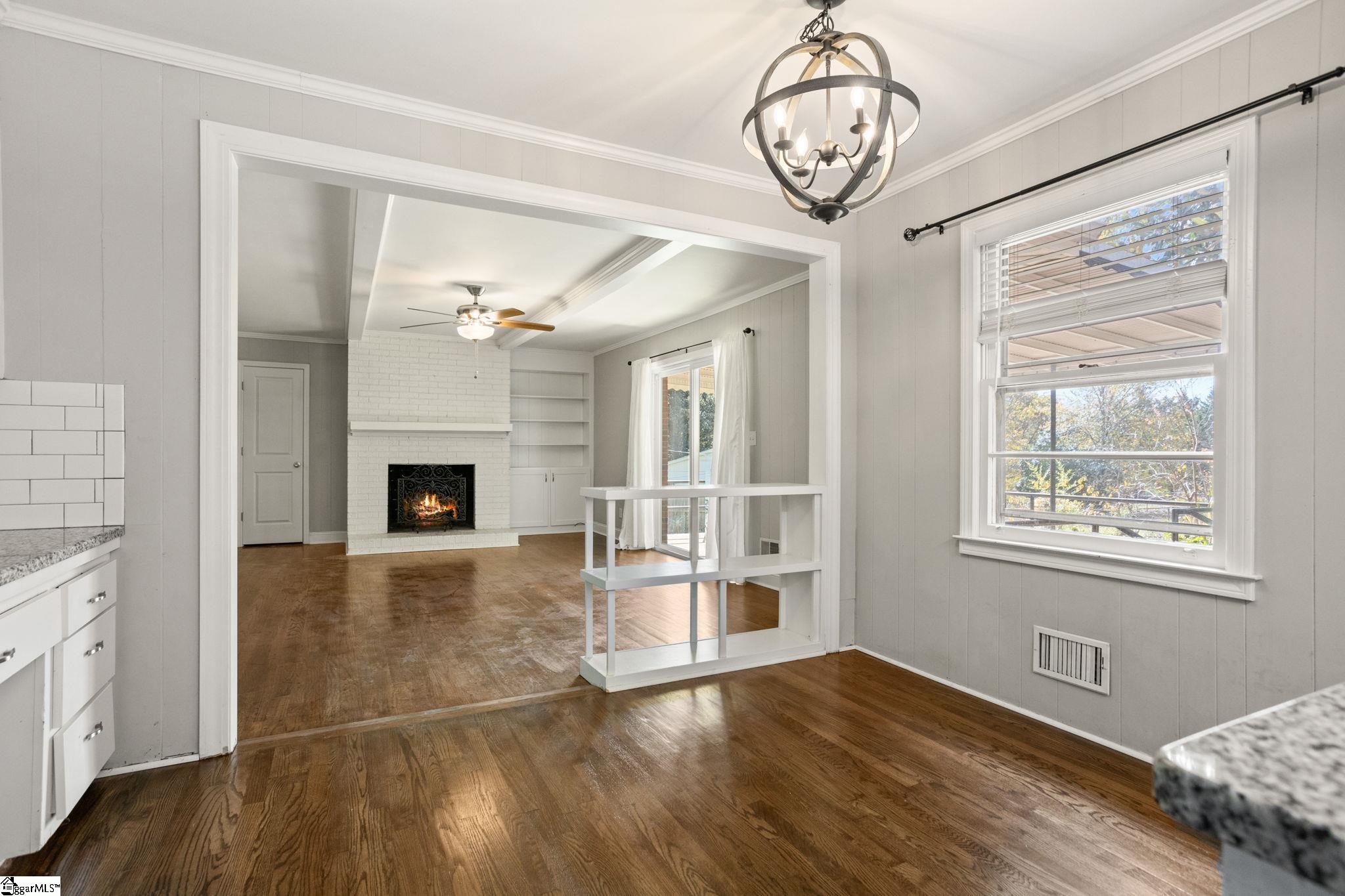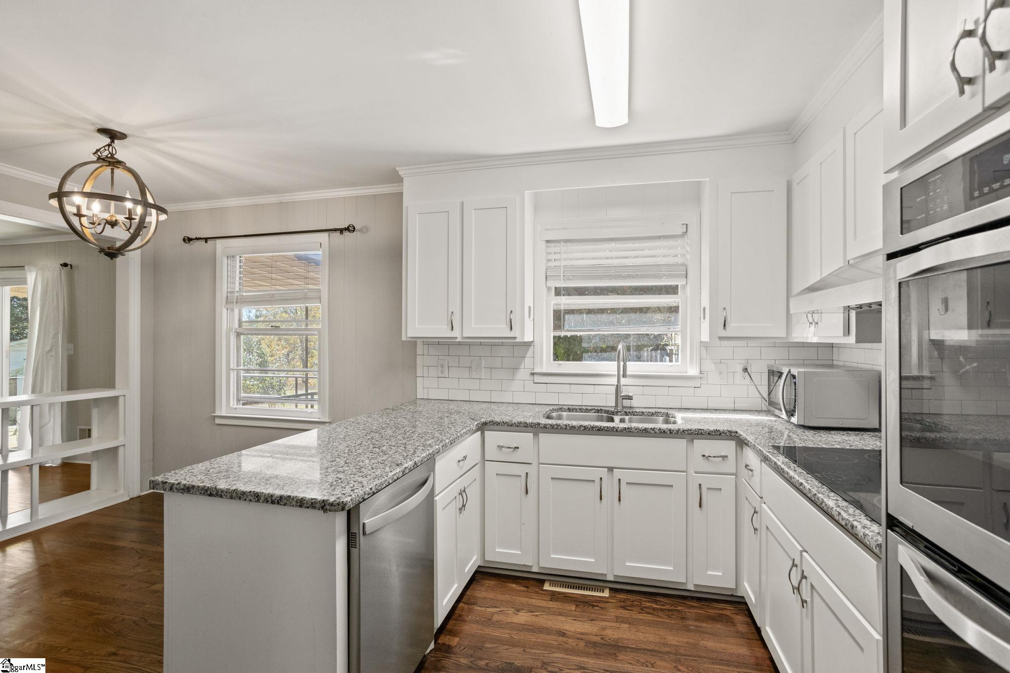 Fantastic brick ranch on a large corner lot zoned to Eastside High School! This 3 bedroom, 2 bath home sits on an over 1/2 acre lot and was renovated in 2020, giving homeowners the best of a traditional floor plan with modern updates! A front living space & traditional dining room work for a traditional setup or, for those that opt out of traditional spaces, these rooms could serve as a home office and/or kids play space. The kitchen with breakfast nook is open to the larger family room, with windows facing the backyard. Kitchen features stainless steel appliances (including cooktop + double wall ovens), granite countertops, and all appliances to convey with sale. The covered patio sits in the fully fenced backyard with wood, privacy fencing. Main level primary suite with ensuite bathroom. Secondary bedrooms share large hall bathroom with double vanity. Walk-in laundry & additional storage room accessed via the attached garage. Hardwood flooring and updated light fixtures throughout the home! Don’t miss your chance to tour this desirable brick home in a sought after school district, SCHEDULE A SHOWING TODAY!