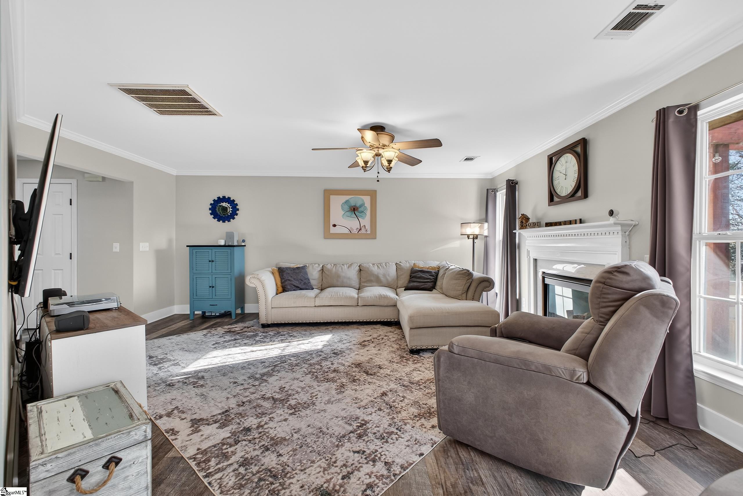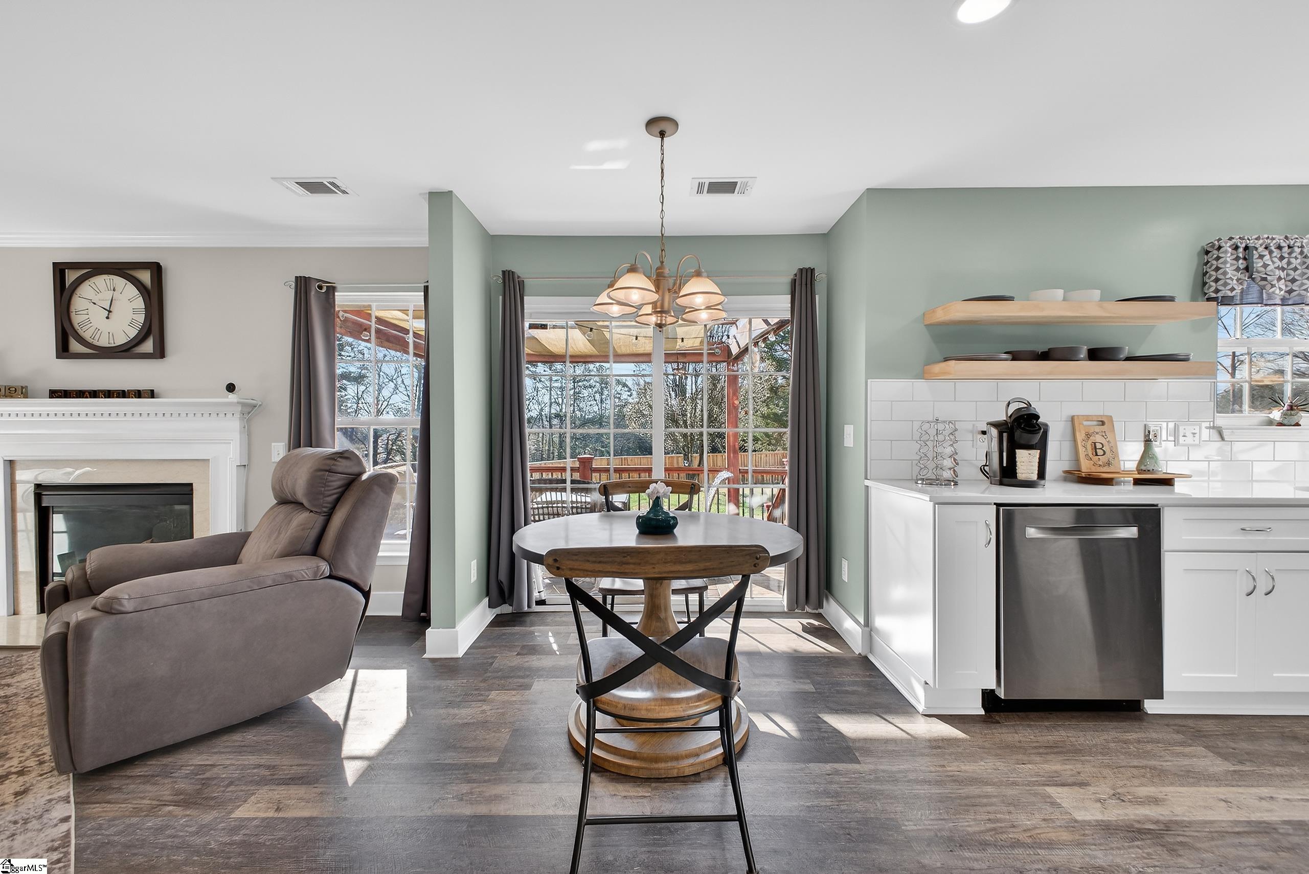 This meticulously maintained 2-story traditional home in the sought-after Five Forks area offers a seamless blend of classic detail and functional design. The main level features LVP throughout an open floor plan, highlighted by elegant crown molding in the living room and chair rail accents in the formal dining room. A gourmet-style kitchen with a central island and breakfast bar opens to a spacious den with a focal-point fireplace. Retreat upstairs to four generous bedrooms, including a primary suite with a walk-in closet and private bath. Outdoor living is a breeze on the expansive rear deck. Enjoy prime location benefits: walking distance to community amenities and close proximity to local retail, dining and entertainment.