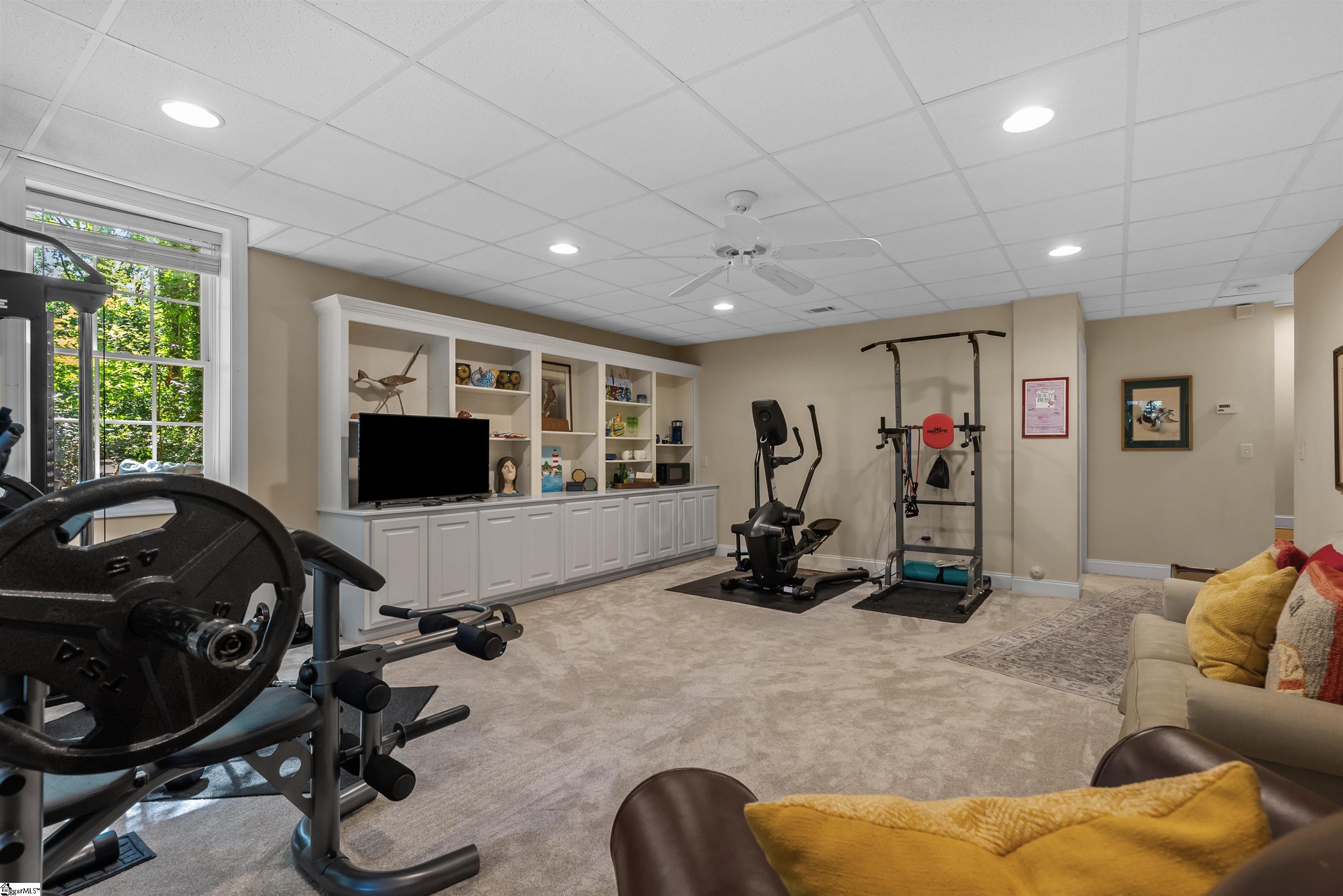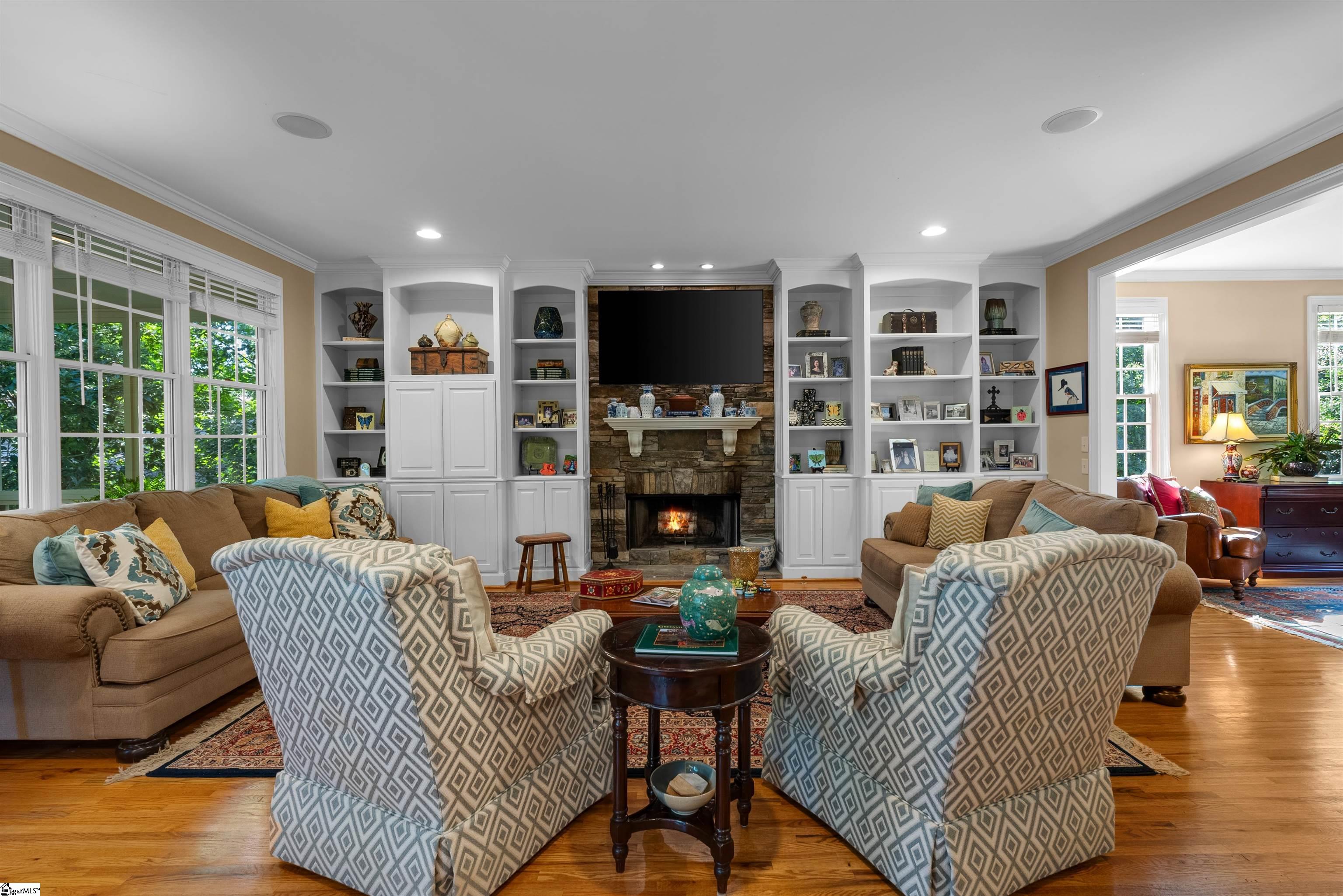 Custom Rick Quinn home in GATED Brookside Forest in GCC Area INCLUDES GOLF CART GARAGE and THE GOLF CART STAYS! 2/3 acre cul de sac lot surrounded by wooded privacy in adjacent Gatlin Park. 5 min's to I-85, to PRISMA, to Downtown GVL. Feel AT HOME from the covered front porch to delightful scrn porch! 9ft ceilings, classic skinny site-finished hardwoods, NEW roof, BRAND NEW HVAC on 2nd flr, brand new stainless appliances, gas cooking. Great Room w/FPLC open to granite kitchen, easy flow to Dining Rm & Home Office. In-Law Suite on walk-out Terrace Level enjoys covered deck just outside. 2-car attached garage Pre-inspected, repairs done - No Guesswork! See Assoc Doc's for complete list of improvements. MOVE-IN-READY!