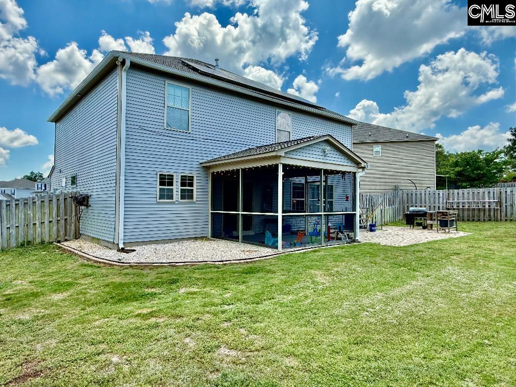 4-bedroom with an extra room in the entryway, 2.5 bath home with attached 2 car garage and a detached workshop on a quiet cul-de-sac with large fenced in private back yard. A 10x10 gambrel-roof shed has just been added, completely decked out with workbench, wraparound loft shelving and pegboard, wired with lights and outlets and a high-speed fan on a switch, and a heavy-duty floor. The 2-car garage with overhead storage and bike hangers, and the full parking area has been kept open for vehicles. Laundry room conveniently located on the second floor at the top of the stairs. One of few in the neighborhood with wooded area in the yard, which has been sculpted to be walkable, complete with hammock and axe-throwing target. Granite countertops and modern appliances. The master bedroom has a vaulted ceiling, dual walk-in closets, double vanities, and a big bathtub plus shower. Constant hot water is supplied by a heat pump. This house has been well maintained inside and out, with attention to detail; better bathroom lighting, hidden wall-safes. It features paid off solar panels, roof gutters, pull-down ladder to the attic, recessed speaker system from the living room to the kitchen, in-ground sprinklers, invisible dog fence (mapped out in photos), screened back porch with reinforced protection on lower half to prevent animal damage. Planted in the backyard are two plum trees and an apple tree which should begin to produce a more substantial amount of fruit in another year or two. Disclaimer: CMLS has not reviewed and, therefore, does not endorse vendors who may appear in listings.