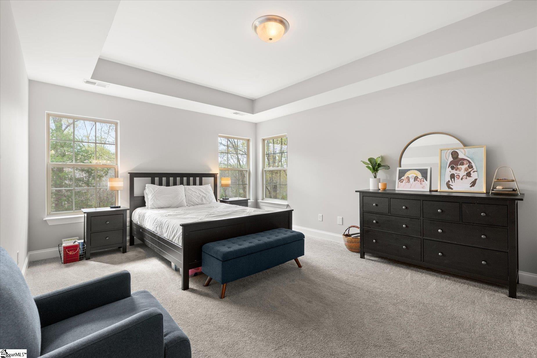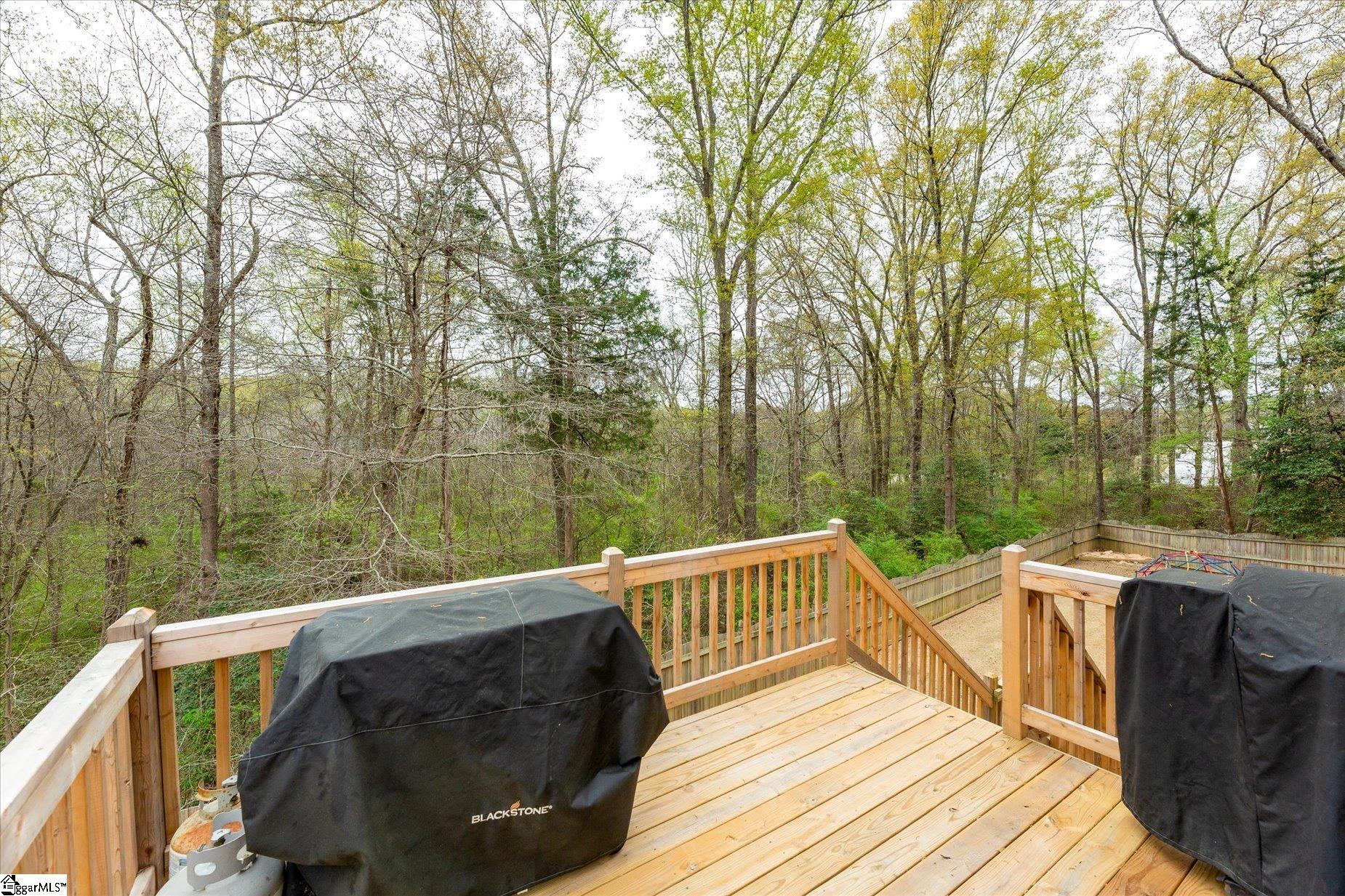 Five Forks Perfection: Modern Luxury Meets Wooded Privacy with this stunning 5 Bedroom, 4 Bathroom home featuring a massive, full finished walk-out basement. The main level offers a bright, open-concept floor plan centered around a chef-inspired kitchen with a large granite island, shiplap accents, and a floor-to-ceiling fireplace. For added convenience, the main floor also includes a guest bedroom and a full bathroom, perfect for visitors or multi-generational living. Whether you are hosting a formal dinner or a casual family gathering, the seamless flow between the living and dining areas makes entertaining effortless. Upstairs, a versatile loft provides extra living space, while the primary suite serves as a true retreat featuring a trey ceiling and an expansive walk-in closet with plenty of room for organization. The living space continues into the impressive walk-out basement, which includes a spacious recreation room, another private bedroom, a full bath, and a dedicated flex room ideal for a home office or storage. Practicality is found throughout the home, from the dedicated laundry room to the generous storage options on every level. Outside, the large, level backyard is fully fenced and backs directly to a mature tree line, providing a rare sense of privacy and a peaceful wooded view. This home offers the space, high-end finishes, and prime Simpsonville location that today's buyers are looking for.
