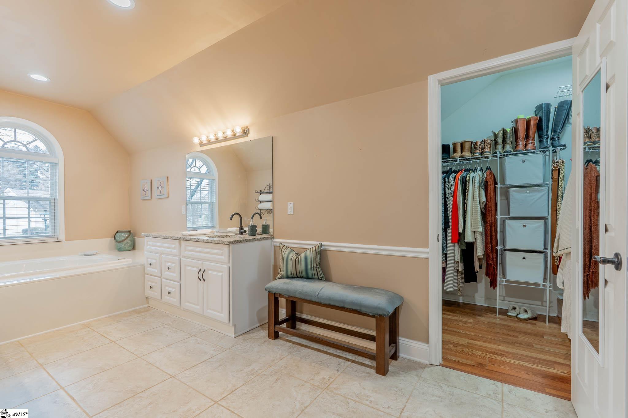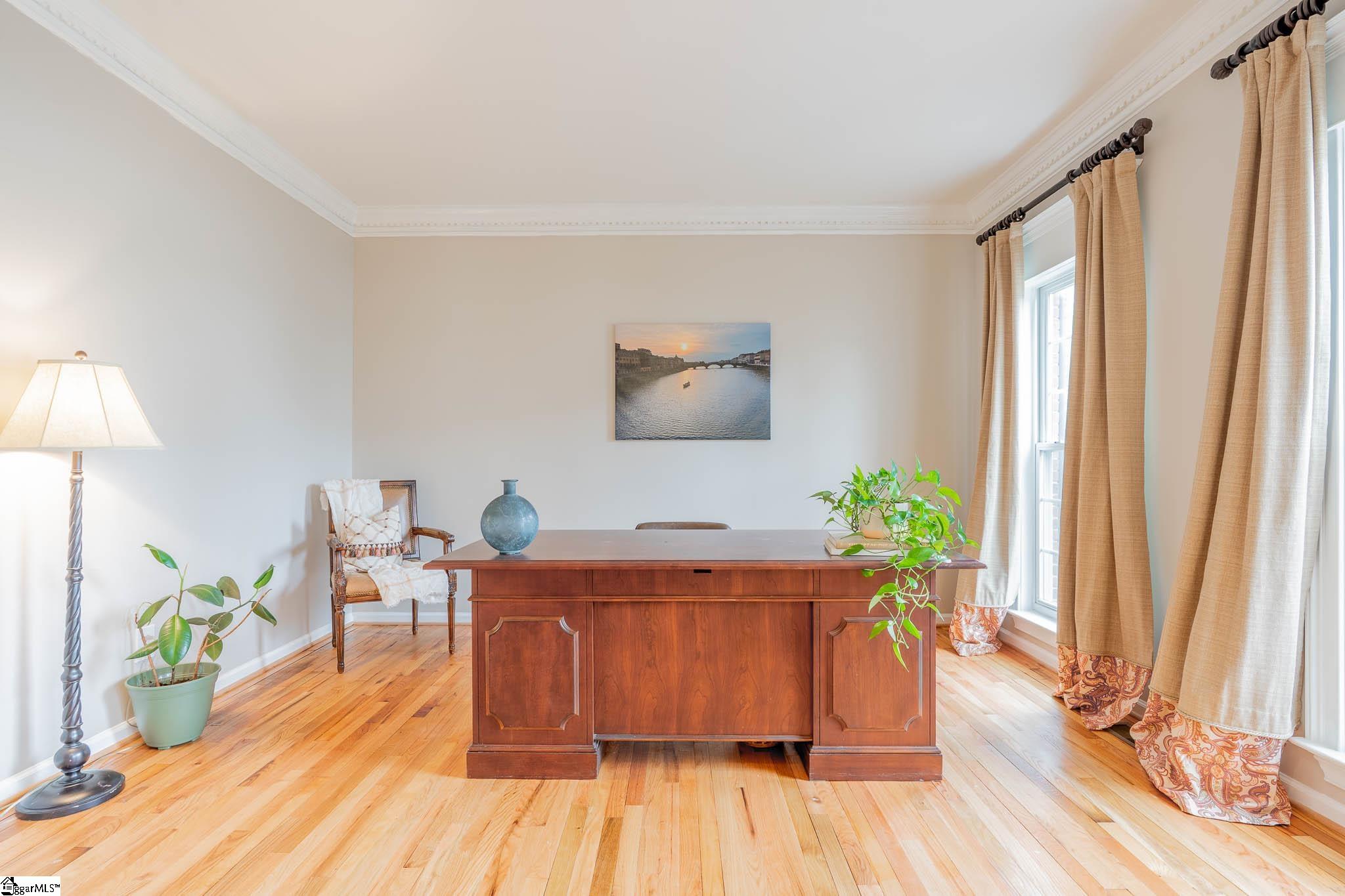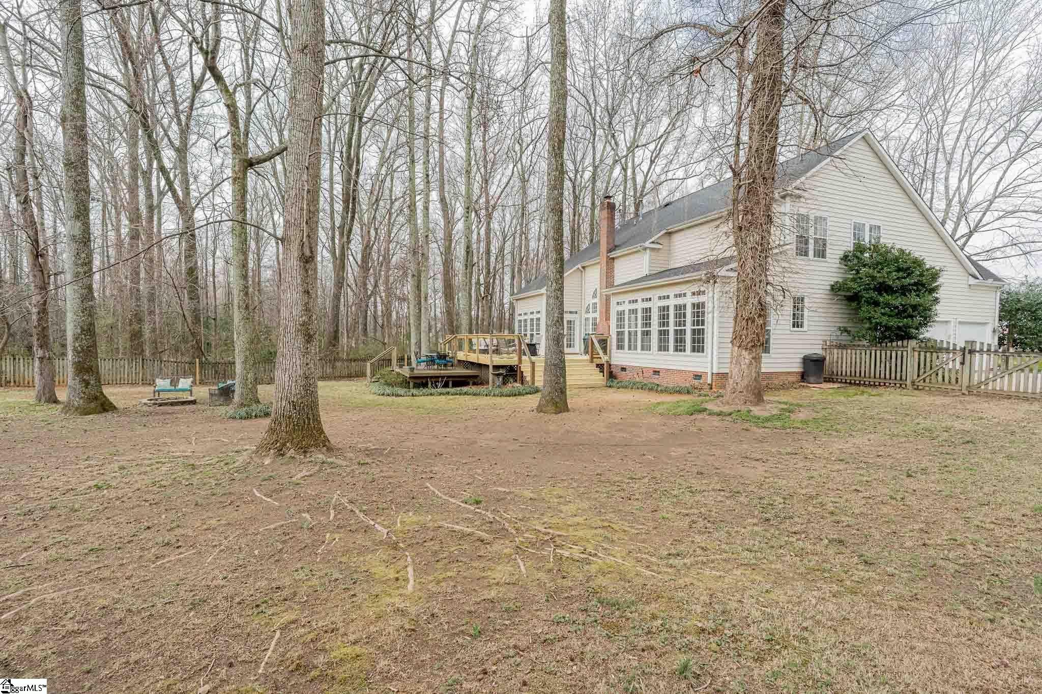 Find your FOREVER HOME on this estate property, conveniently located in sought after FIVE FORKS/SPAULDING area. This grand property graces a LARGE LOT at the end of a quiet cul-de-sac, shaded with established trees and next to a WOODED PRESERVE! Enter through the grand foyer that is flanked by a spacious living room/office and formal dining room on either side. Make your way to the Great Room where light streams through a PALLADIAN WINDOW WALL. White and bright kitchen opens to the living space graced by a cozy GAS FIREPLACE and LARGE BREAKFAST ROOM encased with windows that bring shaded backyard views into daily life. Enjoy the FLEX ROOM and attached SUNROOM on the main floor that is perfect for another office option, school room, or entertaining guests. TWO UPDATED WOOD STAIRCASES are available to take you up to the bedroom floor. Primary suite is fit for Royalty! Grand primary bedroom features TRAY CEILING and enough space for a SEATING AREA. Attached primary bath has a show-stopping garden tub, updated his & hers vanities, and HIS & HERS CLOSETS! 3 more bedrooms and a generous bath with DOUBLE SINKS complete the level. Every day is a “stay-cay” when you have an outdoor living area that features a DOUBLE LEVEL DECK, large enough to entertain all of your friends and family at once! Level lot areas are ready for your plants and vegetable gardens and plenty of space for kids play! Roper Meadow “walking neighborhood” with SIDEWALKS and a COMMUNITY POOL. Located near Five Forks shopping and highway access to downtown Greenville, just 15 minutes away. HIGHLY RATED Oakview, Beck & JL Mann school district! This VALUE is hard to find in this area. Don’t miss your opportunity to make this home yours today!