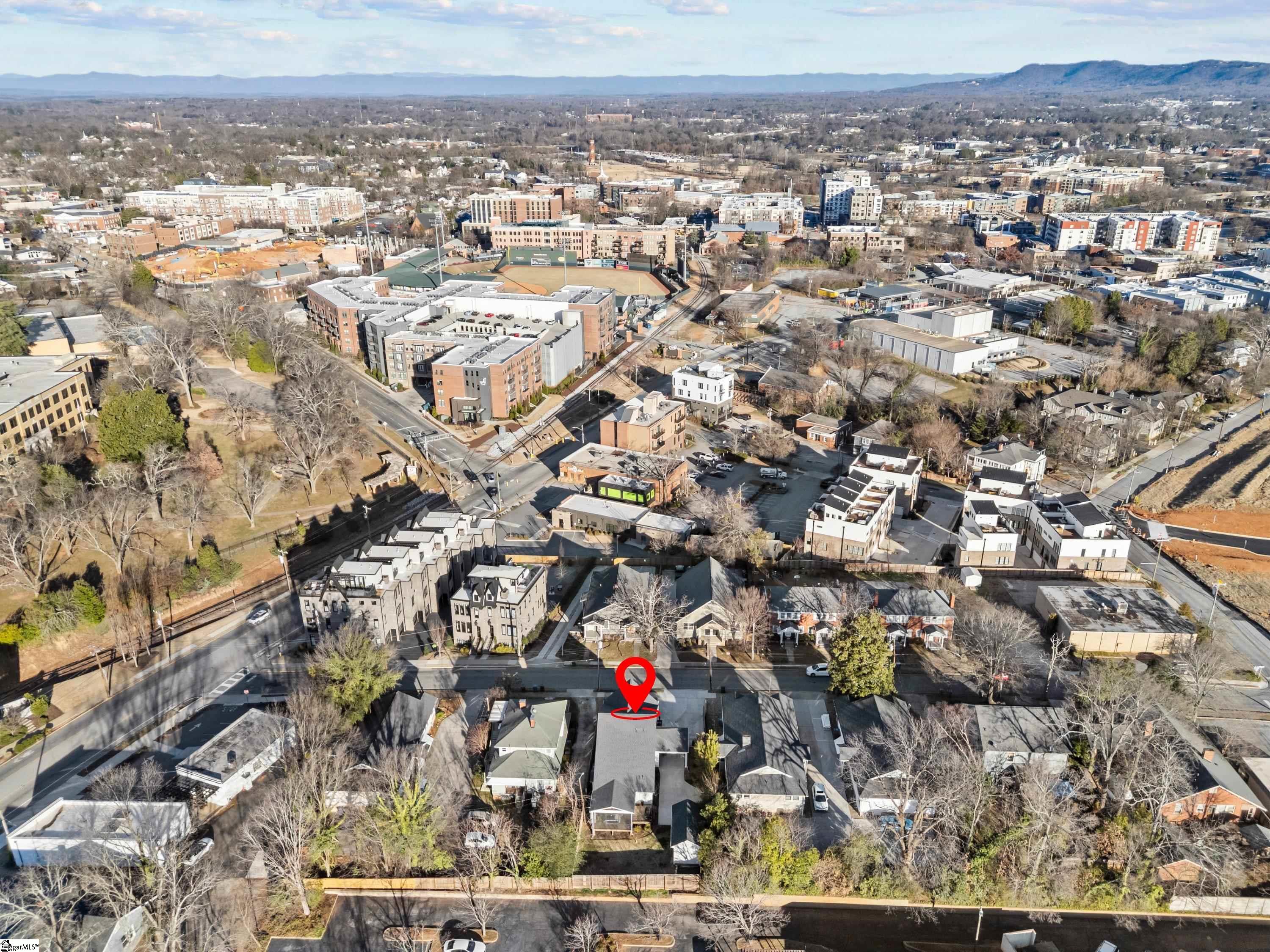 Just steps from the heart of downtown Greenville, this nearly brand-new 2022 single-family home offers the perfect blend of modern living and unbeatable location. Situated only 0.3 miles from Fluor Field and a quarter mile from the transformative, BILLION-DOLLAR University Ridge redevelopment, this home places you right in the middle of Greenville’s most exciting growth corridor. Not a townhouse, not a condominium, this is a true single-family residence with no HOA fees, an increasingly rare combination in downtown Greenville. Homes within walking distance of downtown rarely come to market, making this an exceptional opportunity for buyers seeking long-term value, privacy, and flexibility. The home features 4 bedrooms and 3.5 bathrooms, including a primary suite on the main level with a spacious en-suite bath and his-and-hers walk-in closets. High ceilings, clean modern finishes, and an open layout create light-filled, functional living spaces throughout. Additional highlights include ample off-street parking, a detached garage, and thoughtfully designed outdoor living space—perfect for entertaining or unwinding after a day downtown. With the feel of new construction and the walkability of an urban location, this property delivers the best of downtown living without compromise.