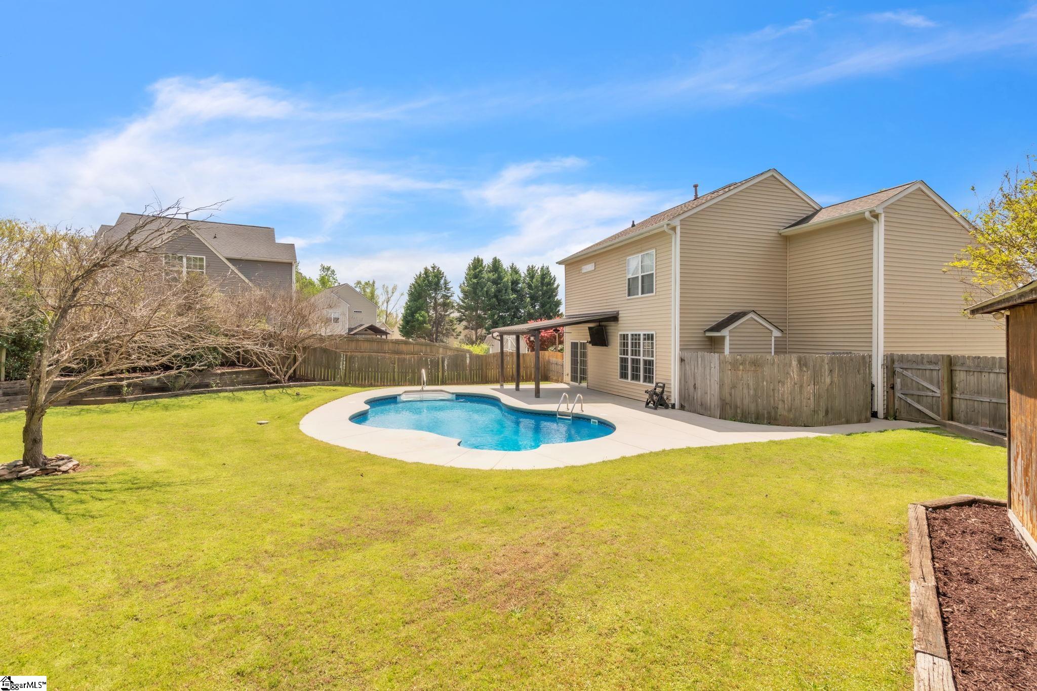 Welcome to 10 Hessell at The Reserve At Riverside in Greer, SC. This 3 bedroom 2.5 bath home with spacious bonus room offers the perfect setup for both everyday living and weekend entertaining. Inside you will find fresh updates including brand-new paint, new carpet, and luxury vinyl plank flooring throughout. The kitchen features granite countertops and opens seamlessly to the living and dining areas-creating an inviting, open concept space ideal for gatherings. Step outside and you'll immediately see what sets this home apart. The backyard is a true private retreat, centered around an in-ground pool (installed in 2015) with a new pool liner replaced just a year ago. A covered pergola with power adds the perfect touch-whether you're watching the game, relaxing poolside, or hosting friends just steps from the kitchen.