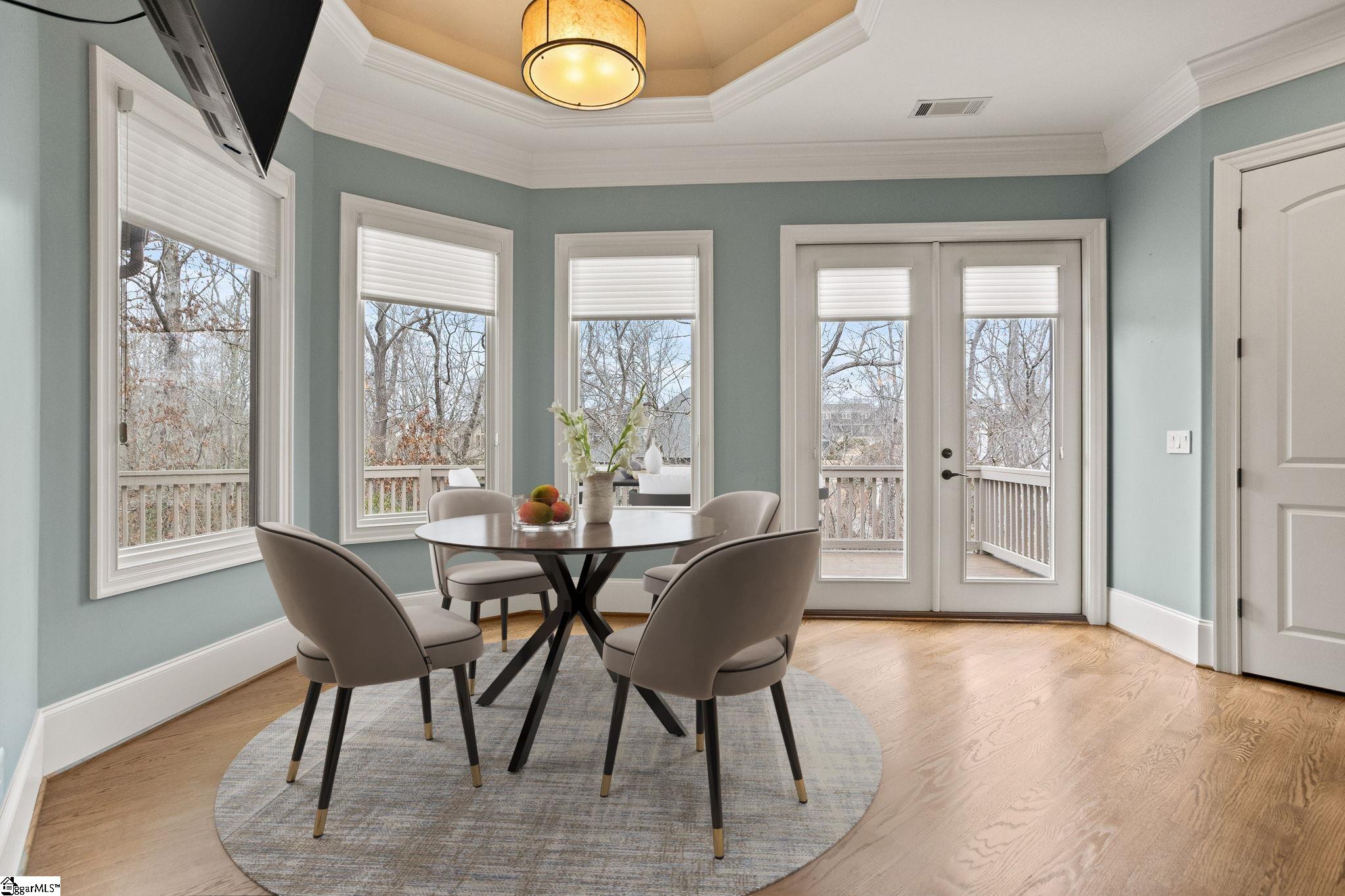 Enjoy the great outdoors in PRIVACY on TWO SCREENED PORCHES! Move-in-ready, immaculate charmer backs up to Acadia's common area WOODED PRIVACY and WALKING PATH. 4700+ sq ft plus 3-CAR attached garage & ABUNDANT STORAGE, expansion potential in 1000+ sft walk-in attic. IDEAL LOCATION: 3 min's to I-85, 5 min's to PRISMA, 10 min's to Downtown GVL, Acadia includes a PLAYING FIELD, TENNIS & PICKLE BALL CRTS, POOL, COMMUNITY PAVILION and kayak access to the SALUDA RIVER. Already inspected at seller expense, short list of repairs DONE - no guesswork! Enjoy HIGH CEILINGS, open concept, luxurious main floor primary suite, and versatile living spaces, including in-law suite on walk out Terrace Level. 10 Keller's Gate, nestled in this QUIET CUL DE SAC, is your forwarding address!