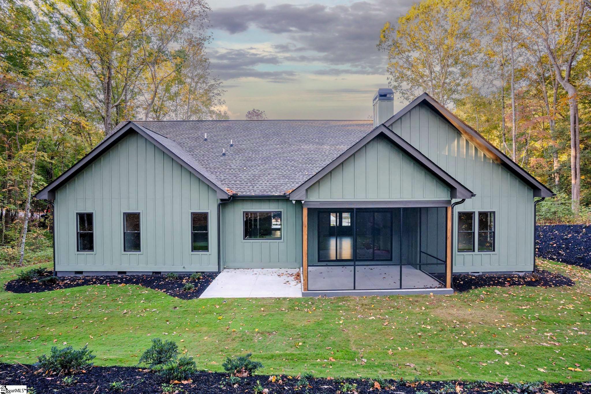 Introducing a stunning new build by Woodcrafters of SC, perfectly situated on the Cherokee Valley Golf Course! Welcome to 10 Laurel Valley Way, a beautifully crafted ranch-style home with an upstairs suite and timeless rustic charm. Nestled on nearly half an acre, the property is surrounded by mature trees, professionally landscaped grounds, and a full-site irrigation system—offering peaceful, private views of the eleventh tee. The curb appeal is undeniable, with its stylish board and batten siding, stone accents, and an exposed wood gable above the inviting rocking chair front porch. Step inside to discover a breathtaking open-concept layout highlighted by hardwood floors, soaring 10+’ ceilings, sophisticated lighting, and detailed moldings. In the spacious Family Room, a dramatic vaulted ceiling with tongue-and-groove woodwork and a striking scissor truss draws the eye upward, while a masonry gas log fireplace invites cozy evenings with loved ones. The Kitchen is a true showstopper, designed to impress even the most discerning home chef. It boasts sparkling quartz countertops, a large center island, abundant custom cabinetry, a herringbone tile backsplash, premium stainless steel appliances, and a walk-in pantry. Natural light pours in through an oversized window, creating a bright and welcoming workspace. Adjacent to the Kitchen, the Dining Room offers elegance with its ring candelabra chandelier and a convenient Butler’s Station—ideal for entertaining. Just off the Family Room, a dedicated Office or Study provides the perfect spot for remote work or reading. Retreat to the luxurious Owner’s Suite, where a deep tray ceiling with ambient uplighting sets a relaxing tone. The spa-like en suite features dual vanities, a soaking tub, a beautifully tiled shower, and an expansive 12x8 Carolina-style closet. From here, enjoy direct access to the well-appointed Laundry Room, which includes built-in cabinetry, a folding counter, and a utility sink for added convenience. This area also connects to a Staging Area with a built-in bench and a Powder Room. In the home’s split floorplan, two additional Bedrooms, each with custom closets, share a stylish Jack-and-Jill Bathroom. Upstairs, a private 4th Bedroom Suite offers a full bath and walk-in closet, making it an ideal space for guests, teens, or even a Media or Game Room. Enjoy the outdoors year-round on the Screened Porch, or bask in the sun on the Back Patio. This high-quality new build comes with peace of mind, thanks to the Builder’s 2-10 Warranty and a 1-year warranty on workmanship. With a club membership, residents can take advantage of exceptional amenities, including championship golf, an upscale pool, and fine dining at the acclaimed Core 450 restaurant. The home is also conveniently located near North Greenville University, Downtown Travelers Rest, and a wealth of opportunities for recreation and adventure. Come experience 10 Laurel Valley Way for yourself—where craftsmanship meets comfort in one of the Upstate’s most desirable communities.