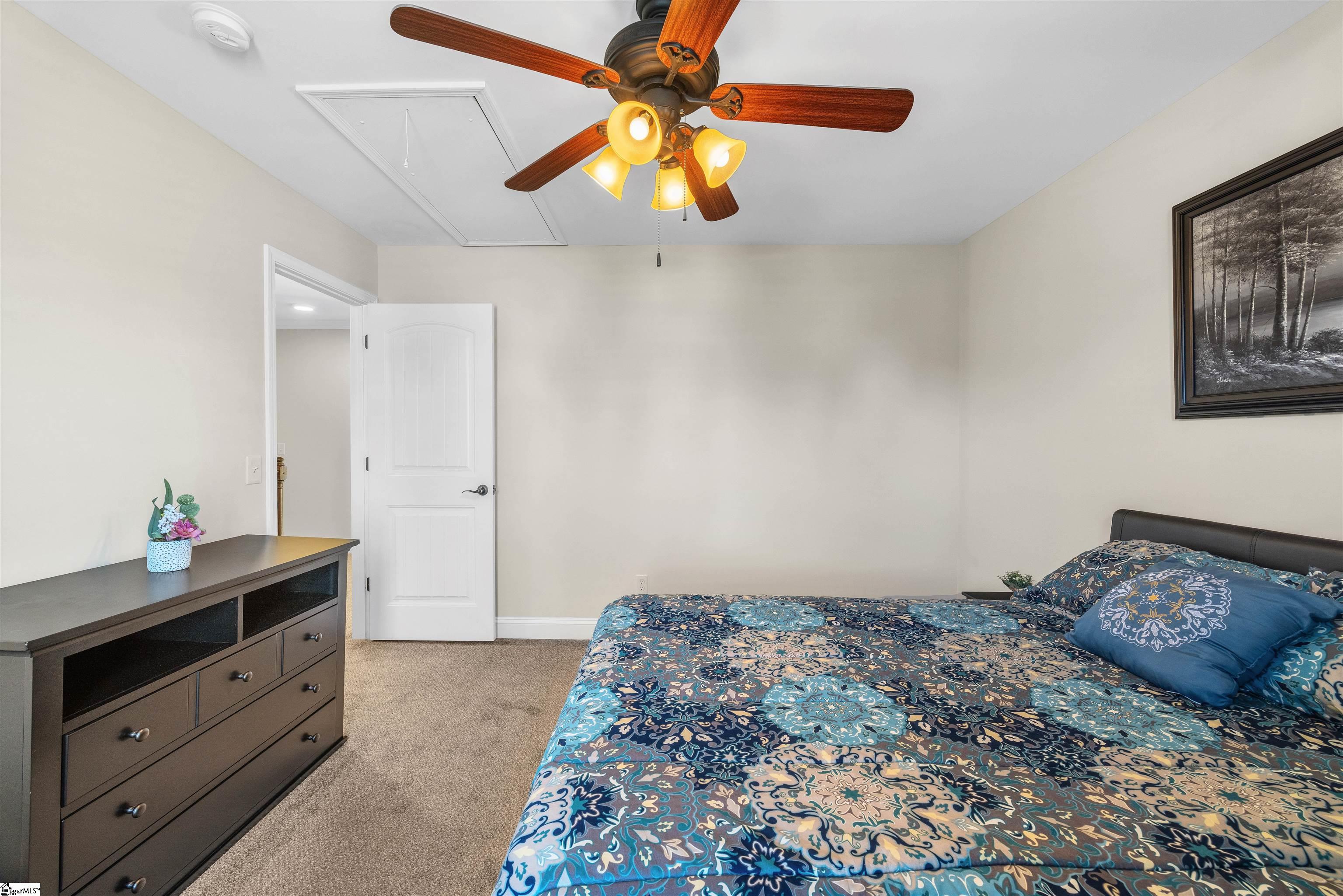 Solar panels recently installed, and the lease will be PAID IN FULL by the sellers at closing! Enjoy all the energy savings with none of the cost. This meticulously maintained 4-bedroom, 3-bath home sits on over half an acre in the highly desirable Amber Oaks Subdivision. From the moment you arrive, pride of ownership is evident throughout. The welcoming two-story foyer opens to a spacious formal dining room, ideal for entertaining. The main level features gleaming hardwood floors, elegant crown molding, and abundant natural light flowing through the two-story great room highlighted by a beautiful stone fireplace. The chef’s kitchen offers ample counter space, a center island, and a bright breakfast area, perfect for casual dining. The main-level primary suite features bay windows and a luxurious en-suite bath with a ceramic-tiled walk-in shower, soaking tub, and dual-sink vanity. A second bedroom on the main provides flexible space for guests or a home office. Upstairs, you’ll find two additional bedrooms and a spacious bonus/media room, ideal for a playroom, home theater, or additional living area. Outdoor living is exceptional with two decks perfect for relaxation and entertaining. The 12x12 covered upper deck includes pull-down shades for sun and insect protection, while the 16x16 lower deck overlooks a large, level backyard, ideal for gatherings. A custom 12x20 storage building, built to match the home, offers excellent space for a workshop, man cave, or she shed. Enjoy the neighborhood walking trails just footsteps away and the Lake Robinson Recreation Area only 4 miles from your doorstep. Additional highlights include walk-in laundry room on the main level, two-story living room with plenty of windows, multiple HVAC units for year-round comfort, architectural roof and irrigation system. Conveniently located near the Greenville/Spartanburg Airport, BMW Plant, and major highways, with easy access to the Blue Ridge Mountains and charming nearby towns. This property offers the perfect combination of space, style, and location, a true must-see!