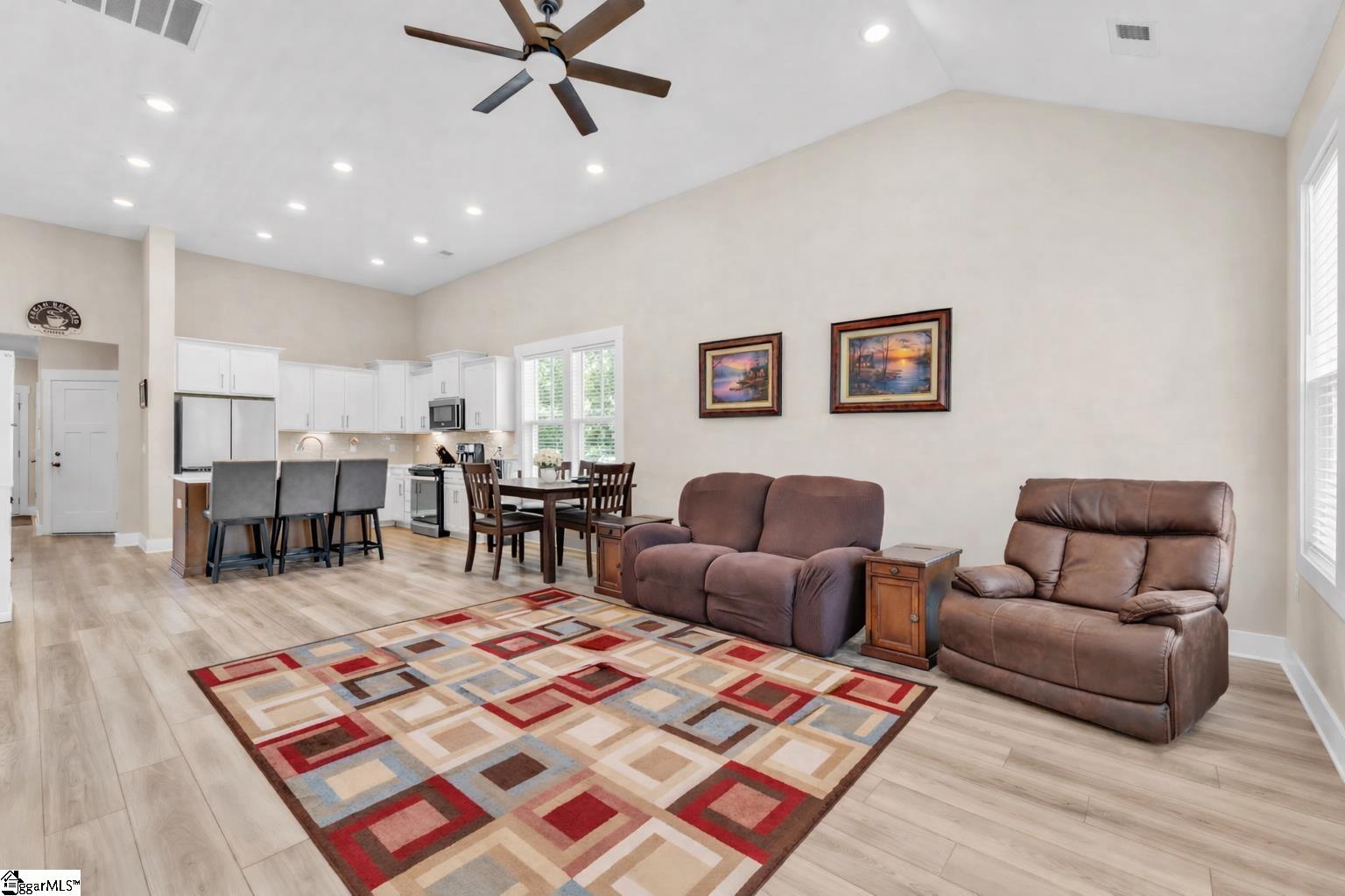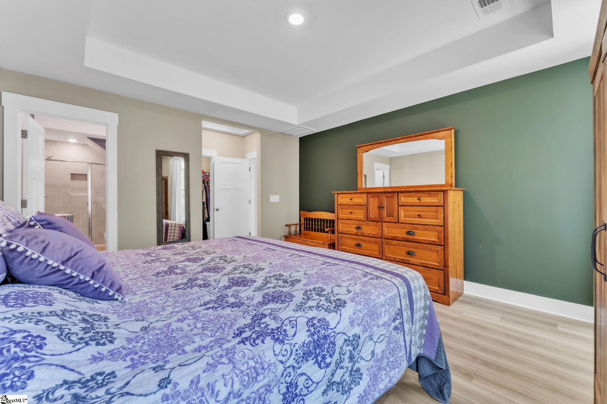 Welcome to low-maintenance living with high-end style at 10 Thornfield Drive in Greenville! This spacious end-unit townhome offers nearly 2,200 square feet of thoughtfully designed living space, featuring 3 bedrooms and 3 full bathrooms—perfect for comfortable everyday living or hosting guests. Originally built as the model home for the community, this property is loaded with upgrades and designer touches throughout—and wasn’t even lived in for the first two years, giving it a lightly lived-in feel with enhanced quality and care. Step inside to an inviting open floor plan filled with natural light, thanks to large windows and additional dining room windows that brighten the entire main living space. The split floor plan offers both functionality and privacy, while a dedicated office with upgraded paint schemes and elegant French doors creates the perfect work-from-home setup. The kitchen is a true centerpiece, featuring upgraded white cabinetry, a farmhouse sink, stylish backsplash, and enhanced lighting throughout the kitchen and dining areas—ideal for both entertaining and everyday living. The main-level primary suite offers ultimate convenience and comfort, featuring a tray ceiling detail, upgraded paint, and a beautifully finished tiled shower in the en-suite bath—creating a true private retreat. Upstairs continues the elevated feel with upgraded paint throughout, along with a stunning hardwood staircase that adds warmth and character. Additional premium features include upgraded flooring throughout the home, an epoxy-coated garage floor, and a front yard irrigation system for added convenience. Enjoy peaceful wooded views from the back, offering privacy and a relaxing backdrop, while the HOA takes care of lawn maintenance—making this home as easy to maintain as it is beautiful. Location is a standout feature—just minutes from Shoals Crossing Shopping Plaza, and easy access to all the shops and restaurants of Mauldin. You’re only 20 minutes from vibrant downtown Greenville and conveniently located near I-185 and I-385, providing quick access to the rest of the Upstate. If you’re looking for a move-in-ready home with model-home upgrades, natural light, and low-maintenance living in a prime location, this one checks all the boxes. Schedule your showing today!