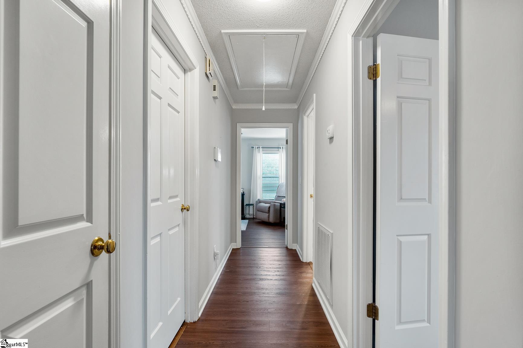 Location, location, location! This beautifully maintained one-story ranch sits on a desirable corner lot in the established Canebrake community. Pride of ownership is evident—this home has had only one owner, who has lovingly cared for it for over 44 years. Canebrake offers exceptional community amenities including a pool, tennis courts, basketball court, playground, and neighborhood pond. The home is located within the Riverside school district and offers convenient access to Buena Vista Elementary. Inside, the home features a spacious living room accented by a stone wood-burning fireplace. The bright dining room sits just off the kitchen, which offers painted wood cabinetry, abundant storage, and ample counter space. A conveniently located laundry area is also found in the kitchen. Down the hallway is a fully updated bathroom with double sinks, a dedicated vanity area, and an expansive marble walk-in shower. Two secondary bedrooms provide generous closet space. The primary suite is located at the end of the hall and features an ensuite bathroom and walk-in closet. The level backyard includes a large patio and an attached storage building for added convenience. Additional recent upgrades include updated bathrooms, luxury vinyl plank flooring throughout the home (with tile in the bathrooms), and a brand-new HVAC system with ductwork installed in 2025. This property offers exceptional convenience—just minutes from I-85, Pelham Road, BMW, Michelin, GSP Airport, and the shops and restaurants of downtown Greer and Greenville. Don’t miss the opportunity to make this move-in-ready home yours in one of the area’s most sought-after communities.