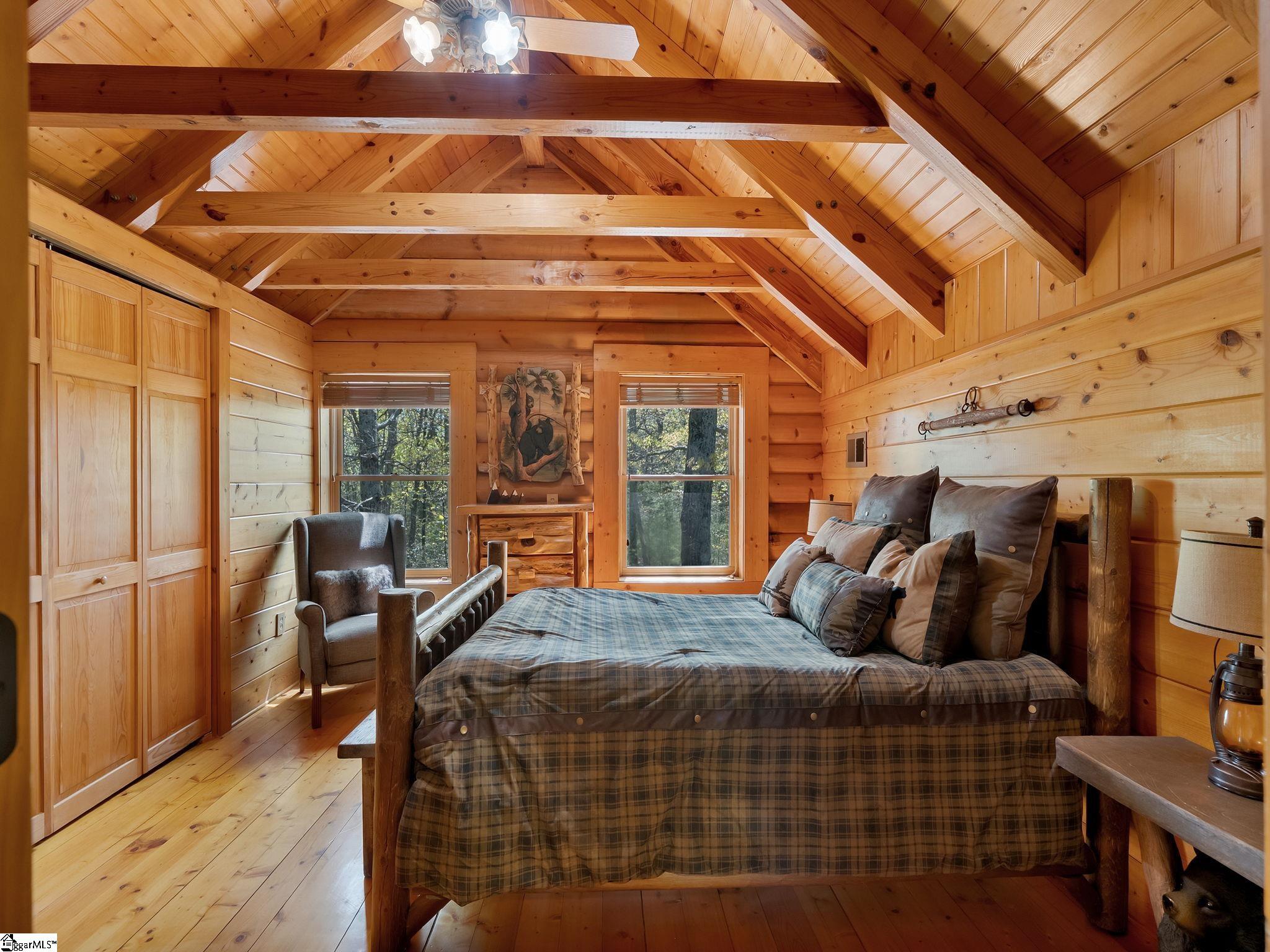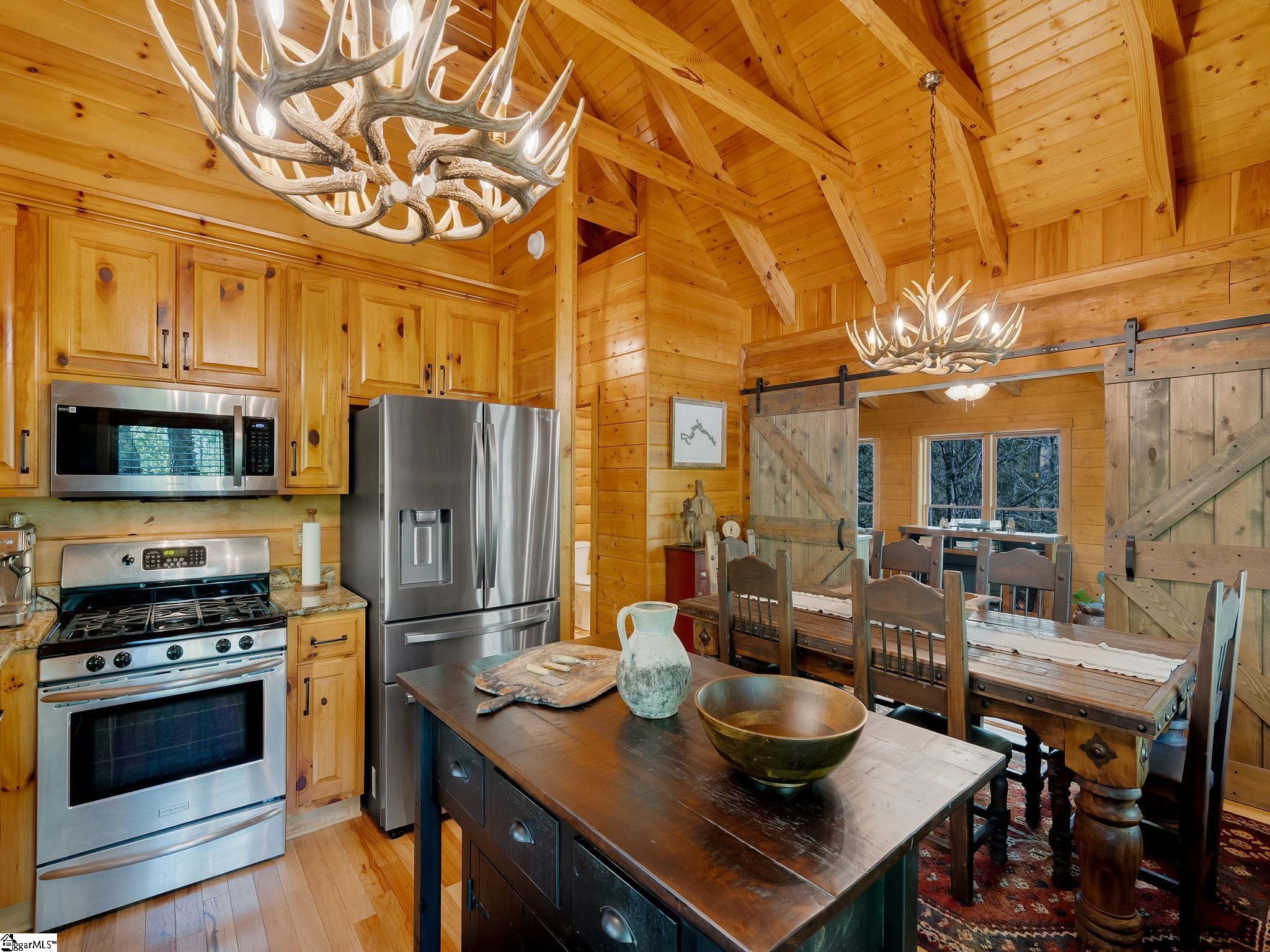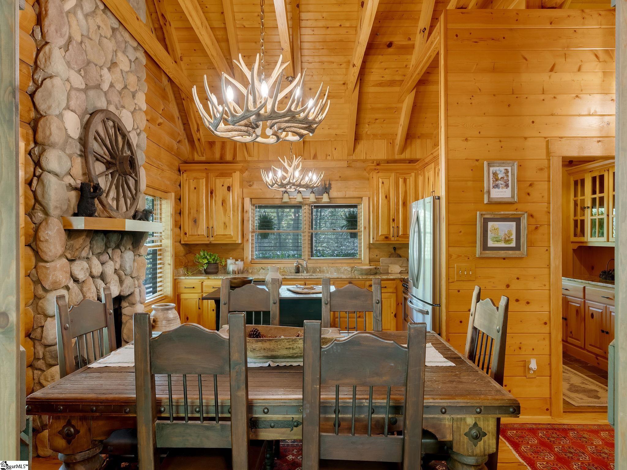 Welcome to 100 Eagle Rock Road, a charming log mountain retreat privately situated on 2.7 acres at approximately 1,650 feet of elevation. Tucked within a peaceful natural setting, this inviting residence offers the perfect blend of rustic character, modern comfort, and exceptional privacy. From the moment you arrive, you’ll appreciate the home’s curb appeal, enhanced by upgraded driveway edge stones, beautifully improved landscape lighting with smart app controls, and an easy, level driveway providing effortless access to the attached two-car garage. Sweeping south to southwest mountain views create a stunning backdrop, making this an ideal opportunity to downsize in style or enjoy as a weekend or seasonal escape. Inside, the foyer welcomes you with the warmth and beauty that only a true mountain home can offer. The kitchen serves as the heart of the residence, featuring stainless steel appliances, a Samsung refrigerator and microwave (2023), granite countertops, gas cooktop, added center island, and a soaring A-frame rustic ceiling. The breakfast nook gas fireplace adds a cozy ambiance, perfect for quiet mornings or intimate dinners. Adjacent to the kitchen, a versatile den—converted from a former sunroom—has been thoughtfully updated and offers exceptional flexibility as a bright home office, sitting room, recreation room, or separate dining area. Updated light fixtures throughout the home provide a fresh, refined touch while complementing the timeless log construction. Just down the hall, the spacious living room invites gatherings with family and friends around the impressive stone gas fireplace. Whether entertaining guests or enjoying a peaceful evening with a good book, this room offers comfort and classic mountain charm. The generous primary suite is designed as a private retreat, featuring ample walk-in closet space, a study nook, and a spacious bath with dual vanities and tub/shower combination. The remodeled half bath further enhances the home’s style and functionality and is accented by an artisan copper sink.Upstairs, two guest bedrooms and a full bath comfortably accommodate visitors. Both upper-level bedroom closets include convenient attic access for additional storage. Outdoor living is equally inviting, offering a seamless extension of the home’s warm interior spaces and the perfect setting to enjoy the surrounding mountain beauty year-round. The screened porch spans the entire rear of the home, offering a tranquil place to relax while taking in breathtaking sunset views. A newly added deck and stairs provide easy access to the backyard, where there is ample room for pets, recreation, or grandchildren to play. Soak in the inviting hot tub and enjoy a peaceful place to relax while taking in the serene mountain surroundings. The view corridor to the left of the home has ARB approval for tree removal, presenting an opportunity to further open and enhance the mountain vistas. Additional recent improvements include new HVAC systems (2021 and 2023) and a new water heater. Abundant storage space is found in the lower-level garage, along with an attached 360+ sq. ft. laundry and storage room. This home includes the adjacent lot (tax#: 0638140103500, providing added privacy and flexibility, and is subject to an additional POA assessment. A Club membership at The Cliffs is available with this property giving you access to all seven communities.