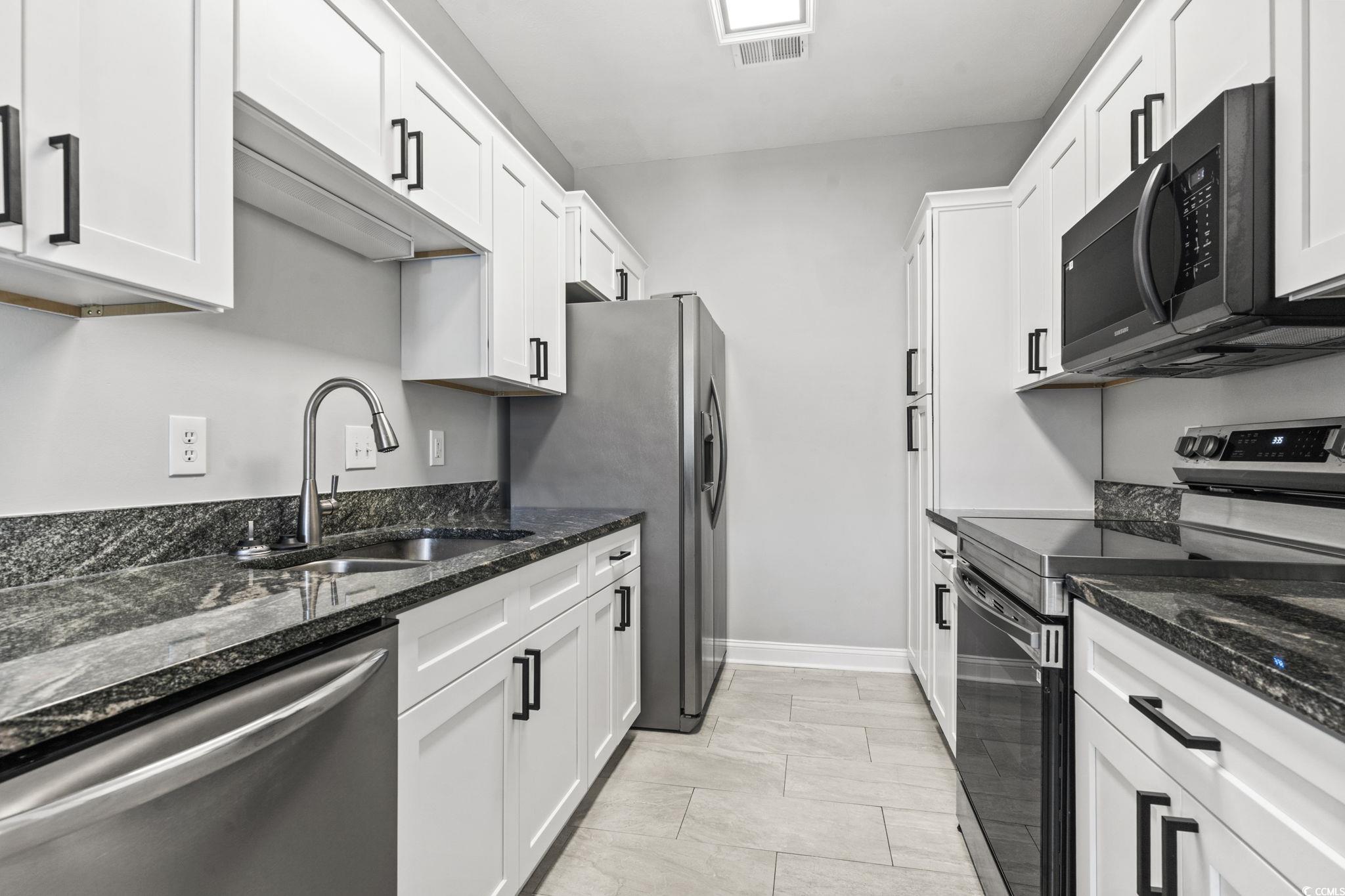Your new home or investment property awaits! Welcome to this beautifully upgraded 3-bedroom, 2-bathroom condo in Fountain Point! This turn key unit features stunning pond views and upgrades around every corner, and offers abundant natural light through additional windows and vaulted ceilings. The entire home has been freshly painted and showcases all-new finishes and fixtures. The kitchen boasts brand new, soft-closing white shaker cabinets, elegant granite counters, new appliances, and all black hardware, enhancing its modern appeal. The screened in porch off the living room allows you to enjoy quiet mornings and calm evenings with great pond views year round! The primary bedroom has huge windows with similar views, which also provide great natrual lighting. A brand new washer and dryer provide added convenience as well! Rejuvenated with a new hot water heater, HVAC system, smoke detectors, mirrors, toilets, vanity lighting, and contemporary light fixtures and ceiling fans throughout - designed so you don't have to lift a finger. All door hardware and hinges are upgraded black for a sleek look as well. There is also a storage closet outside the unit for additional storage. This community allows long term rentals, so whether you are looking for a primary, secondary, or your next investment, you truly can't go wrong. Only 15 minutes from the beach, airport, and close to shops and dining, this community truly is convenient to wherever you may need to be! Schedule your showing today!