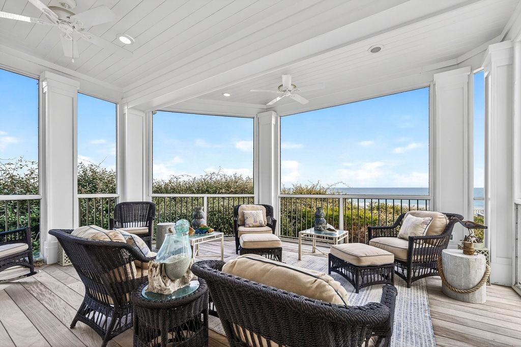 Oceanfront on the coveted north end of DeBordieu Colony, this exceptional five-bedroom residence offers a rare blend of serene coastal luxury and breathtaking Atlantic views. Every living space, porch, and deck—across all levels—captures uninterrupted ocean vistas, including the rooftop deck, which is conveniently accessed by an elevator serving the home from the garage to the top floor. Exquisite craftsmanship is immediately evident upon entering the grand foyer, highlighted by soaring 38-foot ceilings, rich Brazilian cherry floors with an inlaid compass rose, and a gracefully curved staircase. The living room’s dramatic wall of windows frames the ocean beyond and opens seamlessly to expansive porches, decks, and a private boardwalk leading directly to one of the widest and most pristine stretches of DeBordieu Beach. The owner’s suite, thoughtfully located on the main level, is a private retreat featuring a sitting room with coffered ceilings, a spa-inspired bath with whirlpool tub, large tiled shower, heated floors, dual vanities, and generous walk-in closets. Upstairs, guest suites enjoy access to decks and verandas and are complemented by two distinct sitting areas—one offering spectacular ocean views, the other a more intimate space ideal for relaxing, watching television, or games. An additional level above features an exercise room and access to the rooftop deck, where panoramic views stretch from sunrise over the Atlantic to sunset across DeBordieu Creek and the marshes of North Inlet. With elevator access to every floor, these moments can be enjoyed effortlessly—coffee in hand at dawn or cocktails at dusk. The updated center-island kitchen is designed for both beauty and functionality, featuring stainless steel appliances, stone countertops, custom cabinetry, and an open flow to the dining room—perfect for entertaining family and friends with ease. Additional highlights include an elevator, Hardiplank exterior, standing-seam metal roof, wet bar, powder room, three oceanfront bedroom suites, an oceanfront hot tub, and a spacious laundry room. This is a rare opportunity to own an oceanfront home on an accreting beach with unobstructed views within DeBordieu Colony, a private residential community located approximately one hour north of Charleston, South Carolina, and just five miles south of Pawleys Island. Residents enjoy access to private golf, tennis, pickleball, a fitness center, saltwater creek access to the ocean, a manned security gate, and a setting surrounded by hundreds of acres of preserved wildlife and natural beauty. The historic port city of Georgetown—offering excellent medical facilities, a private airport, marinas, and acclaimed dining—is just five miles away. Those who know DeBordieu Colony understand there will never be another place quite like it. We invite you to experience it for yourself.