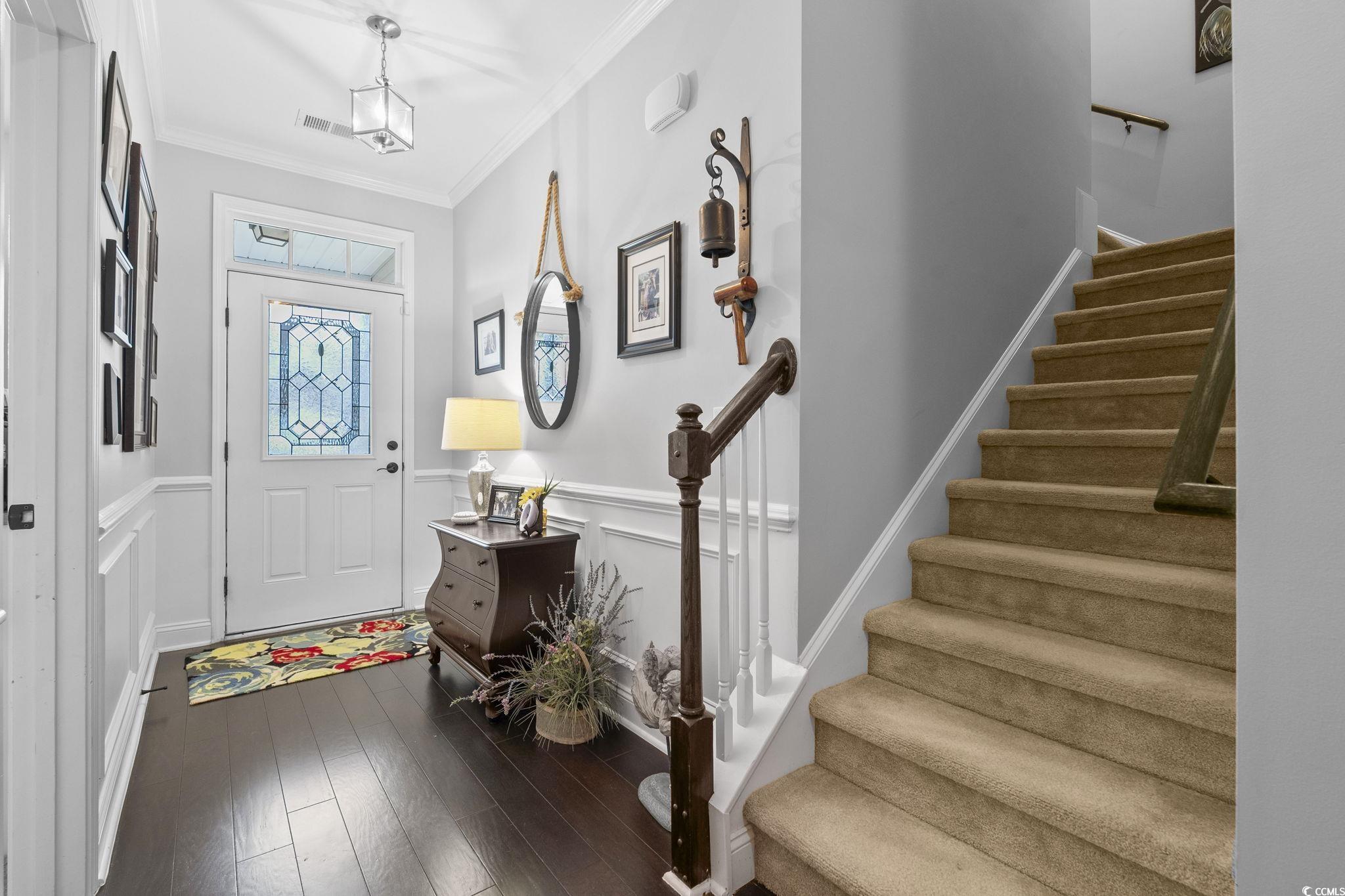 Well-maintained 3 bedroom, 3 bath end unit townhouse with a 2-car garage located in the sought-after natural gas community of Parmelee in Murrells Inlet. This one-owner home sits on a premium lot with pond views and includes a brand-new HVAC system. Interior features include hardwood floors in the main living areas, tile in baths and laundry, and carpet in bedrooms. The open floor plan offers a formal dining room with tray ceiling, a spacious living room with vaulted ceiling and abundant natural light, and a kitchen with granite countertops, center island, stainless steel appliances, espresso cabinetry, pantry, and breakfast bar. The primary suite on the first floor has a vaulted ceiling, walk-in closet with organizers, and access to the screened porch. Primary bath includes a walk-in shower, navy cabinetry, and linen closet. A second bedroom and full bath are also downstairs, while the third bedroom with full bath is upstairs and can serve as a bonus room. Additional highlights include a laundry room with garage access, custom storage, and a screened porch with pond views and gas hookup. Community amenities include pool and clubhouse with fitness equipment. Conveniently located near beaches, shopping, dining, golf, medical facilities, the Marsh Walk, Brookgreen Gardens, and Huntington Beach State Park. Some images are virtually staged.
