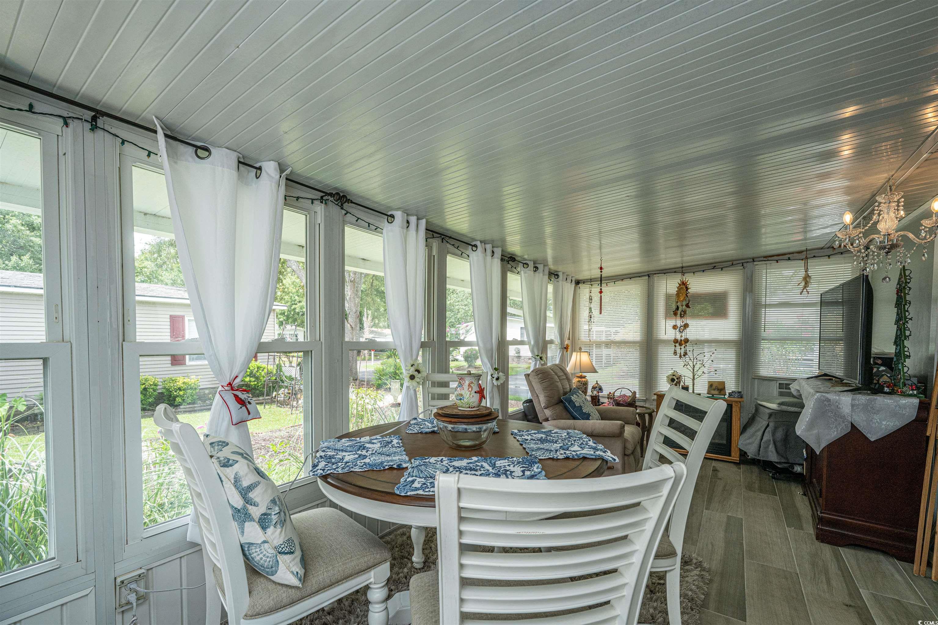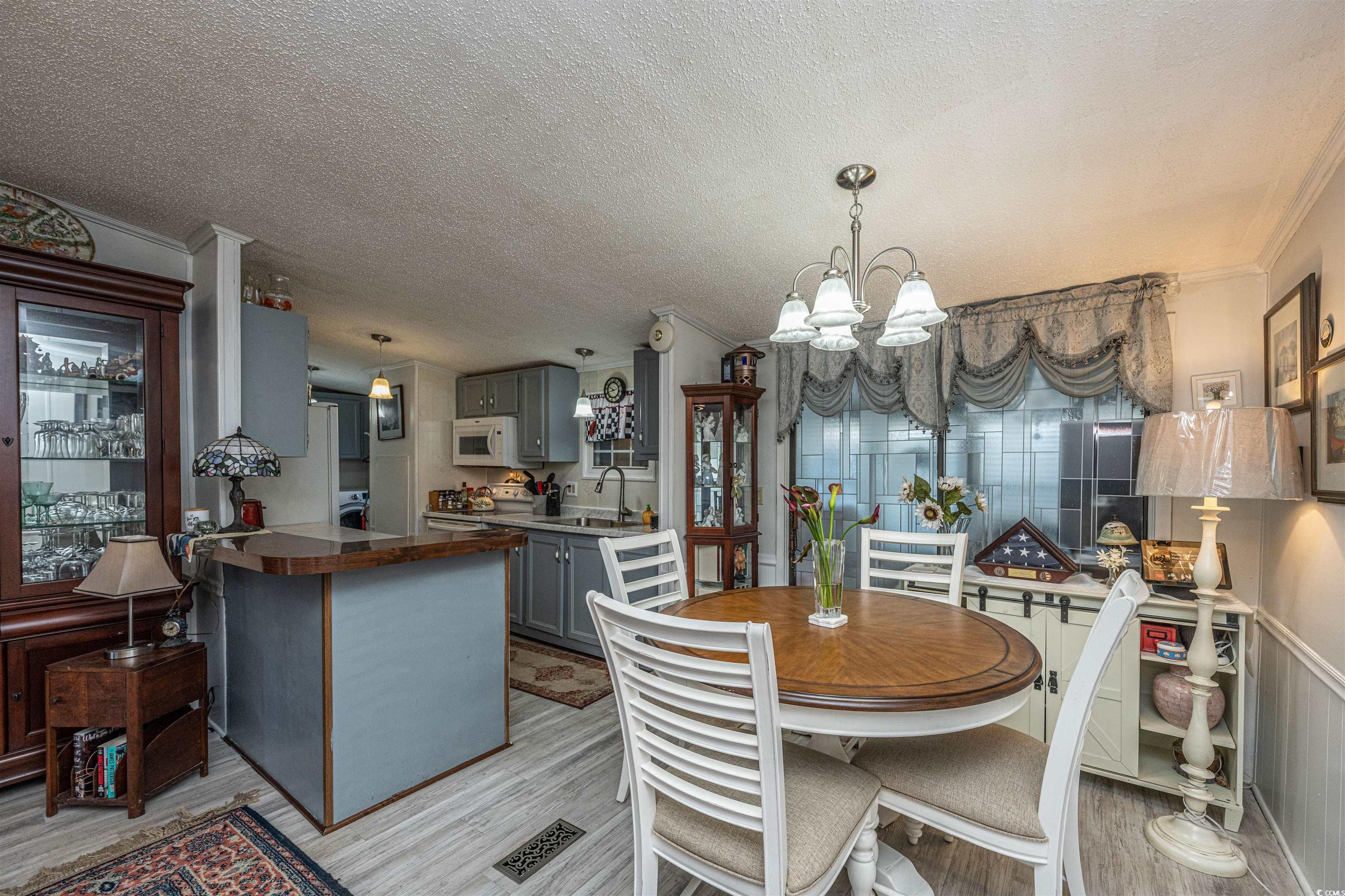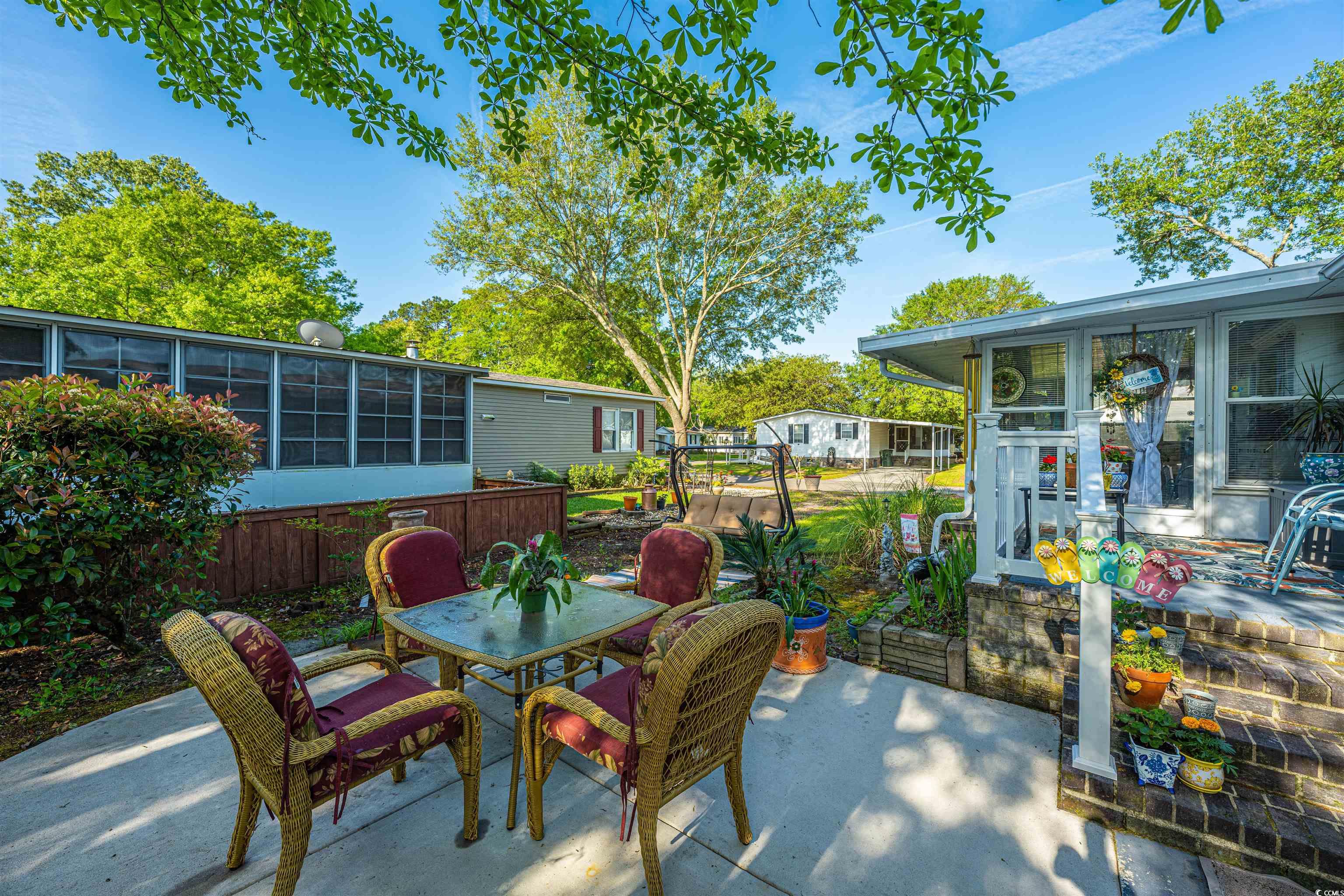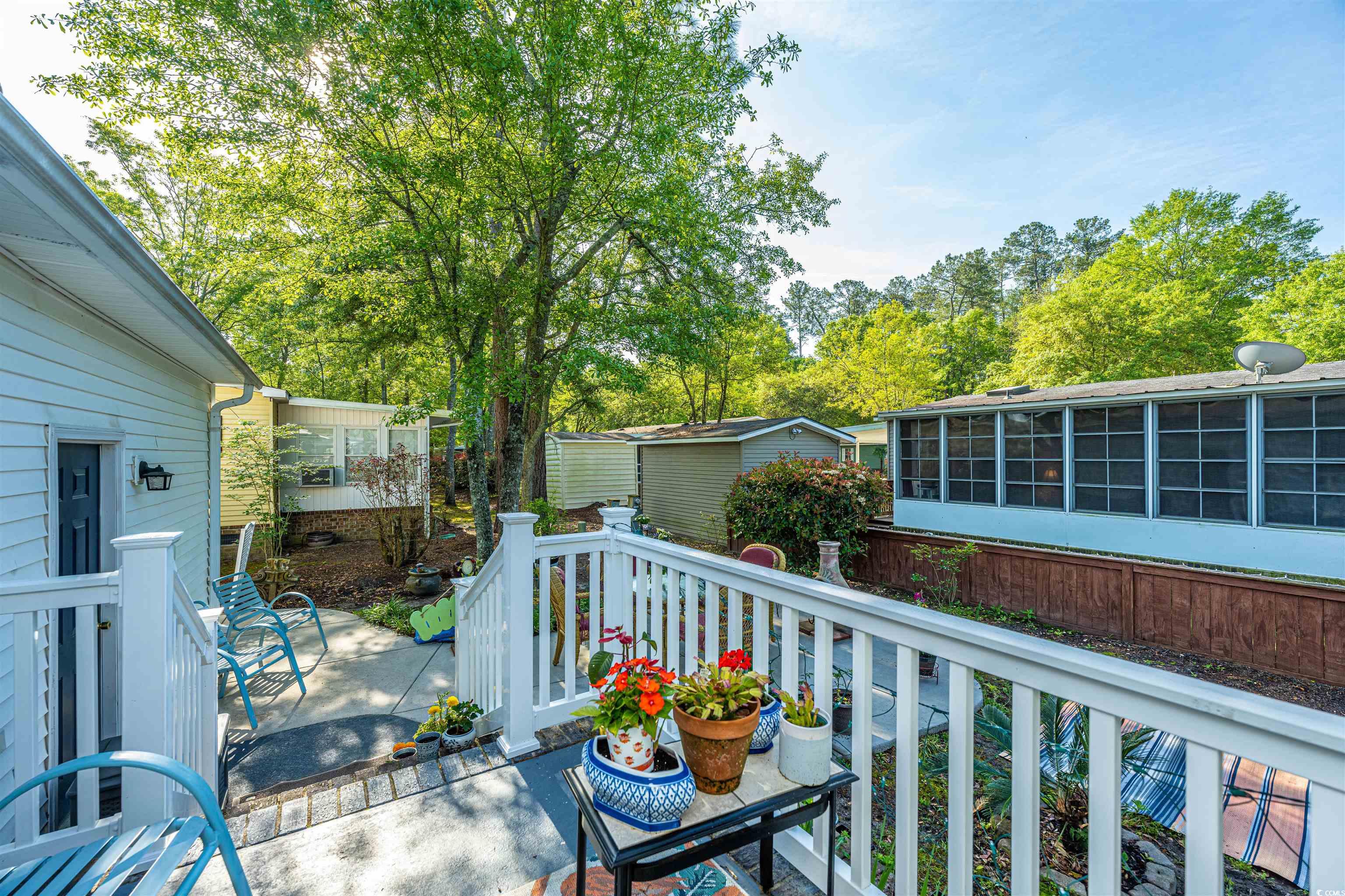 Welcome to Southern Palms, a gated 55+ community in Ladson offering a peaceful, active lifestyle. Here, you own your beautifully remodeled manufactured home while leasing the land. This home was completely renovated in 2017 with additional upgrades in 2024 including HVAC, flooring, countertops, appliances plumbing, electrical, and garage door. Step inside to an inviting open floor plan where a spacious living room flows seamlessly into the updated kitchen and dining area. The private primary suite is thoughtfully separated from the two guest bedrooms and full bath, offering comfort and privacy. Enjoy your mornings on the covered front porch or relax year-round in the all-seasons sunroom. The fenced backyard features a patio designed for both quiet moments and entertaining. Residents of Southern Palms enjoy a variety of amenities: a sparkling pool, putting green, fitness room, billiards, and scenic walking paths around the community pond.