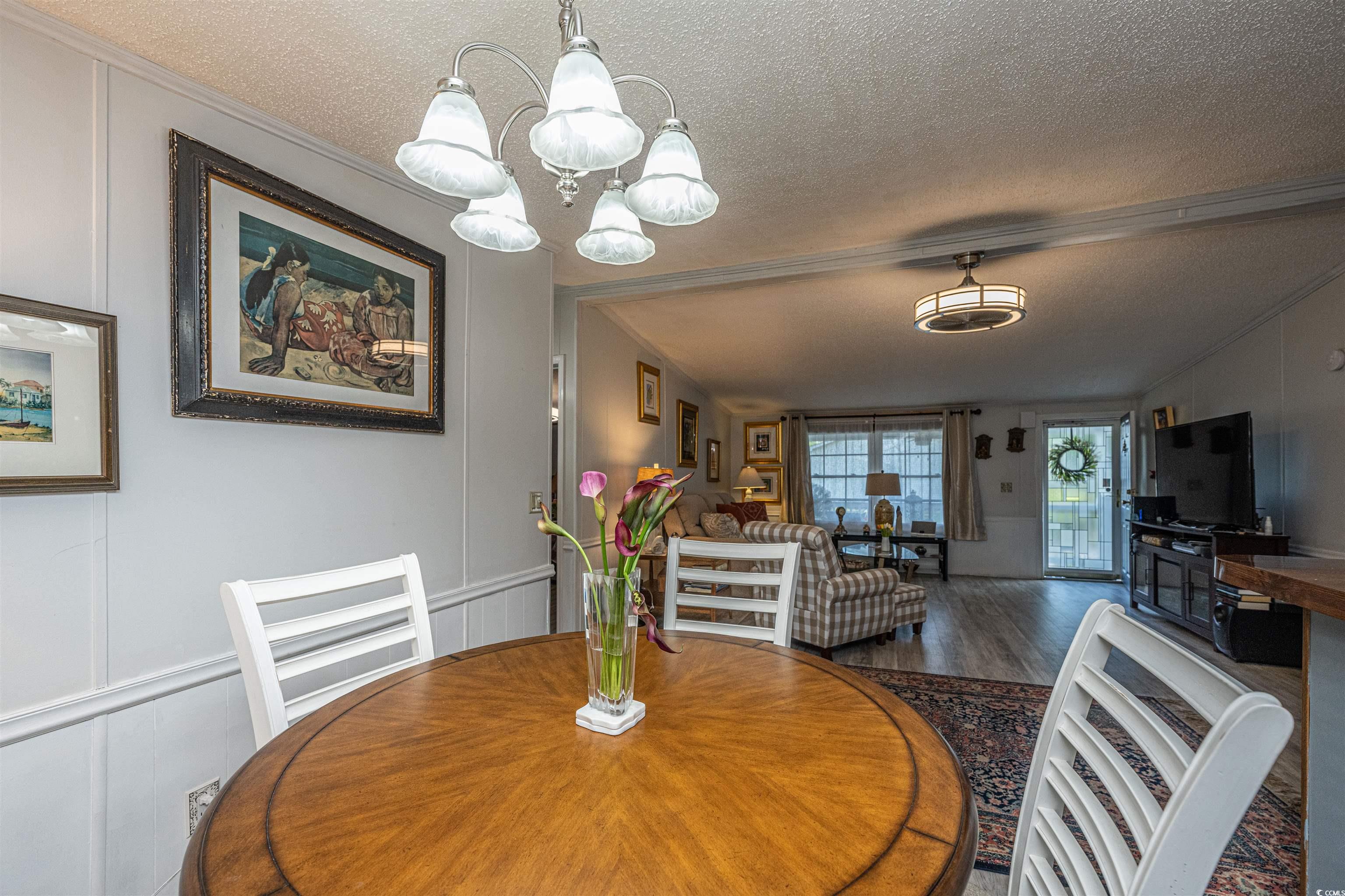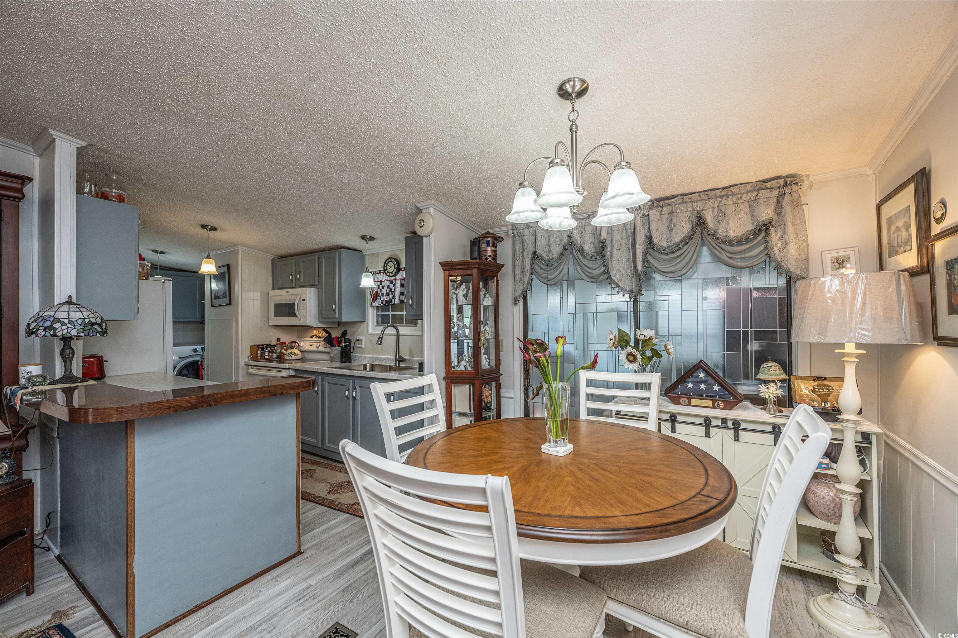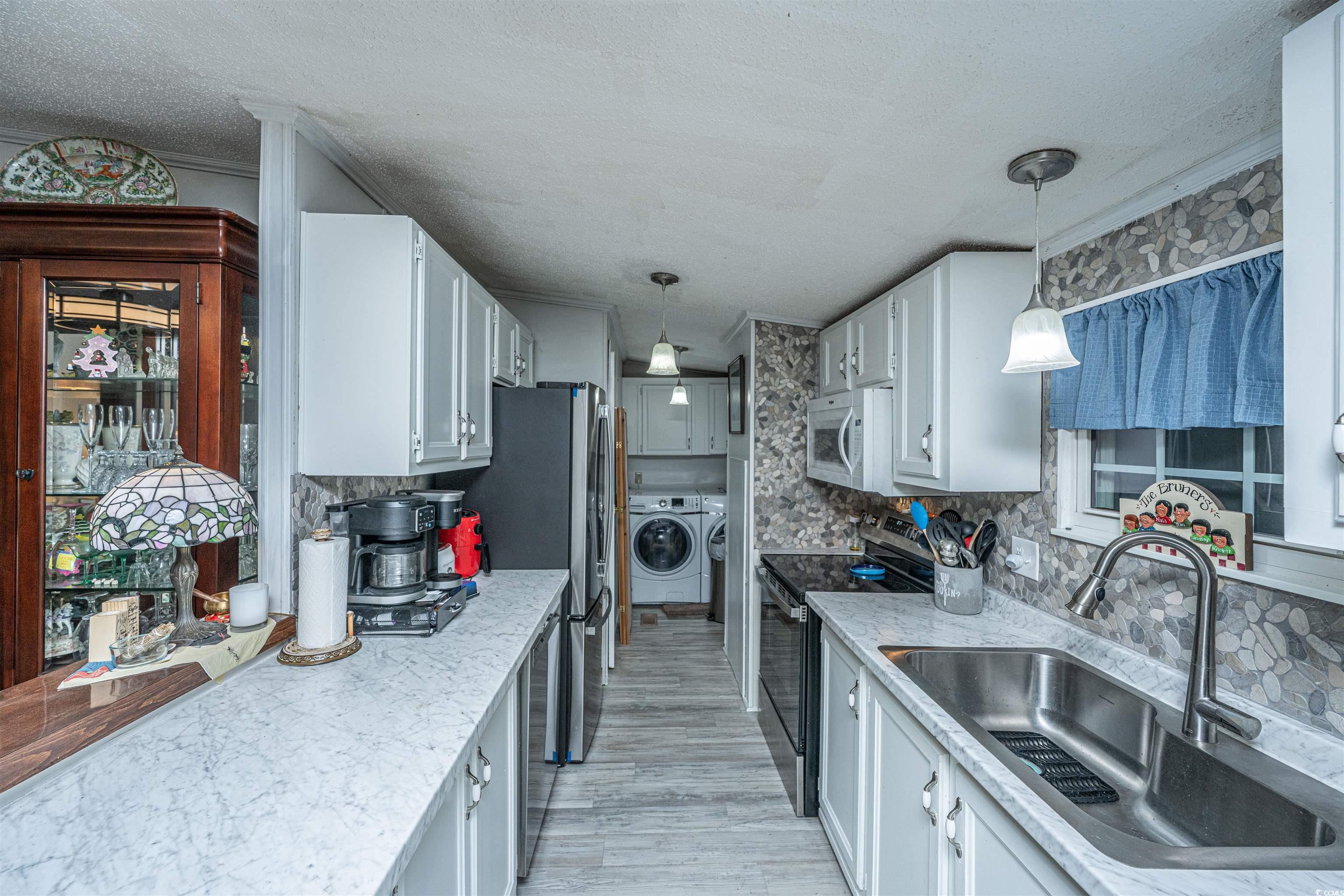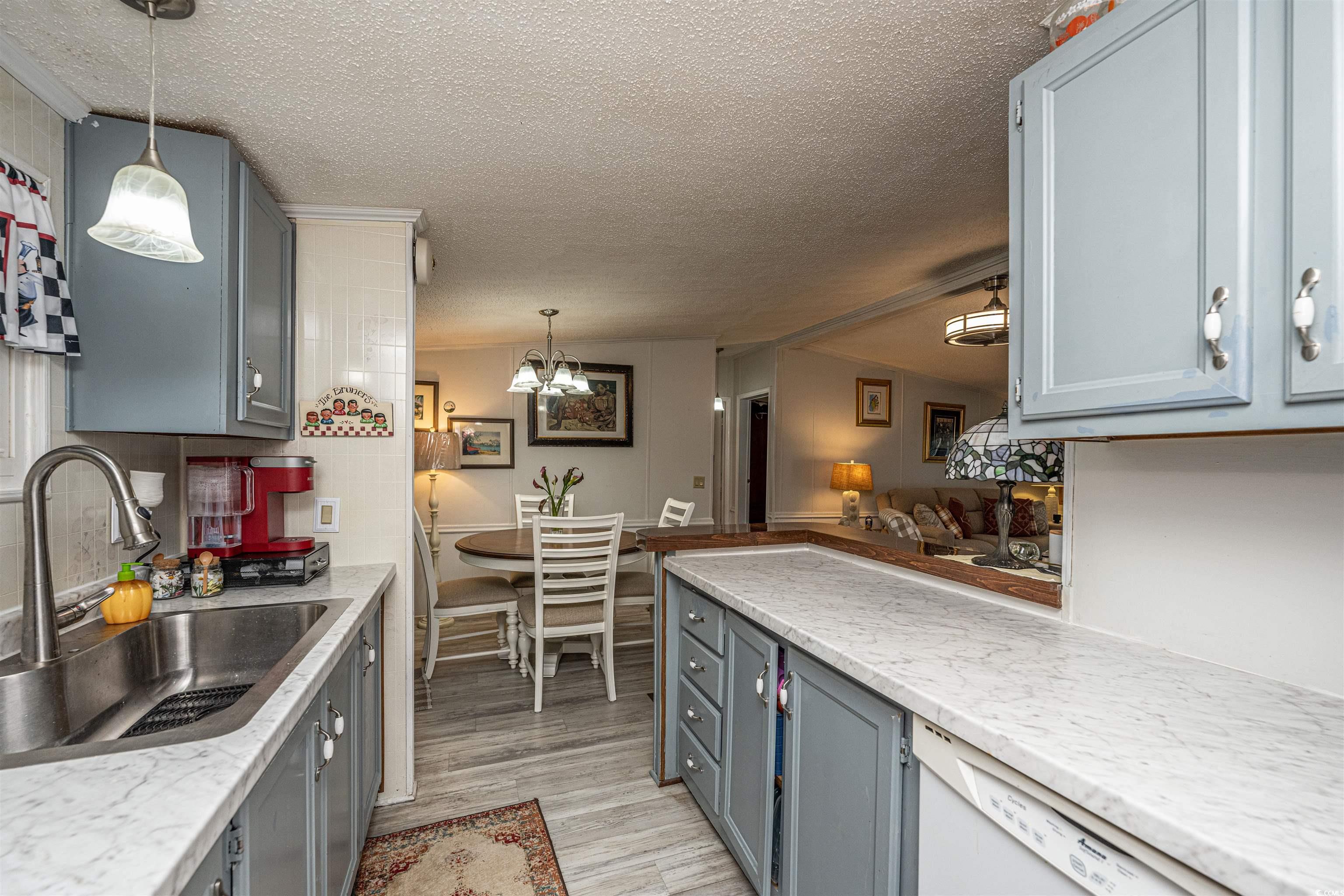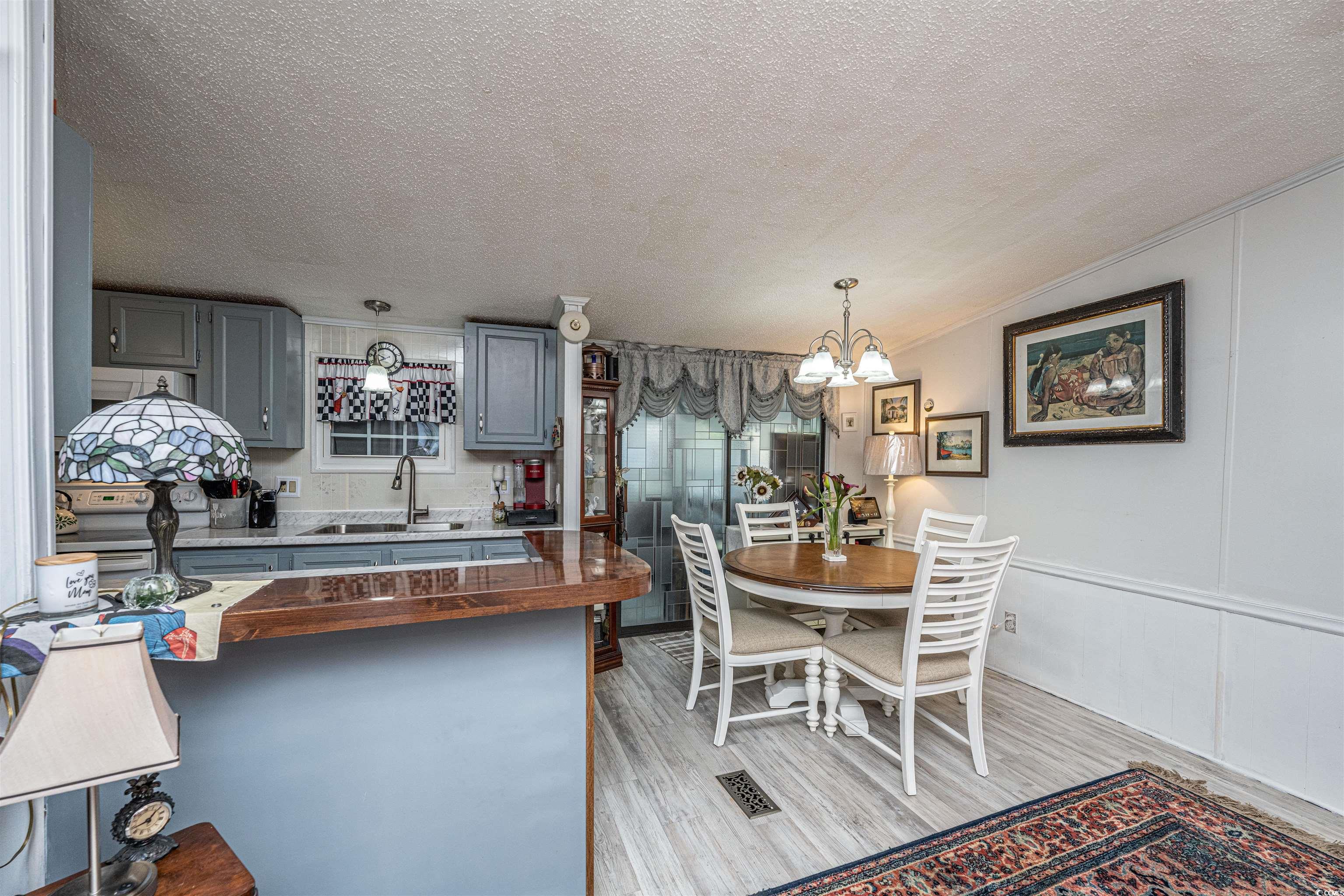Welcome to Southern Palms, a gated 55+ community in Ladson offering a peaceful, active lifestyle. Here, you own your beautifully remodeled manufactured home while leasing the land. This home was completely renovated in 2017 with additional upgrades in 2024 including HVAC, flooring, countertops, appliances plumbing, electrical, and garage door. Step inside to an inviting open floor plan where a spacious living room flows seamlessly into the updated kitchen and dining area. The private primary suite is thoughtfully separated from the two guest bedrooms and full bath, offering comfort and privacy. Enjoy your mornings on the covered front porch or relax year-round in the all-seasons sunroom. The fenced backyard features a patio designed for both quiet moments and entertaining. Residents of Southern Palms enjoy a variety of amenities: a sparkling pool, putting green, fitness room, billiards, and scenic walking paths around the community pond.