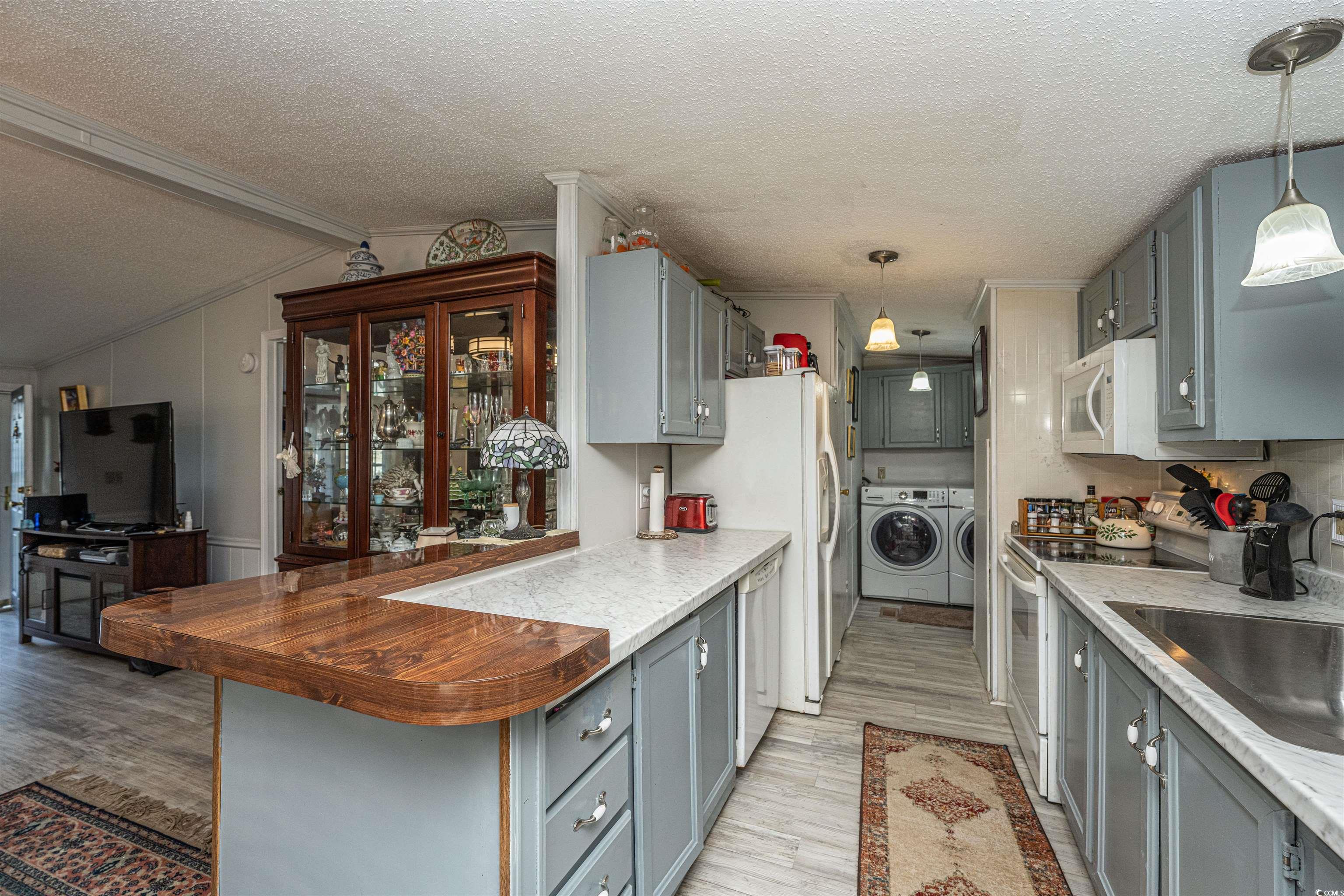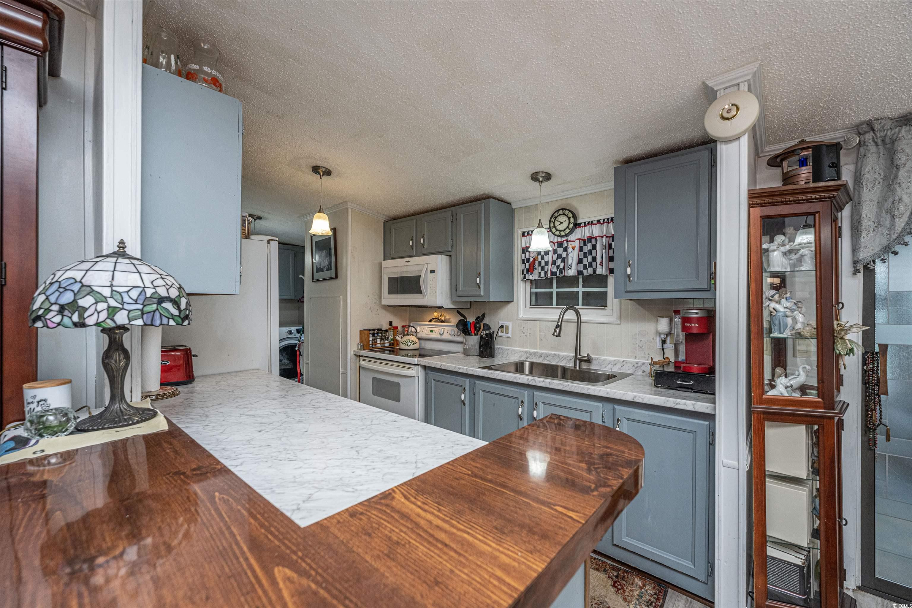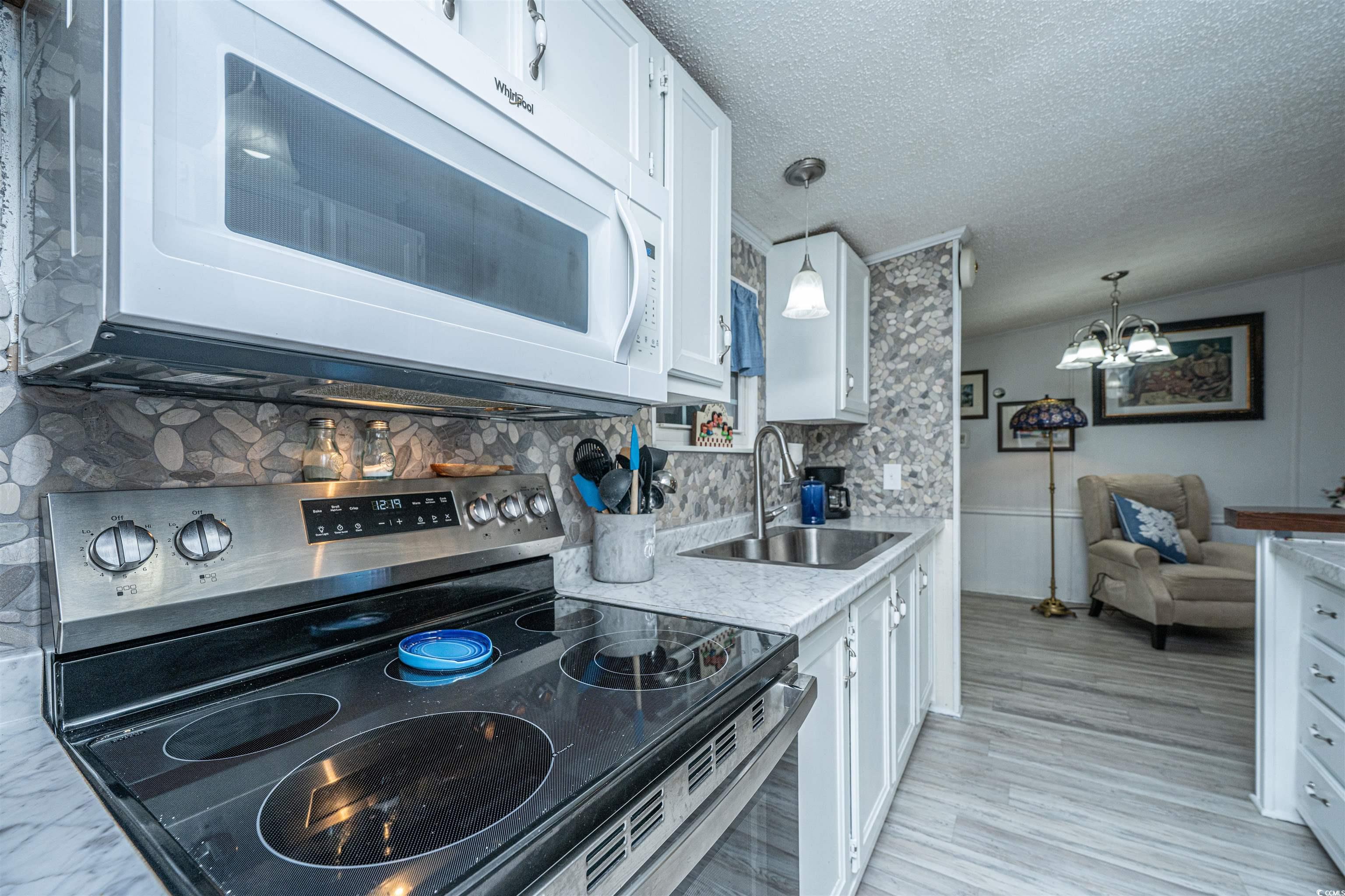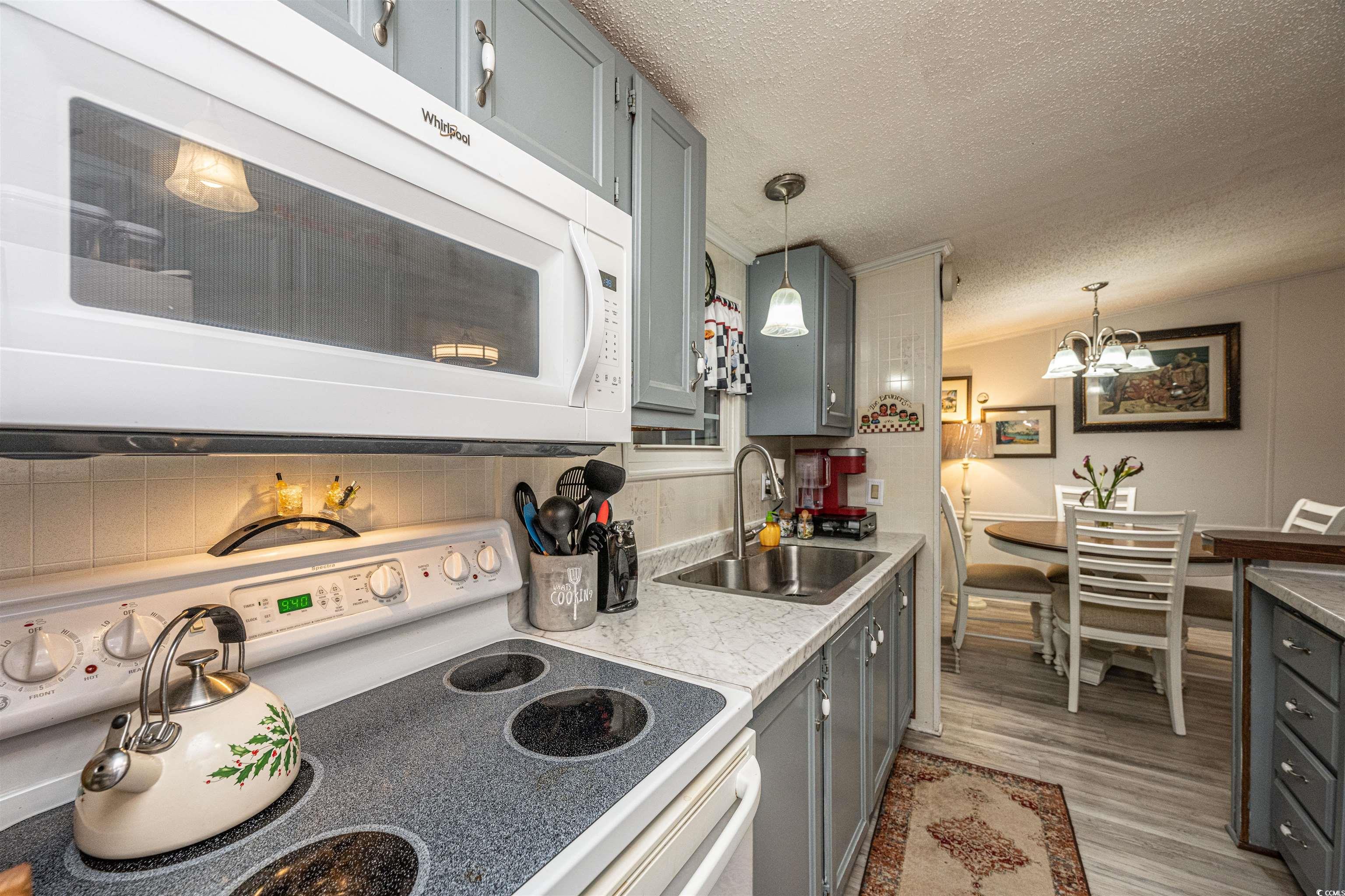 Welcome to Southern Palms, a gated 55+ community in Ladson offering a peaceful, active lifestyle. Here, you own your beautifully remodeled manufactured home while leasing the land. This home was completely renovated in 2017 with additional upgrades in 2024 including HVAC, flooring, countertops, appliances plumbing, electrical, and garage door. Step inside to an inviting open floor plan where a spacious living room flows seamlessly into the updated kitchen and dining area. The private primary suite is thoughtfully separated from the two guest bedrooms and full bath, offering comfort and privacy. Enjoy your mornings on the covered front porch or relax year-round in the all-seasons sunroom. The fenced backyard features a patio designed for both quiet moments and entertaining. Residents of Southern Palms enjoy a variety of amenities: a sparkling pool, putting green, fitness room, billiards, and scenic walking paths around the community pond.