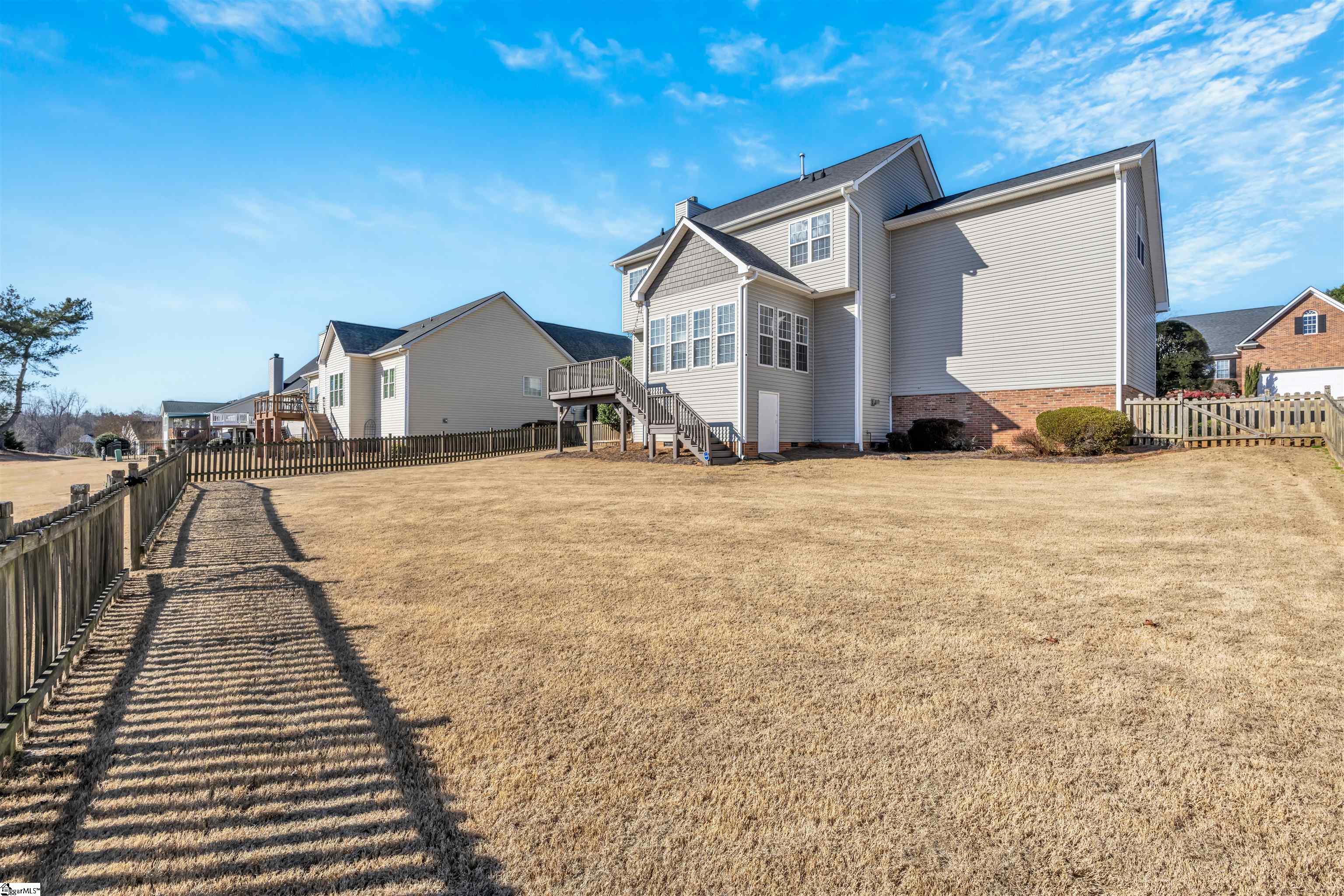 Enjoy beautiful golf course views from this meticulously maintained 3-bedroom, 2.5-bath home with a flex room in Pebble Creek, designed for flexible living. Homes with this setting are limited, making this a standout opportunity for buyers seeking both lifestyle and value. Start your mornings or unwind in the evenings from the sunroom or back deck, both overlooking the fairway. The large, level fenced backyard offers plenty of space for entertaining, pets, or simply enjoying the scenery. Inside, the home features a thoughtfully designed layout with granite countertops, stainless steel appliances, and a gas range in the kitchen—perfect for everyday living and hosting. The home reflects pride of ownership throughout with comfortable, well-maintained living spaces. The spacious primary suite includes a walk-in closet with custom shelving, while two additional bedrooms and the versatile flex room provide excellent options for a home office, playroom, or media space. Located in a quiet Pebble Creek neighborhood and zoned for highly rated schools, this home is just minutes from Paris Mountain State Park and approximately 15 minutes to Downtown Greenville, Greer, and Travelers Rest—offering convenient access to dining, shopping, and outdoor recreation. A rare opportunity to enjoy golf course living at an exceptional value.