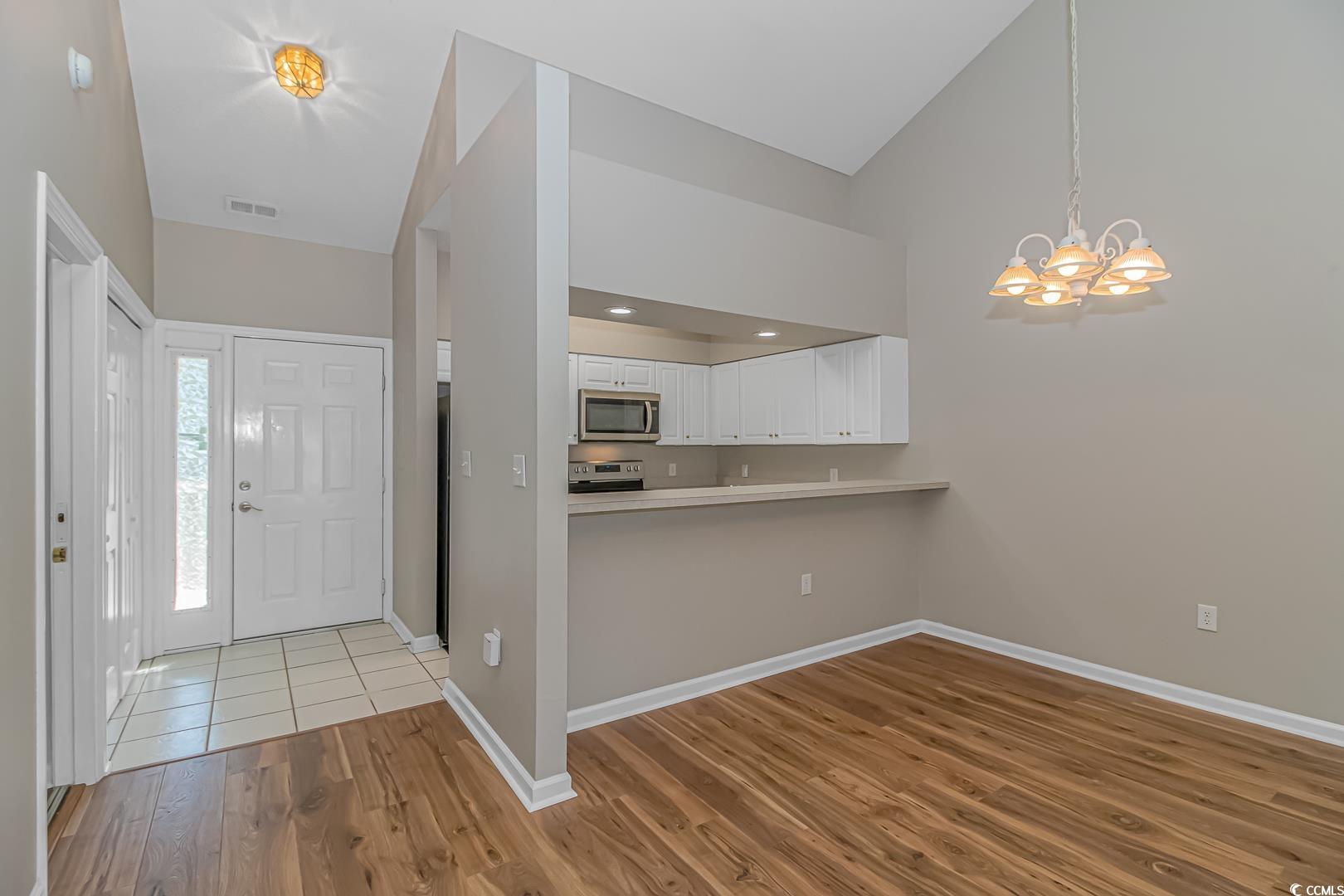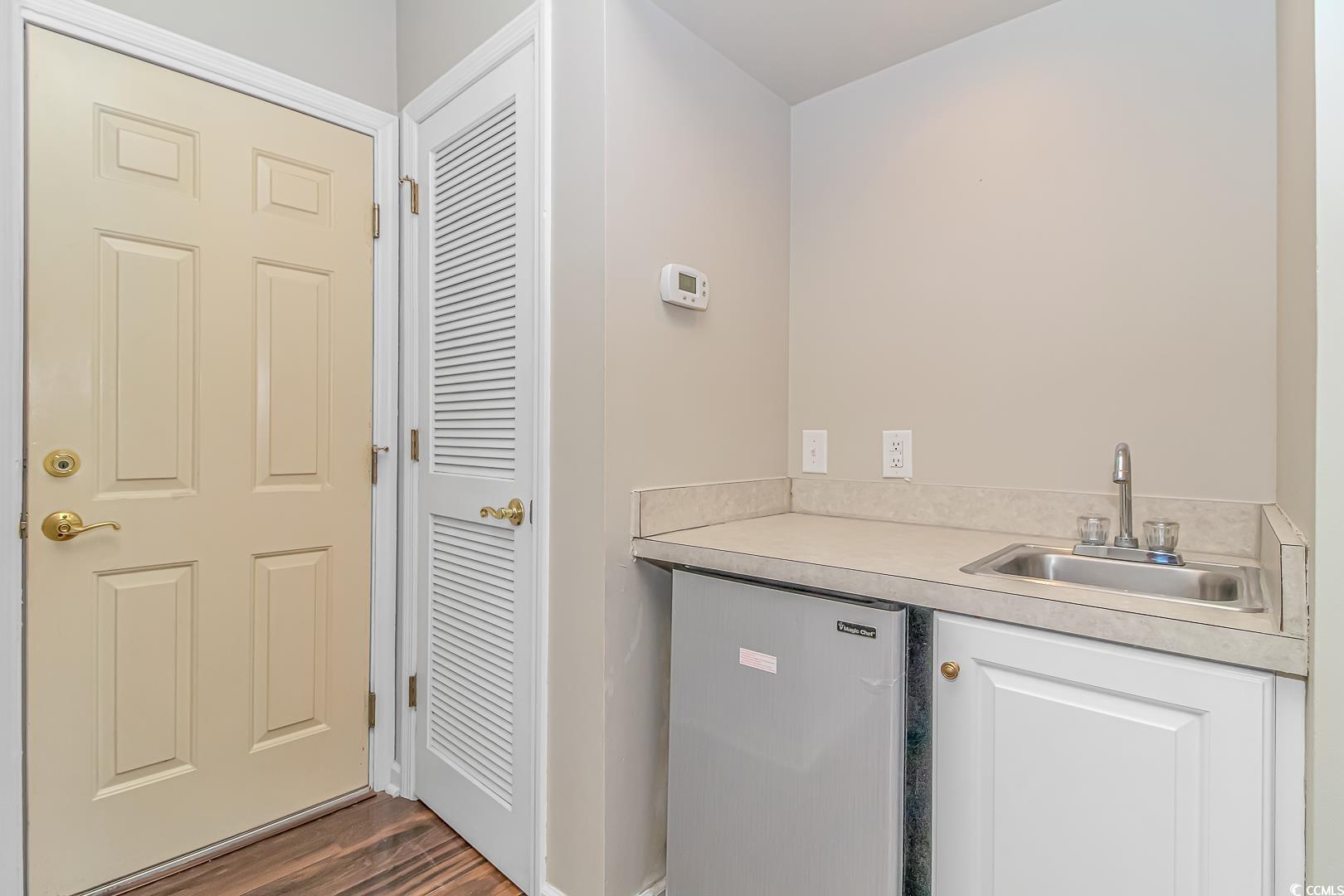 Welcome to your coastal escape in Little River!! Whether you are looking for a primary residence, a second home, or an investment property, this home is for you at the highly sought after community of The Village at the Glens. An end unit situated on the second floor, it has great views of old live oak trees adorned with Spanish Moss and beautiful azaleas in the Spring! It features an open floor plan with vaulted ceiling in the main living area. This condo consists of a main living unit with one bedroom and one bath, and a lockout unit with living space, full bath, and kitchenette, making it perfect for guests or additional income. It comes with newly installed laminate wood flooring throughout the main unit. There is a spacious storage/pantry closet off the main living area. A new HVAC with a Reme Halo Environmental Air Treatment System was installed in the main unit last year. The kitchen features a new stainless steel refrigerator, stove, and microwave. Both bathrooms have newly replaced toilets. The unit comes with a full size washer and dryer. From the kitchen, you have a clear view of the screened in back porch and beyond through double sliding doors. A nice place to sit and relax after a long day! You will find even more storage with a storage room located on the screened porch. The Village at the Glens is approximately 7 miles from the Cherry Grove Beach and 9 miles from Sunset Beach, North Carolina. And for golf enthusiasts, the famous Glen Dornoch Waterway Golf Links is just down the road! And there are more great golf courses nearby! You are also close to shopping and dining in the North Myrtle Beach and in the Myrtle Beach areas. And the beautiful ICW in Little River has a lot to offer! Unit includes a 2-10 Home Buyers Warranty. Call to schedule your private showing today! UPDATE: New roof installed June 2024!