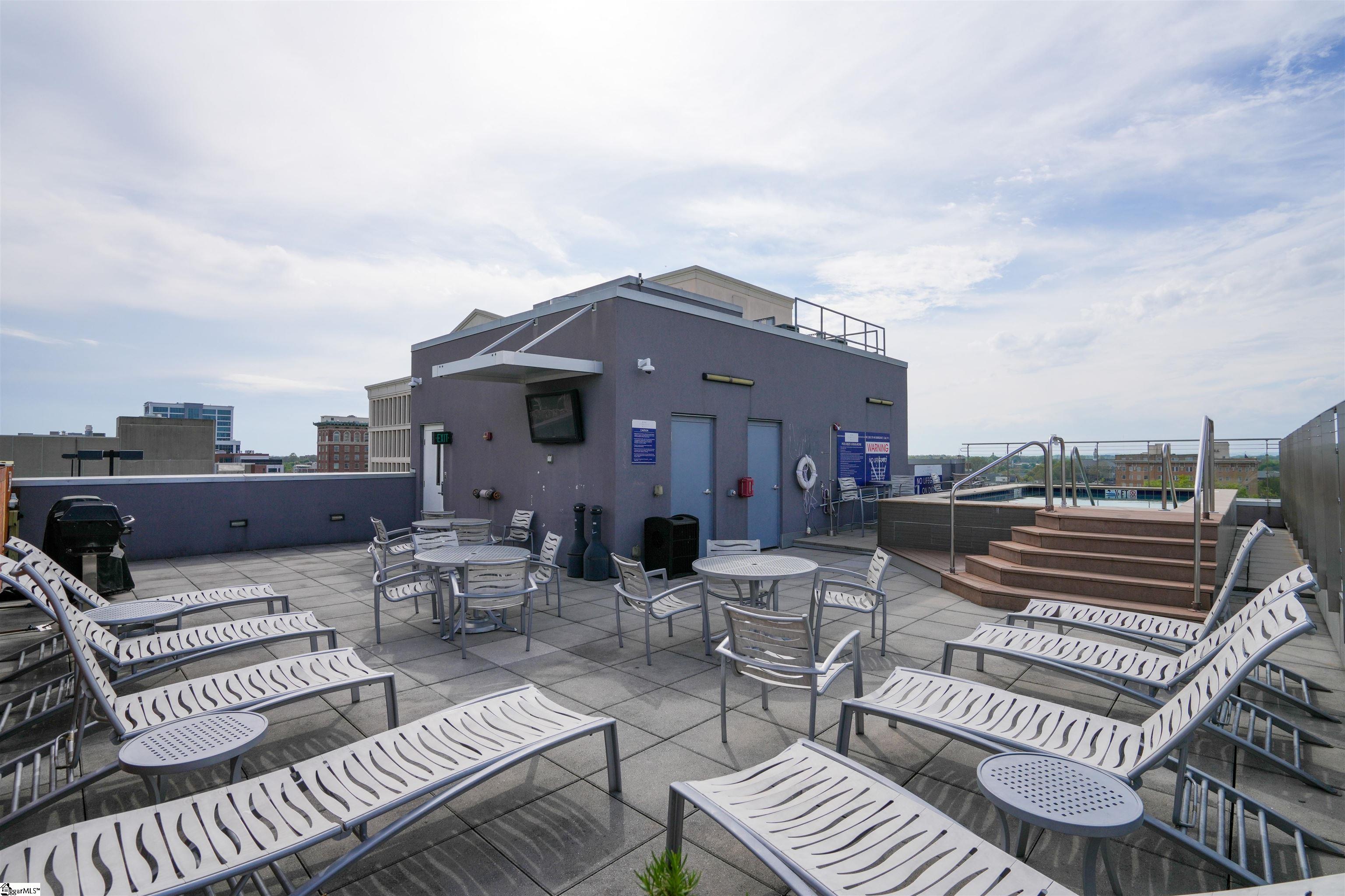 Step into 100 East's Apt. 22, a boutique two-bedroom residence with a unique urban vibe. As you step inside this exceptionally designed space, you'll immediately notice the high level of detail and craftsmanship. The interior features custom lighting fixtures and designer wallpaper, complemented by chic paint colors throughout, creating an atmosphere of sophisticated modern living. The kitchen boasts freshly painted cabinets, delivering a stylish contrast to the main living area. Beyond the aesthetics, the unit features a practical upgrade: an upgraded tankless water heater for efficiency and comfort. The two bedrooms and two full bathrooms present flexibility and privacy, making it perfect for a home office or guests. Each room benefits from the building's generous layout and quality finishes. Your life in the One Hundred East community extends well beyond your front door. Take the elevator up to the private community rooftop and lounge area on the eighth floor. This spectacular space features panoramic skyline views, a pool, comfortable seating, grills, and a TV—perfect for entertaining or unwinding after a long day. The community also provides an on-site parking garage, common area maintenance, and a discount on membership to Anytime Fitness on the ground level. The location is truly unbeatable. Your address is just steps from the best of Downtown Greenville, including the renowned restaurants, shops, and bars of Main Street, Camperdown Plaza, Falls Park, Unity Park, and the Swamp Rabbit Trail. The unit includes one unassigned parking spot, with an opportunity to apply for an additional pass through the City of Greenville. Enjoy the convenience of having everything you need in the heart of this award-winning city!