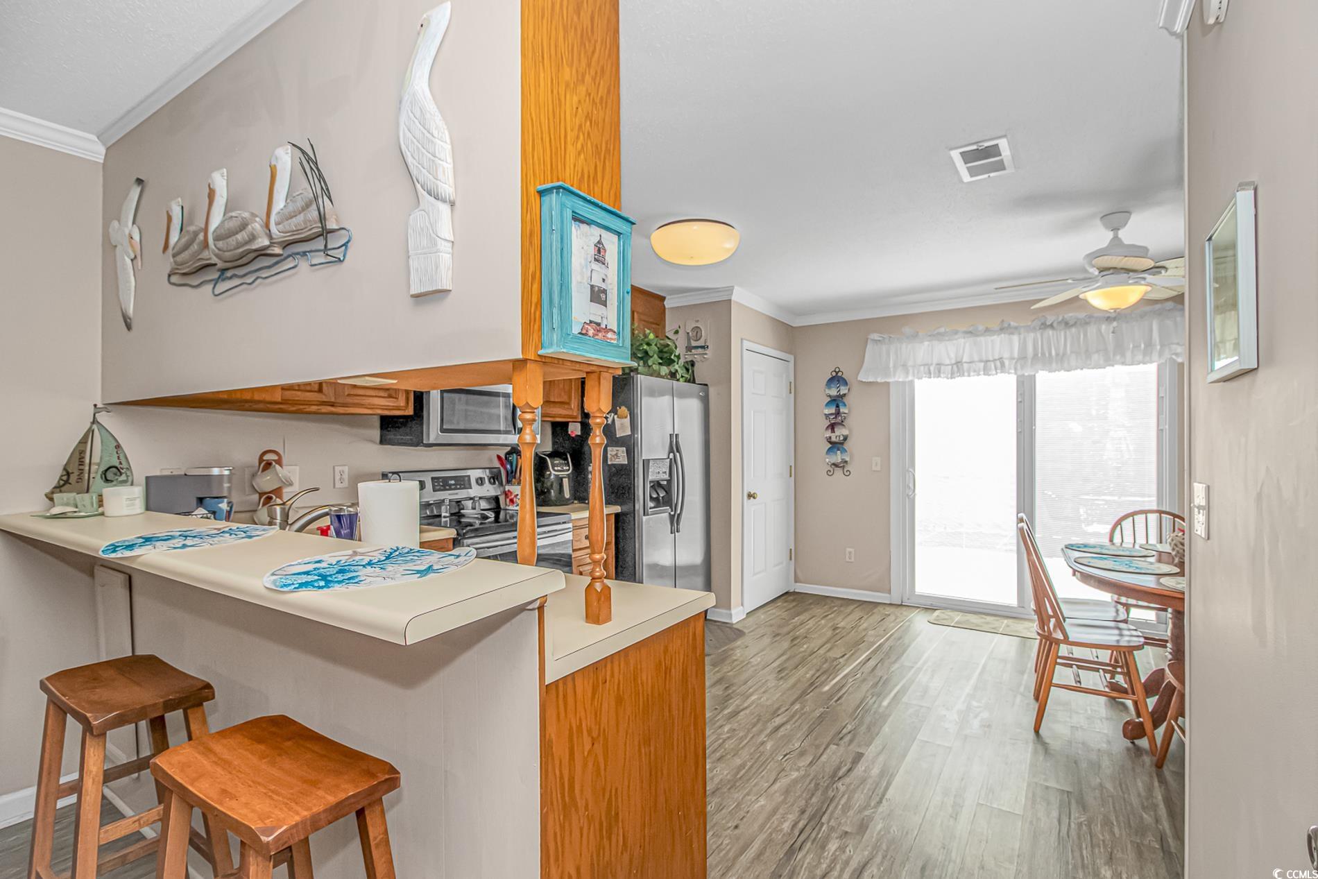 Are you looking to purchase a town home, located literally off of Main Street right in the heart of North Myrtle Beach? Here is its! This townhome has an unbeatable location and is just a very short golf cart ride to the beach. Yes, you can have golf carts in the community. The unit is in great shape and has LVP flooring, stainless steel appliances, private outdoor patio and more. Both bedrooms are very spacious and the upstairs bathroom has also been updated. The HOA fees are extremely low! You won't find cheaper fees this close to the beach. You can do long or short term rentals when you aren't using the property. It would also make a great primary residence with it's proximity to everything NMB has to offer. These units do not come up for sale very often. Turn key, move in ready furnished town home, in a golf cart community on Main Street. Can't beat it! Schedule a showing today!!