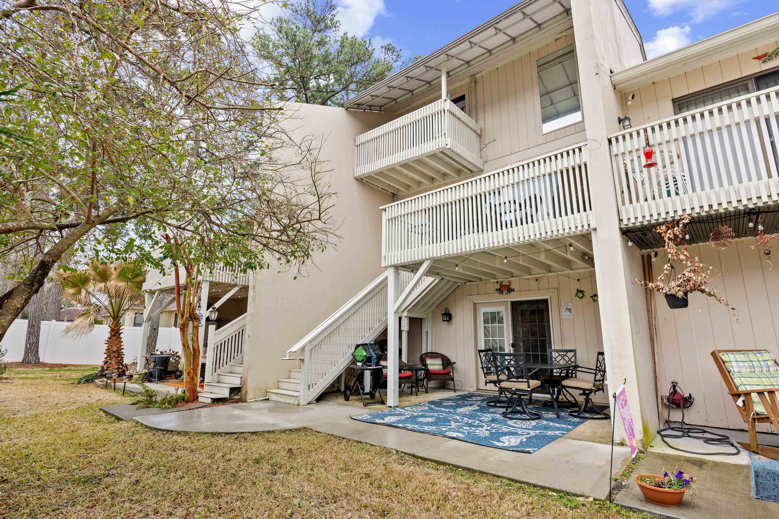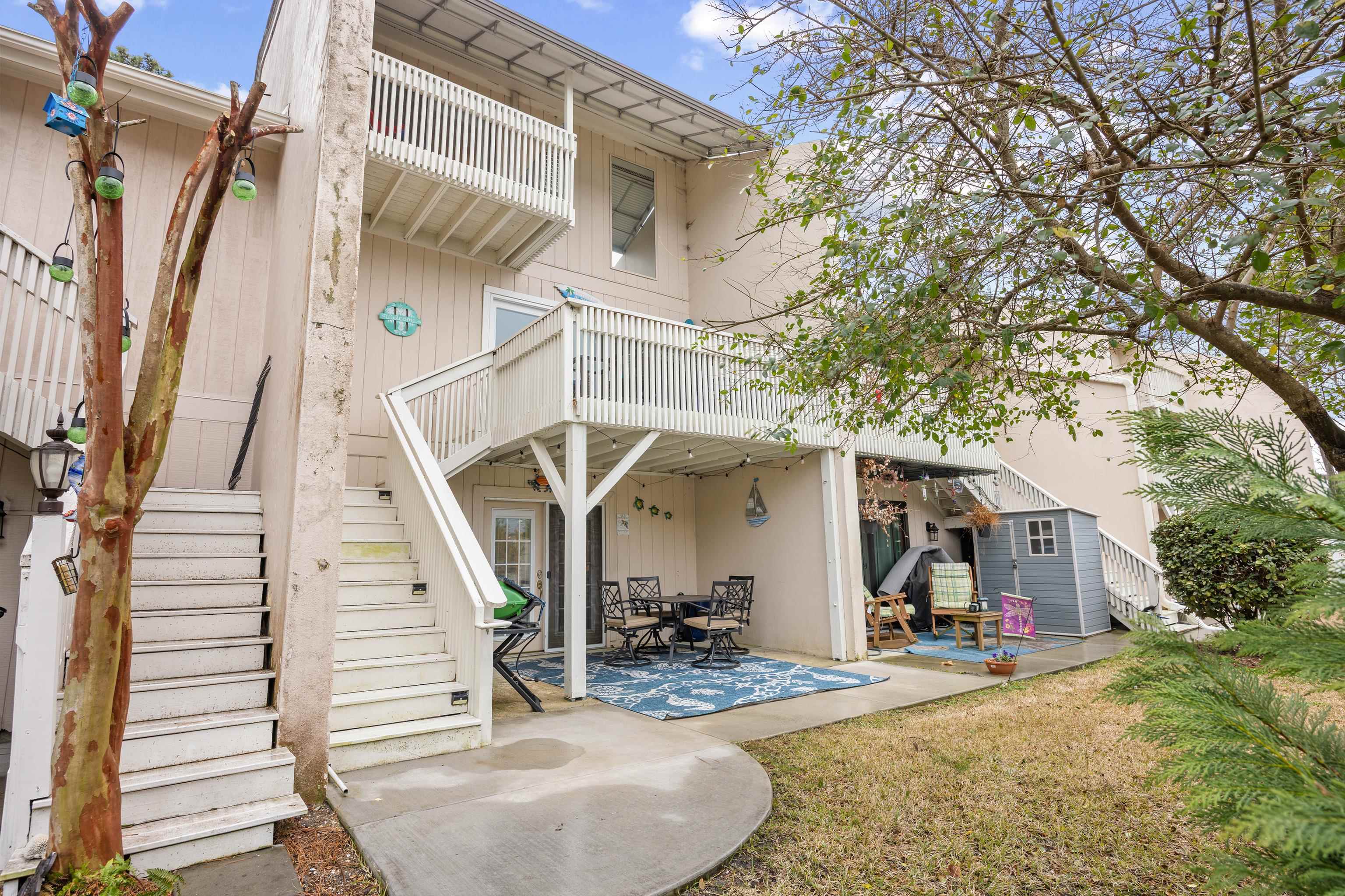 Unique east of Hwy 17 opportunity! This impeccably maintained 3-bedroom, 3.5-bath townhome in North Myrtle Beach is the ultimate coastal retreat, located just 1 mile from the ocean. Perfect for a primary residence, vacation home, or rental investment, this unit is being sold fully furnished and is truly move-in ready. Third Floor: Entirely dedicated to the Primary Suite with a walk-in closet, en-suite walk-in shower, and a private balcony. Second Floor: Social hub featuring an living/dining/kitchen, powder room and two balconies. The rear deck was custom-extended with stairs added for direct backyard access. First Floor: Two guest suites, each with a private bath and laundry. Features a large exterior storage closet (perfect for beach chairs) and a newly extended ground-floor patio off back bedroom. Major 2025/2026 Updates: • HVAC Replaced (2025) – Energy efficient and worry-free. • Expanded Outdoor Living: Custom-built oversized patio and deck. • Smart Home: Ring doorbell included. • Amenities: Community pool and 2 dedicated parking spots. Conveniently located from championship golf, shopping, and the famous NMB dining scene. Experience the "East of 17" lifestyle where you can golf cart to the beach in minutes!