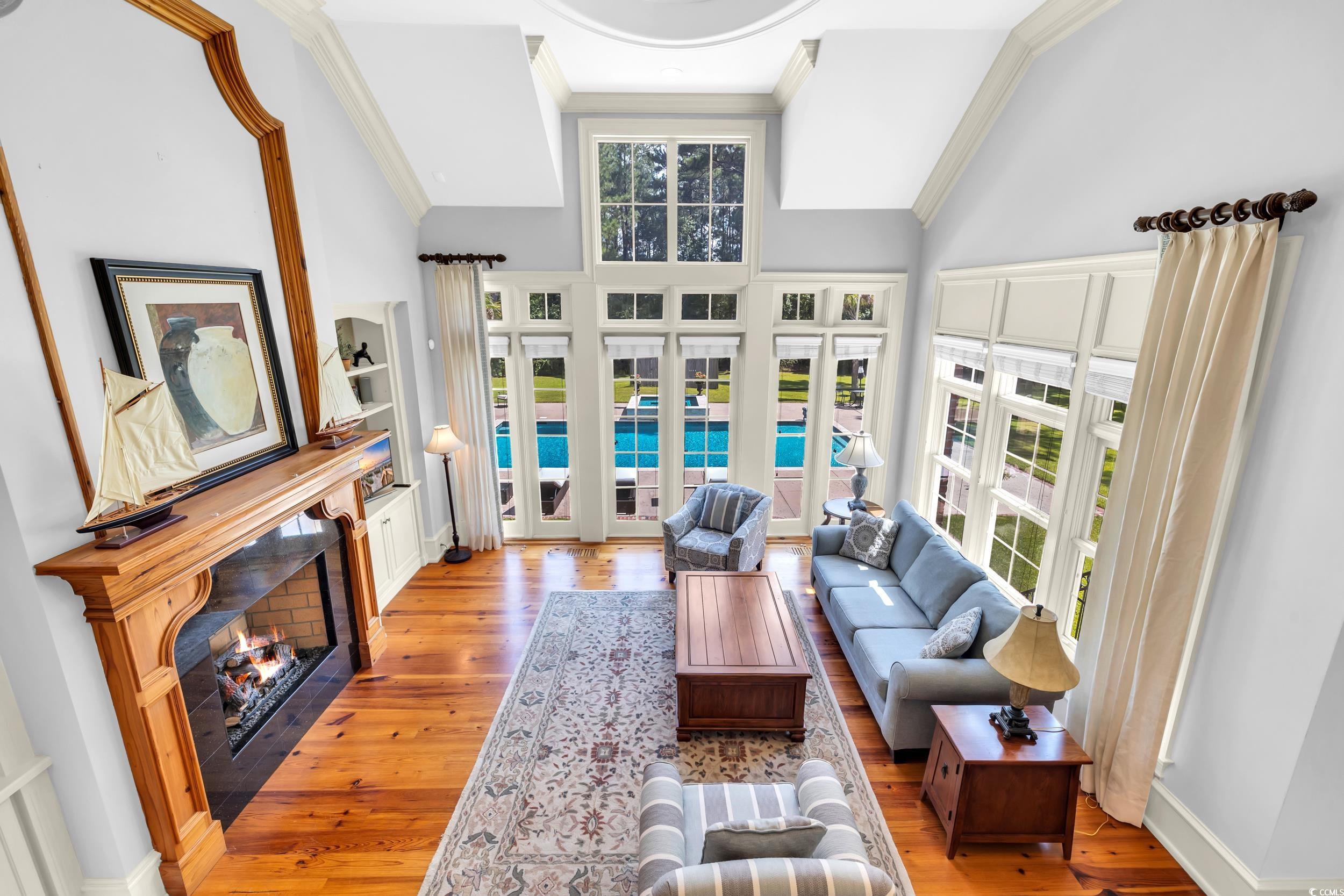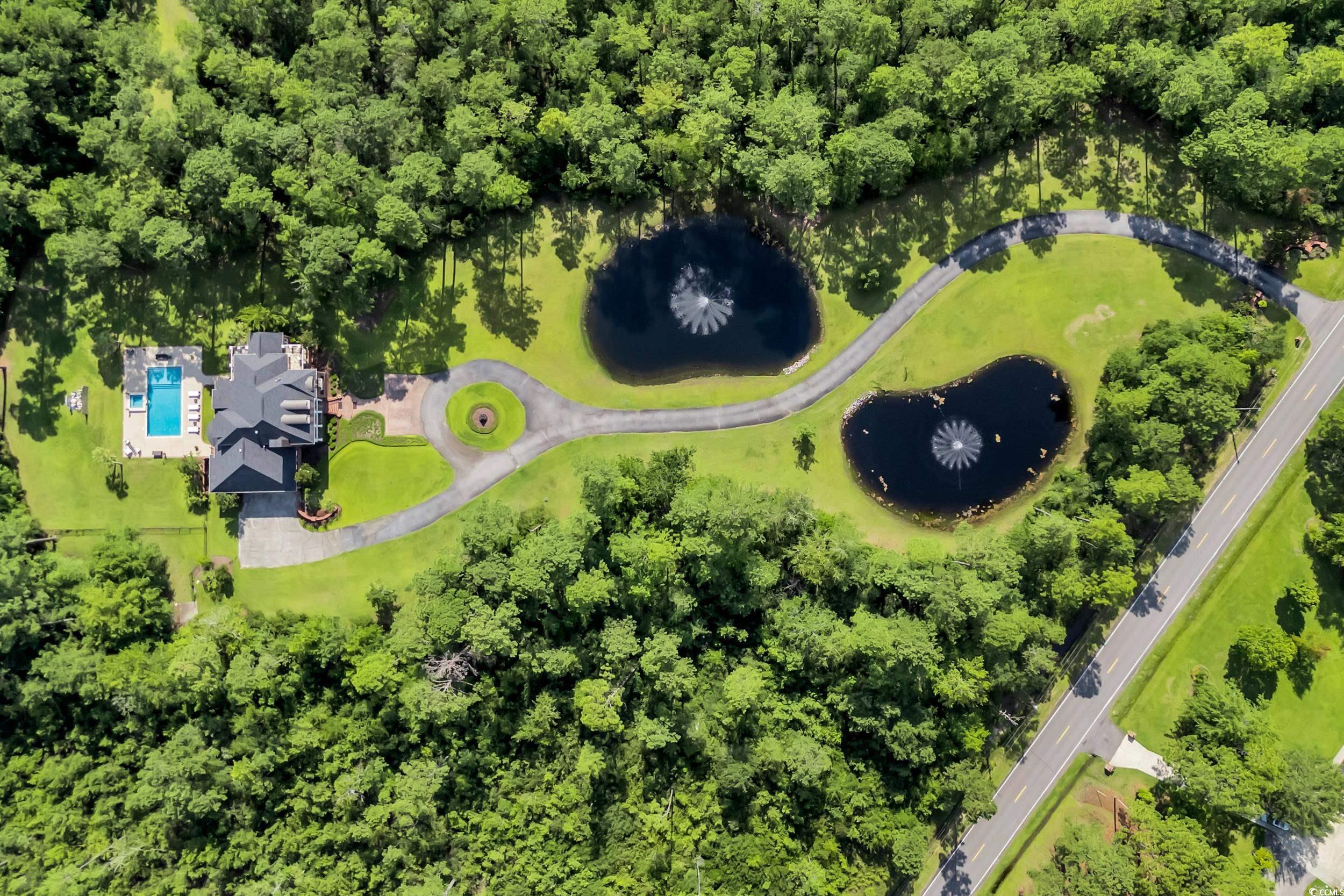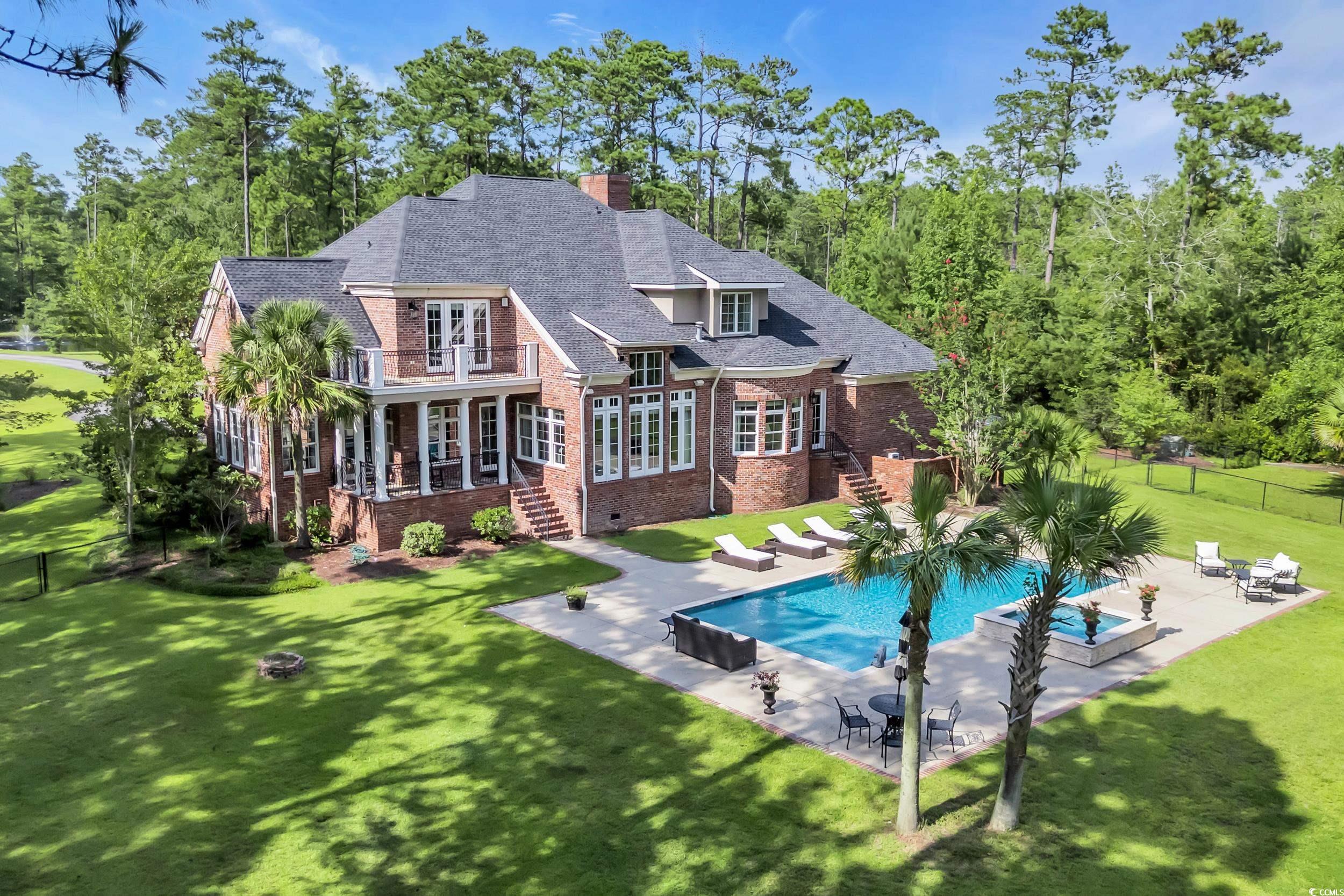 Sprawling home estate on more than 21 acres, only 30 minutes from the beach in Loris, SC. This gorgeous, 4 bedroom, 4 ½ bathroom, brick custom home was built in 2007 with top-of-the-line craftsmanship and materials. Tremendous curb appeal as you enter through the wrought iron gates and brick entrance passing by the two stocked ponds with fountains in both. Surrounded by woods with lots of privacy and ample lawn space. Large, heated saltwater pool with tanning ledge, hot tub, and waterfall with open patio area with lots of space to entertain, gorgeous landscaping, asphalt drive and circle driveway with large brick paver parking area. The exterior of the home consists of brick walls, decorative columns, stucco accents and 7 expansive tiled balconies with wrought iron railings and gas lanterns on front porches. There is private side access to the 3-car garage, well-kept grounds, and a fenced in yard. Beautiful brick steps lead to the custom wooden entry door. It continues inside with so much attention to detail with custom accents, wood flooring, custom tile, soaring upgraded ceilings throughout with tray/co?ered/wood, every door is custom made for its space, high end windows and doors, formal dining room, sunroom with brick wall and wood ceiling, large living room with huge windows overlooking backyard and pool, propane fireplaces in living room and o?ce with a gorgeous wood hearth, built-in bookshelves, beautiful molding everywhere, wide baseboards, extra-large crown molding, extensive window/door casings, rounded sheetrock corners, interior brick accents, separate o?ce with double doors and built-in wood shelves, custom window treatments, granite countertops throughout, tile backsplash, custom cabinetry with high end appliances, Sub-Zero refrigerator, Wolf gas stove, double ovens, pot filler, range hood, in-cabinet freezers, ice maker, walk in pantry, huge chandelier at foyer with push button lowering for cleaning, large primary suite with access to backyard, sitting area, nice primary bathroom, walk-in tiled shower with multiple shower heads, double sinks, jetted tub, huge primary closet with custom shelving, uplighting in tray ceiling, wood steps with multiple access points with nice spindles going upstairs, large secondary bedrooms with walk in closets, laundry room with cabinets and a sink, fully encapsulated extra-large crawlspace with so much available storage space. This exquisite property has it all with so much detail inside and out!