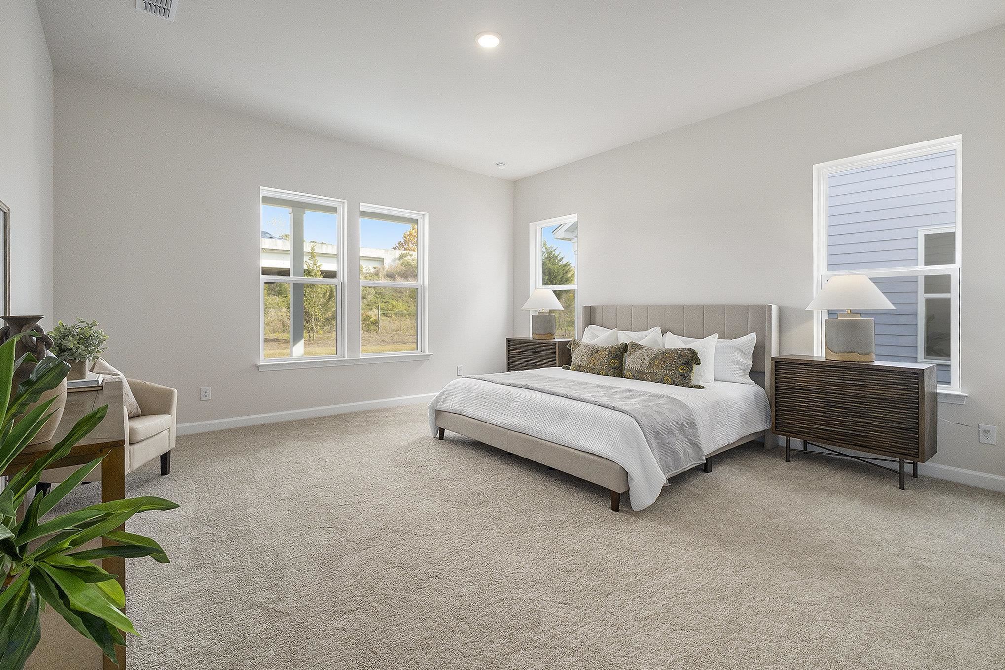 FIRST FLOOR PRIMARY! Grab this opportunity to be one of the first to buy in an Intracoastal Waterway waterfront community! Discover the perfect blend of comfort and style in this spacious 2,683 sq. ft. two-story home. With 4 bedrooms and 2.5 baths, the thoughtfully designed layout begins with a main-floor primary suite complete with dual vanities, a tiled shower, and an expansive walk-in closet. The open-concept kitchen flows into the breakfast area and family room, extending outdoors to a covered patio upgrade—ideal for both entertaining and unwinding. Upstairs, a versatile loft anchors three secondary bedrooms, each with its own walk-in closet. A large storage closet off the loft adds convenience, keeping everything neatly in place. This home also features our Harmony Collection, inspired by the quiet rhythm of nature and the softness of light. White cabinets, brushed nickel hardware, a scalloped tile backsplash, quartz countertops, and light oak-style LVP flooring create a calm, airy atmosphere that feels timeless yet modern. Every detail was curated to bring a sense of peace and balance to daily living. Photos are of similar model in the community.