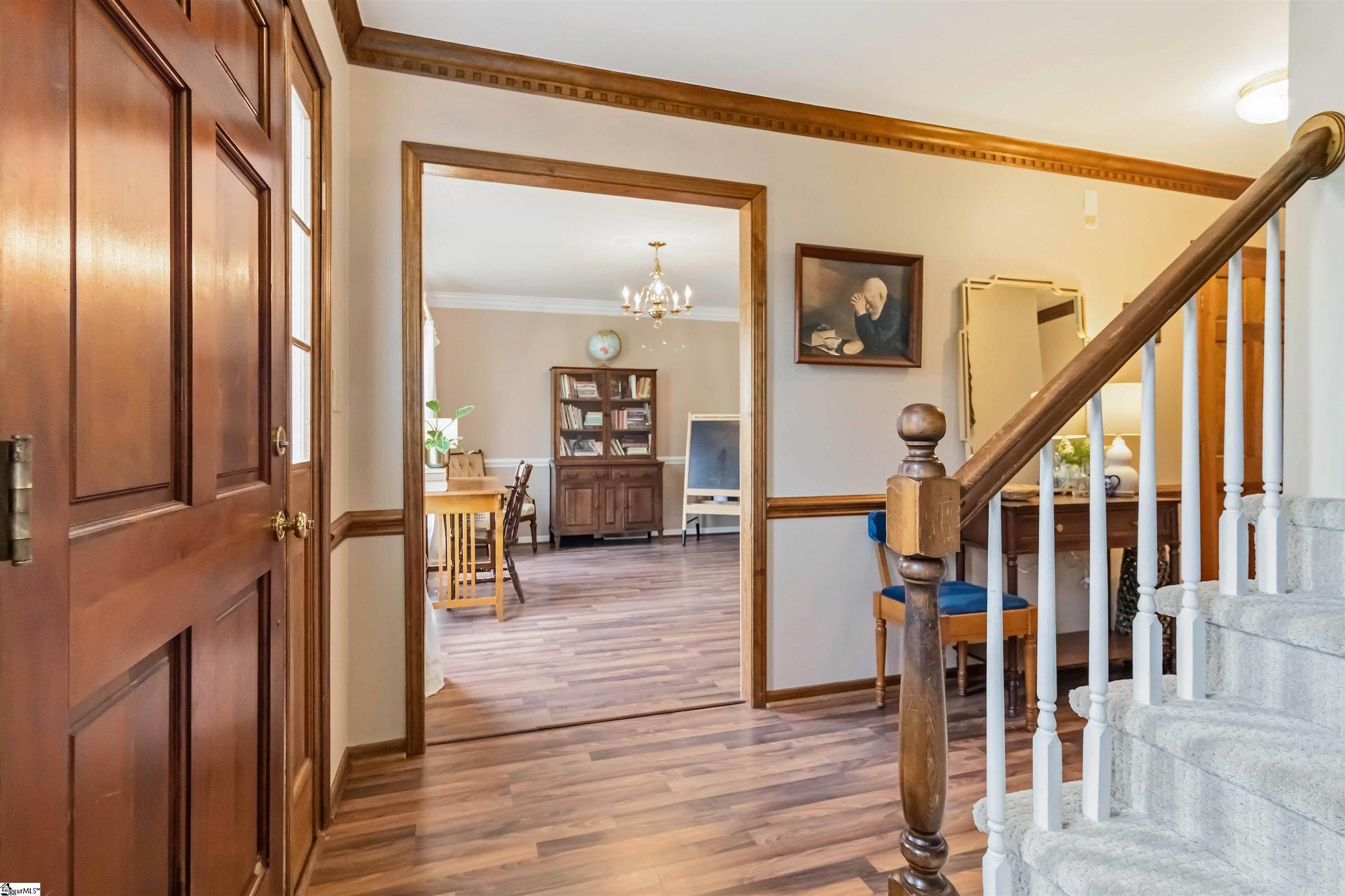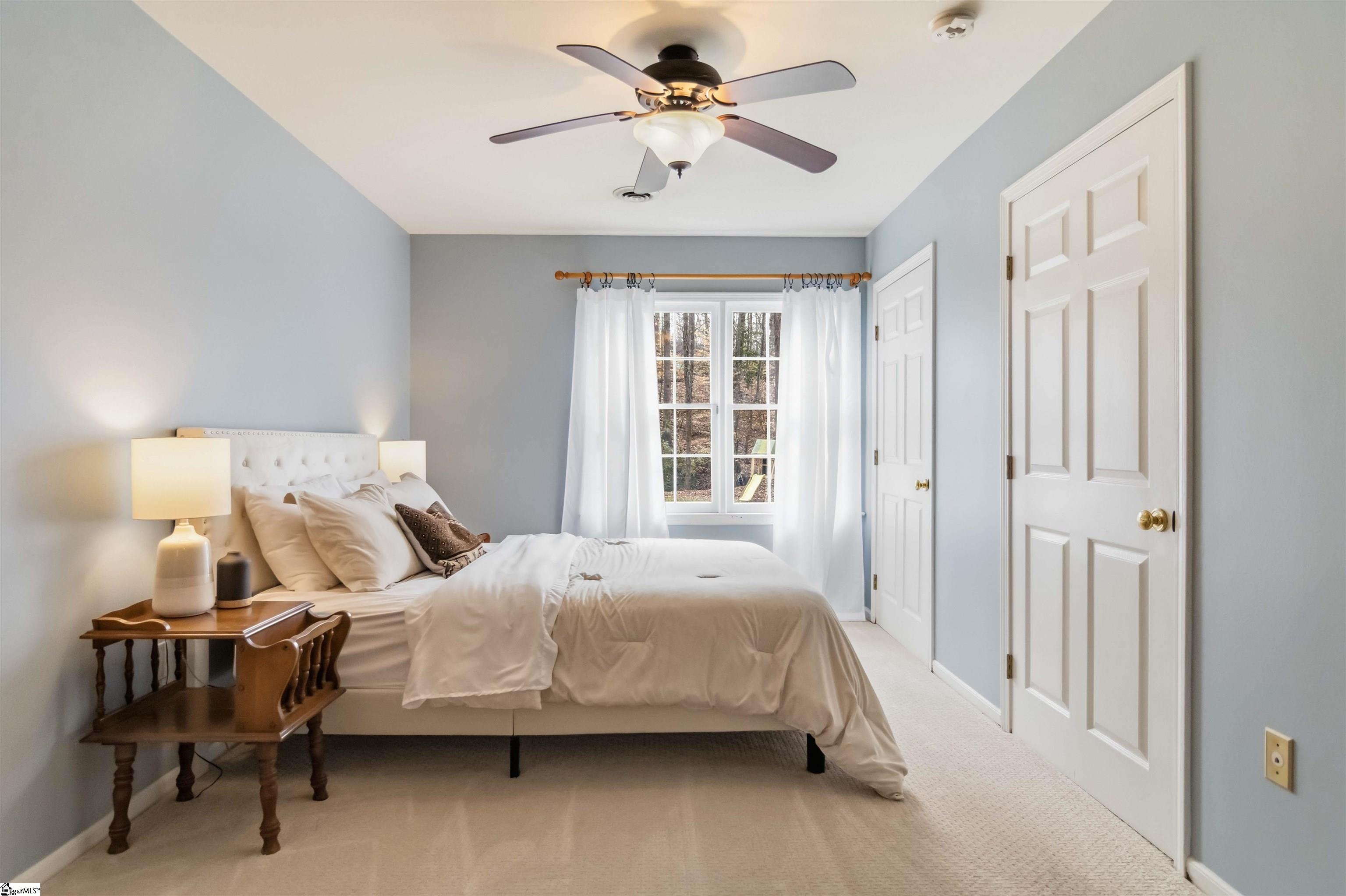 Welcome home to one of the best well-established subdivisions in Simpsonville! Located just one half-mile from I-385 and close to local schools, restaurants and shopping centers, this location is the perfect combination of tranquility and convenience. No cookie-cutter homes here; all are uniquely positioned with individual character, mature trees and beautiful landscaping! This gorgeous, tall Colonial welcomes you with a shaded, winding sidewalk that leads to a charming open foyer. The first floor will greet you with beams of natural light leading to a spacious eat-in kitchen where you can step out onto the covered deck overlooking the beautiful, tree-lined backyard. Also on the main floor, you will find a laundry room, half-bath, formal dining room, cozy living room with a wood-burning fireplace, and a den that is perfect as a home office! The second floor has three spacious bedrooms, plenty of closet space, and two full bathrooms. Need more space? A beautiful, finished basement offers another bedroom and family flex space! A wide, paved, private driveway leads to a two-car attached garage at basement level, and a brand new 24x35 detached garage - talk about a dream workspace! This huge, all-purpose workshop with 10x10 doors can accommodate more vehicles, boats, hobby equipment, or become your dream space for recreation! Sellers have made many improvements including fresh paint, new carpeting, new stainless appliances, and a new HVAC unit. Schedule your showing today - this one is move-in ready!
