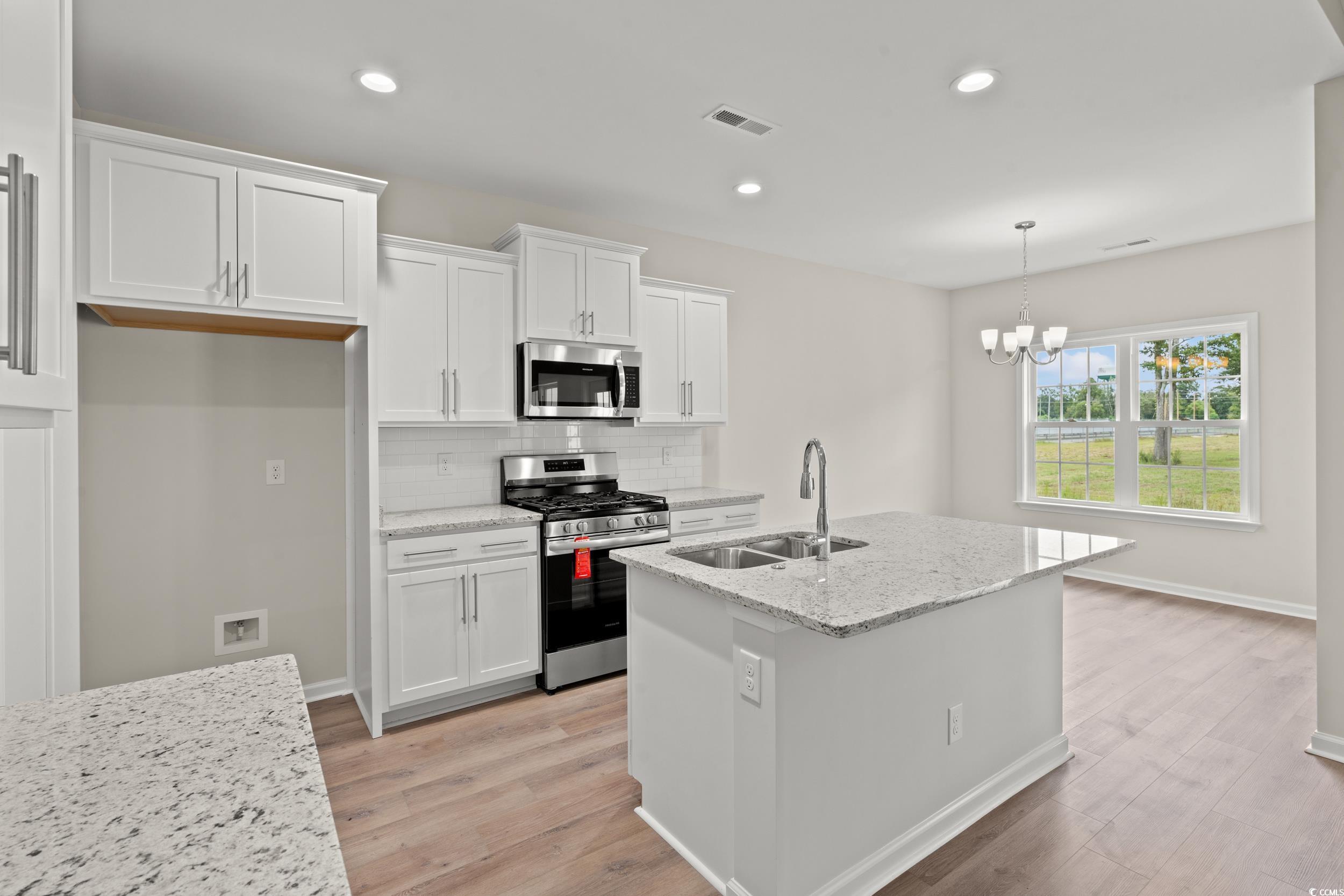Move In Ready Home! This popular Oak II plan located in Woodside Crossing is one of the most exciting floor plans that we offer. You will enjoy 3 bedrooms all on one level and with over 1400 heated sq ft showcasing a light and bright kitchen, dining area, and family room that incorporates an open design. Designer kitchen featuring stainless Steel appliances, profiled Aristokraft™ Shaker style Cabinets with upgraded hardware, polished stainless steel sink and pull out faucet, durable waterproof laminate flooring in living areas with stain resistant carpet in bedrooms, interior trim package includes window casings and stool for durability and appeal, relaxing baths with cultured marble countertops with integral bowl; executive height vanities in all bathrooms; elongated toilets; Maintenance free exterior features such as premium vinyl siding, soffits and fascia; and high performance GAF™ Architectural shingles, spacious covered rear porch overlooking extra grilling patio, ION Gray smart thermostat, natural gas package including gas heat, Rinnai™ tankless Hot water, and gas range, vaulted ceilings, a 2 car painted and trimmed garage featuring a steel-reinforced garage door with LiftMaster™ 3/4 HP chain-drive opener, built-in camera, and MyQ® Wi-Fi connectivity for mobile operation, and drop down attic access for storage. Your master suite, separate from the other bedrooms, includes a large shower, walk-in closet, plus a separate linen closet for additional storage. Woodside Crossing amenities include a swimming pool, clubhouse, community sidewalks, and a dog park for residents to enjoy! Building lifestyles for over 40 years, we remain the premier home builder along the Grand Strand. We’re proud to be the 2021, 2022, 2023, and 2024 winners of both WMBF News’ and The Sun News Best Home Builder awards, and the 2025 winner of The Sun News Best Home Builder. 2023, 2024, 2025, & 2026 winners of the Myrtle Beach Herald's Best Residential Real Estate Developer award, and 2024 & 2025 winners of The Horry Independent’s Best Residential Real Estate Developer and Best New Home Builder award. We began and remain in the Grand Strand, and we want you to experience the local pride we build today and every day in Horry and Georgetown Counties. Pictures, photos, colors, and layouts are for illustration purposes only and can vary from home to home. Customization may be possible – call listing agent for availability. Square footages are approximate.