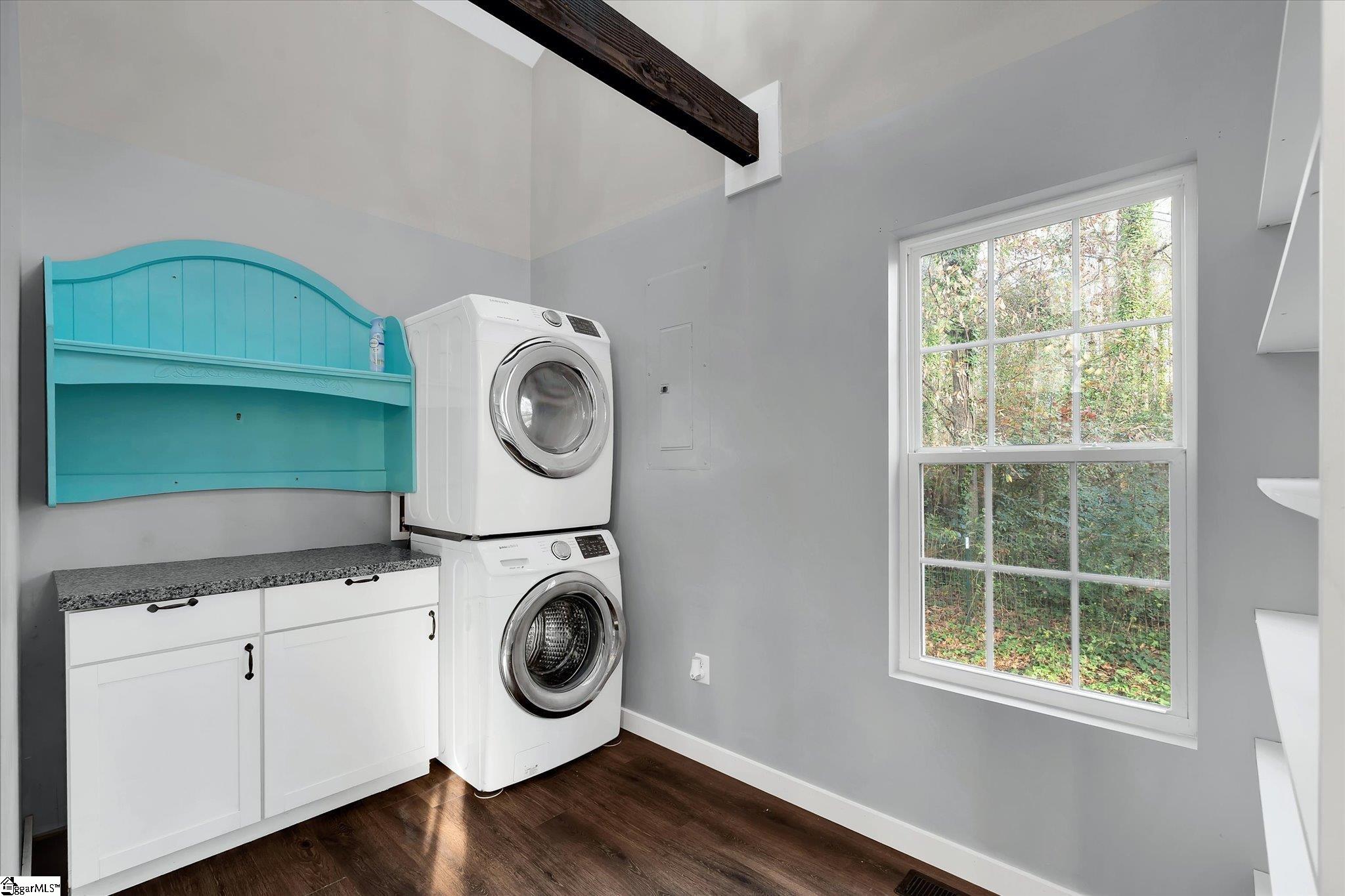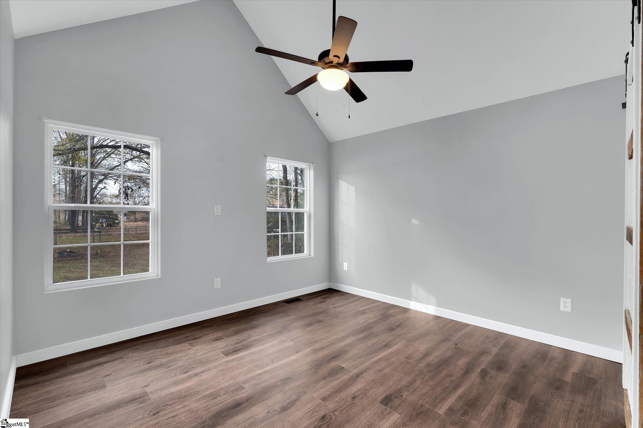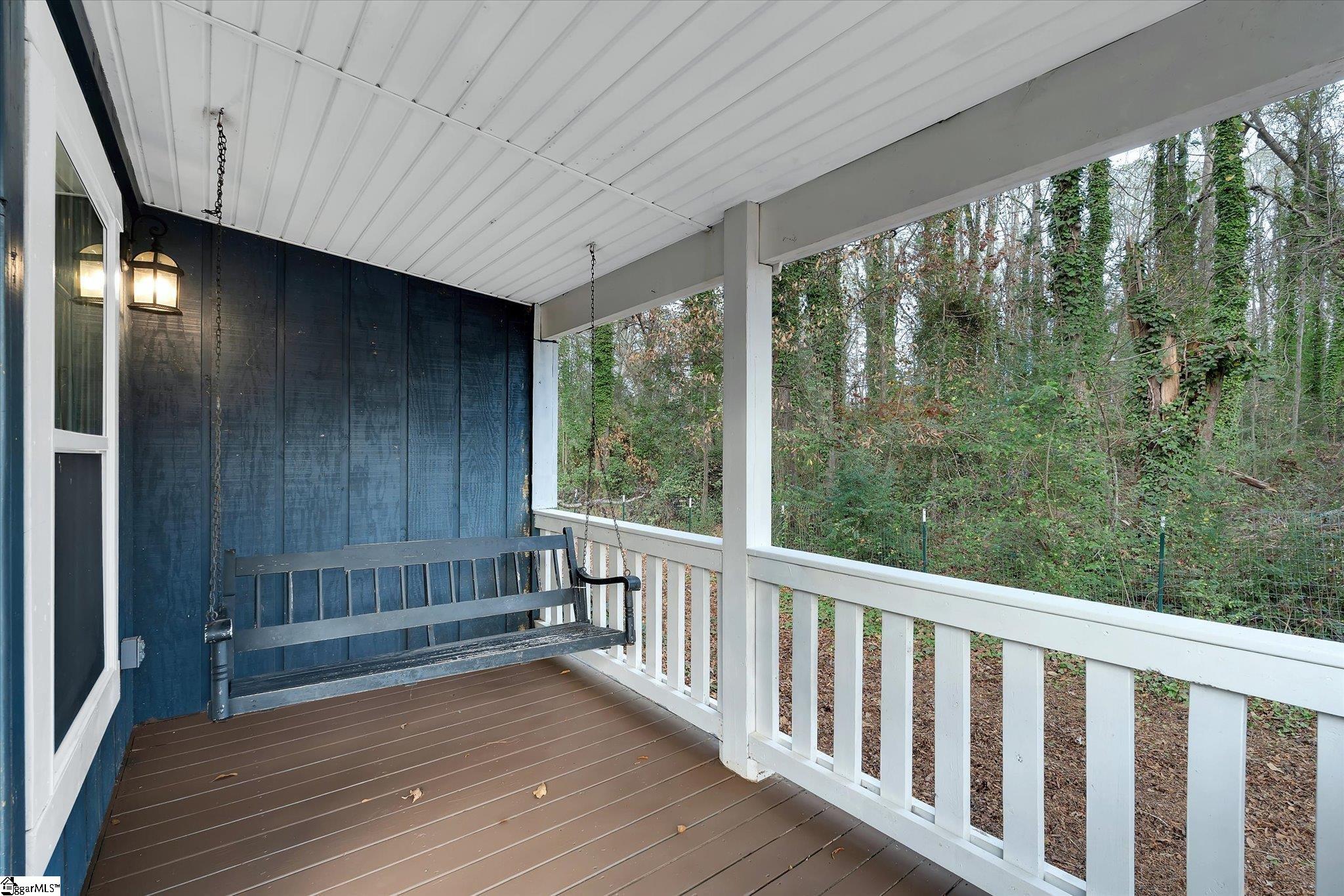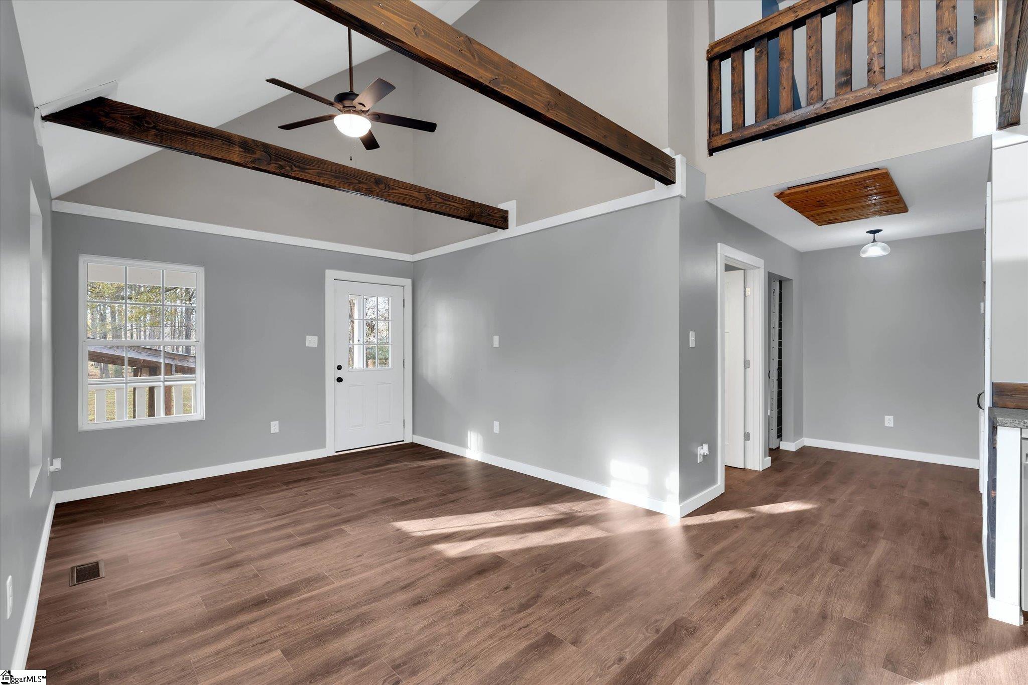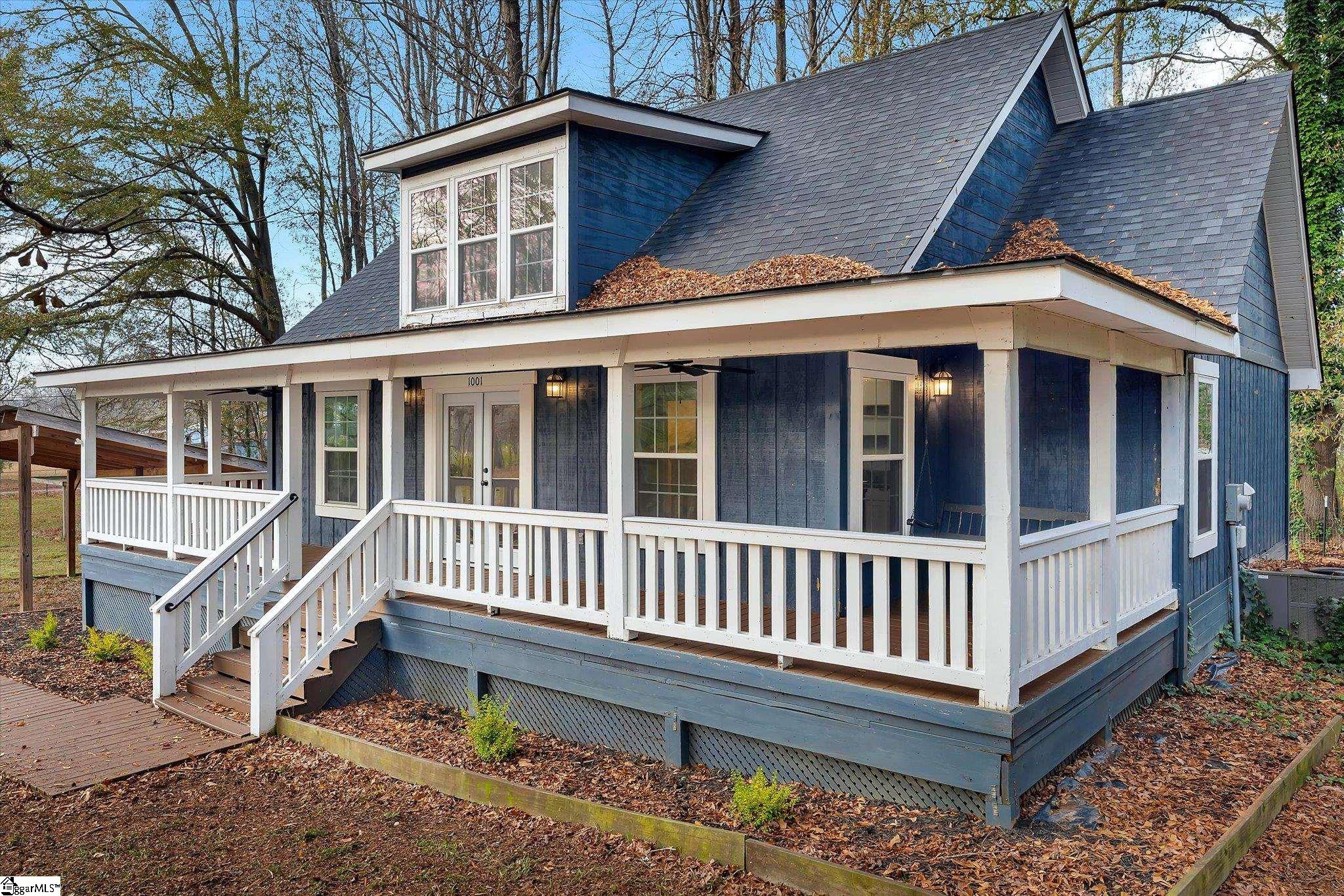 This charming and inviting property sits on almost half acre with a fenced yard, detached 2-car carport, and the peaceful feel of a private retreat—all with no HOA. Step inside to an open floor plan filled with character. The living room and kitchen/dining area feature a vaulted, beam ceiling, creating an airy, rustic vibe perfect for a true “mountain-style” ambiance. The main level has been upgraded with brand-new luxury vinyl plank flooring, and the kitchen offers floating shelves, stainless-steel appliances, and warm wood accents that blend charm with functionality. Right off the kitchen, you’ll find an impressive large laundry room with additional cabinetry and built-ins that provide exceptional pantry and storage space. The primary bedroom suite is a peaceful retreat with its vaulted ceiling, sliding barn door, ceiling fan, and an en-suite bathroom featuring a spacious walk-in shower. The second bedroom also includes a sliding barn door and offers a generous walk-in closet. The second bathroom features double sink, upgraded fixtures, and a tub/shower with tile surround. A standout bonus is the finished attic, complete with laminate flooring, HVAC vent, ceiling fan, and a window—ideal for a home office, hobby room, playroom, or additional flex space. Outside, enjoy the South Carolina seasons on the wrap-around porch, complete with two ceiling fans and a porch swing—perfect for morning coffee, quiet evenings, or hosting friends. Located approximately 3 miles from Anderson University and convenient to shopping, dining, and major roadways, this home offers the perfect blend of comfort, location, and lifestyle. Don’t miss this unique property—schedule your showing today!