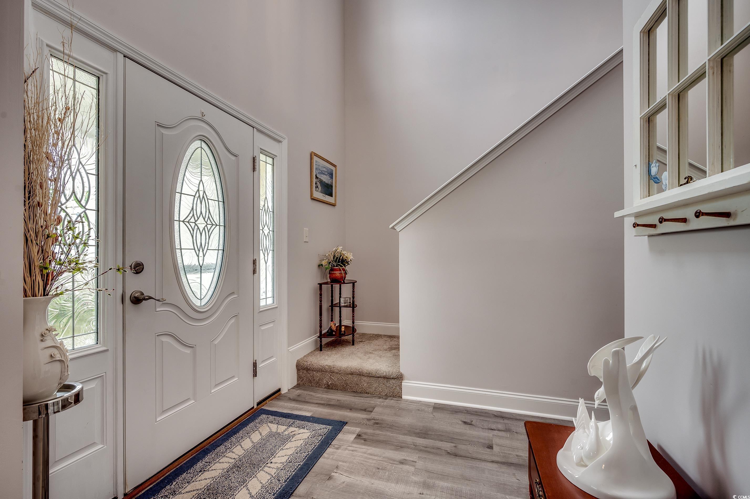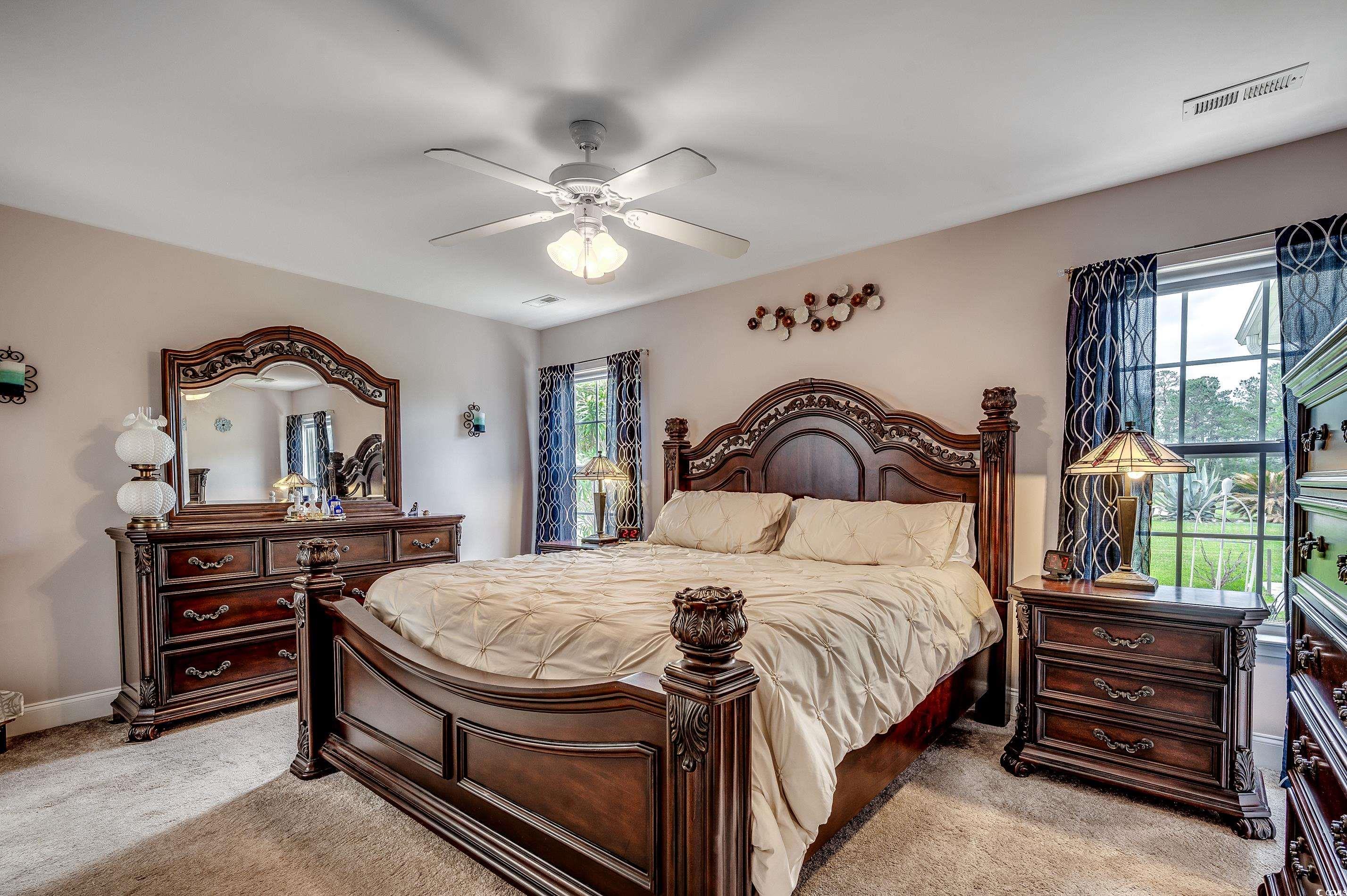 Stunning 3BR/2.5BA home with a huge bonus room (could be used as a 4th bedroom), formal dining room, and a screened porch offering serene lake views. You are sure to appreciate the bright and spacious kitchen with granite countertops, tile floors, a pantry, and a breakfast nook with gorgeous lake views. The primary bedroom is conveniently located downstairs and features a large walk-in closet, double sinks, a garden tub, and a stand-up shower. Upstairs, you'll find 2 additional bedrooms, a full bath, and a large bonus room. Enjoy the convenience of a separate laundry room and a 2-car attached garage with extra parking pad in the driveway perfect for your boat or RV! (RV hook up for electric and sewer clean out is available on the side of home near extra parking pad) Nestled at the end of a cul-de-sac, this home ensures privacy. Pecan Grove is a well-maintained community with a low HOA fee, just minutes from historic Downtown Conway and about a 30-minute drive to Myrtle Beach. Love what you see? Come experience it in person—book your tour today!