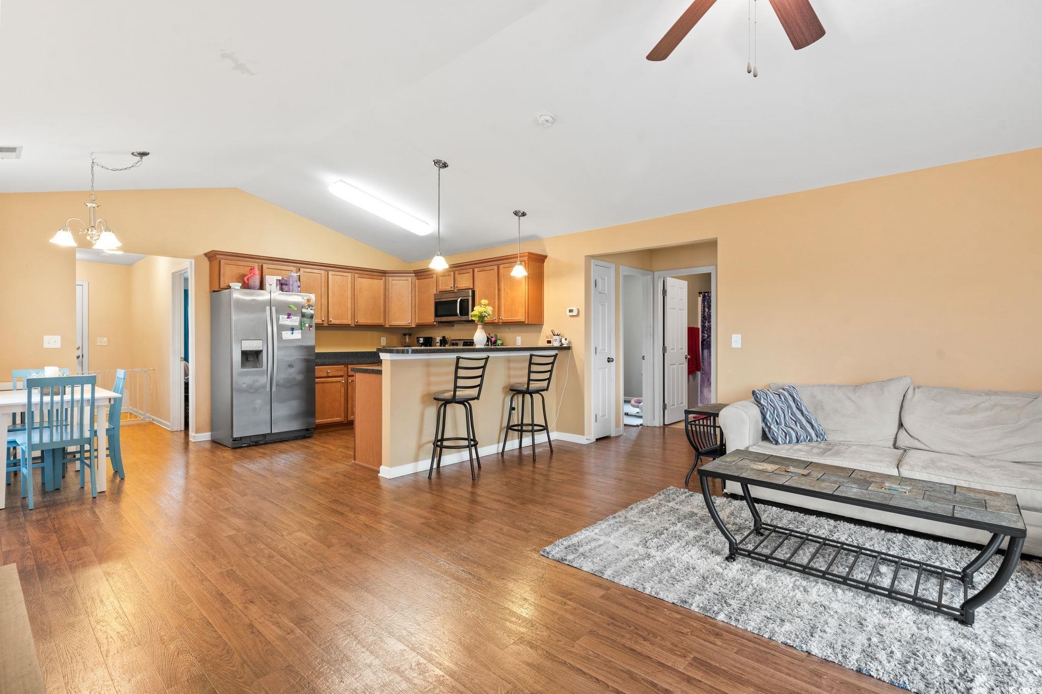 Charming 3-Bedroom Ranch in St. John’s Ridge! Don’t miss this adorable 3-bedroom, 2-bath ranch-style home featuring a desirable split floor plan and open-concept living area. The spacious main living space includes the living room, kitchen, and dining area—accented by cathedral ceilings that create a bright and airy feel. The kitchen is equipped with stainless steel appliances, a convenient breakfast bar, and plenty of cabinet and countertop space for all your cooking needs. With no carpet throughout, this home is perfect for anyone seeking low-maintenance living. The large primary suite offers a private bath and generous walk-in closet. Two additional bedrooms provide flexibility for guests, a home office, or a fitness space. Step outside to enjoy a lovely patio, attached storage shed, and a fully fenced backyard with durable white vinyl fencing—ideal for pets, kids, or weekend entertaining. Conveniently located in St. John’s Ridge, this home is just minutes from shopping, dining, and everyday conveniences. Schedule your showing today—this gem won’t last long!