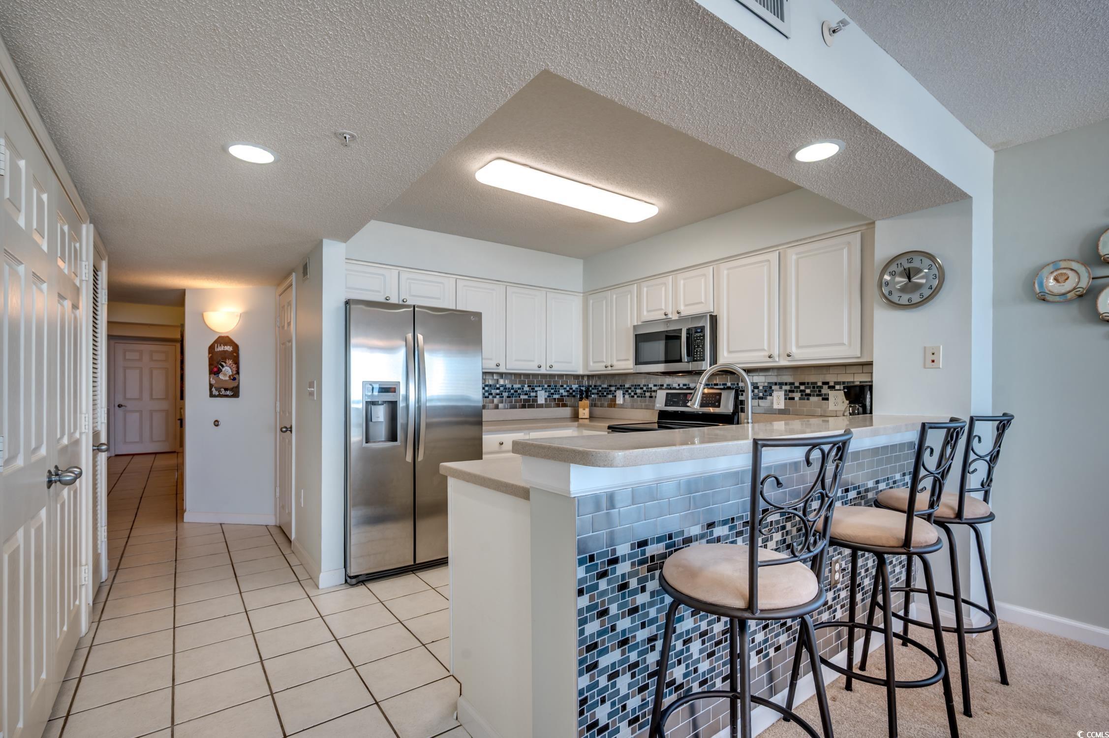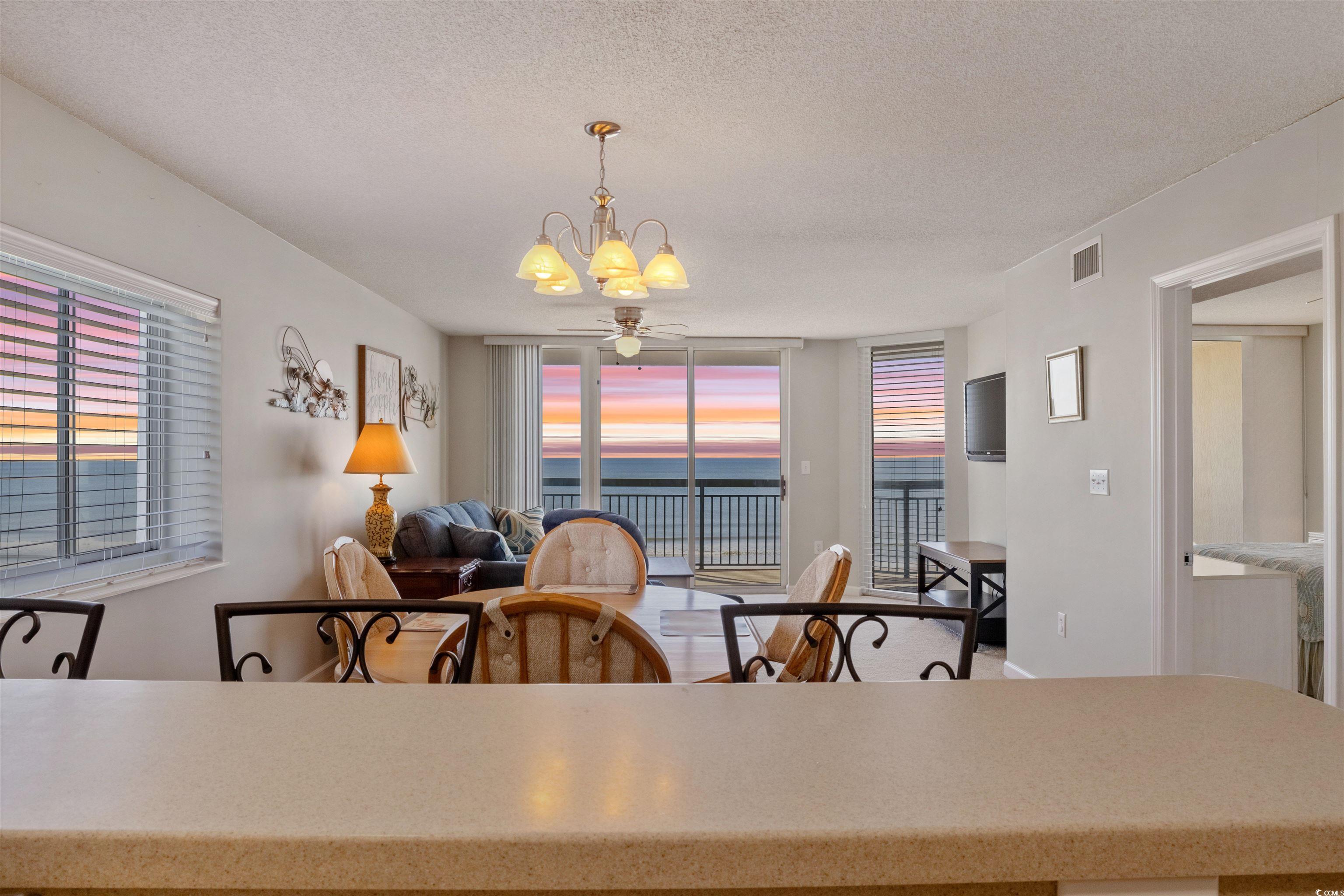 Paradise Found! Experience the ultimate in coastal luxury with this direct OCEAN FRONT condo in North Shore Villas. Perfectly positioned on the North end location of the building, never rented and lightly used as a second home, you'll fall in love with this condo the minute you see it. Laid -back living meets refined sophistication in this expansive 4 bedroom 3 bath CORNER END UNIT offering endless unobstructed views of the Atlantic Ocean and direct access to the beach just steps from your door. Designed with comfort and elegance in mind, the captivating ocean views immediately greet you in every room with an open concept main living area. The layout flows seamlessly from the foyer to the dining and living spaces, leading you straight towards the ocean onto the oversized balcony. Whether you're sipping morning coffee or hosting sunset dinners al fresco, this outdoor space offers the perfect setting for unforgettable coastal moments. Inside, the kitchen is equipped with ALL NEW STAINLESS STEEL APPLIANCES and decorative mosaic tiled backsplash and knee wall. In the Dining area you can see the entire northern shore for miles sitting at your dining room table from the triple slider window. A NEW HEATING and COOLING SYSTEM was installed 06/2025 (inside and outside units) and a NEW WATER HEATER was installed 09/2023. The luxurious owners suite is a private retreat of it's own with dual walk in closets, aqua blue gray painted walls, double sink vanity en-suite bath and direct balcony access to feel the soothing sea breezes. An additional primary suite has a bonus balcony with ocean and city skyline views. Two more spacious bedrooms and 2 full bathrooms ensure plenty of room for family and guests. Abundant storage spaces include three walk-in closets, an interior owner storage room, pantry, laundry room and full size washer & dryer are added for your convenience. Relax under the palm trees or by the pool with tropical, resort style amenities, an array of pools, a lazy river, hot tubs, shower stations and an ocean front fitness room. Sunrises and sunsets are spectacular to watch and even the Super Moon is amazing to see over the ocean at night. And don't forget you'll have VIP seating for the Fourth of July Fireworks light show displayed along the entire North and South Coastline from the comfort of your new condo. The beach at North Shore Villas is never crowded as there are no other high rise resorts near by and there's plenty of white powdery sand at high tide. This prime property checks all the boxes and is fully furnished making this a versatile home for year-round living, dream vacation getaway or income investment.