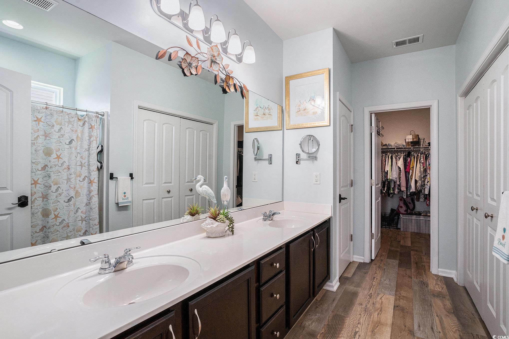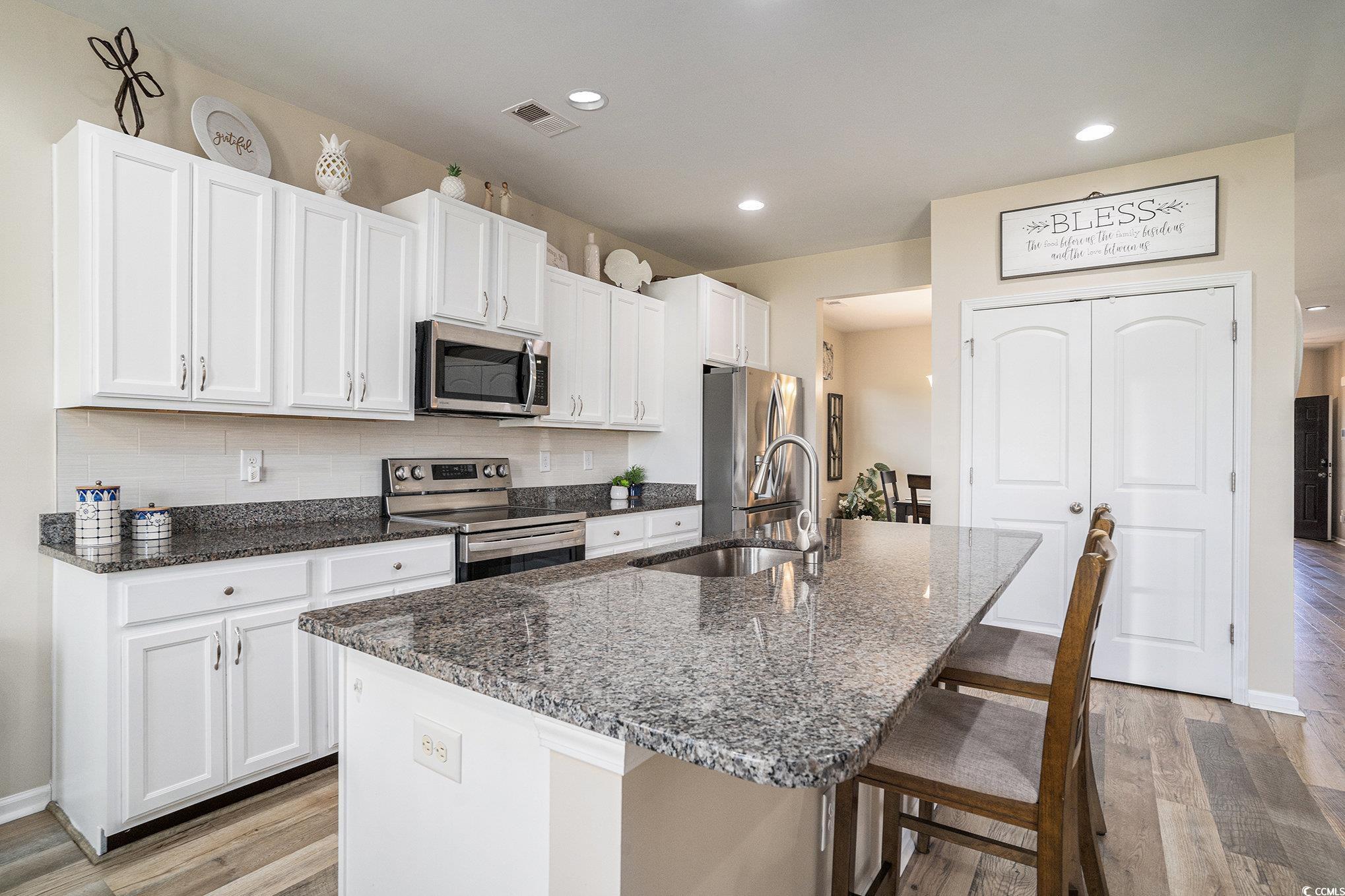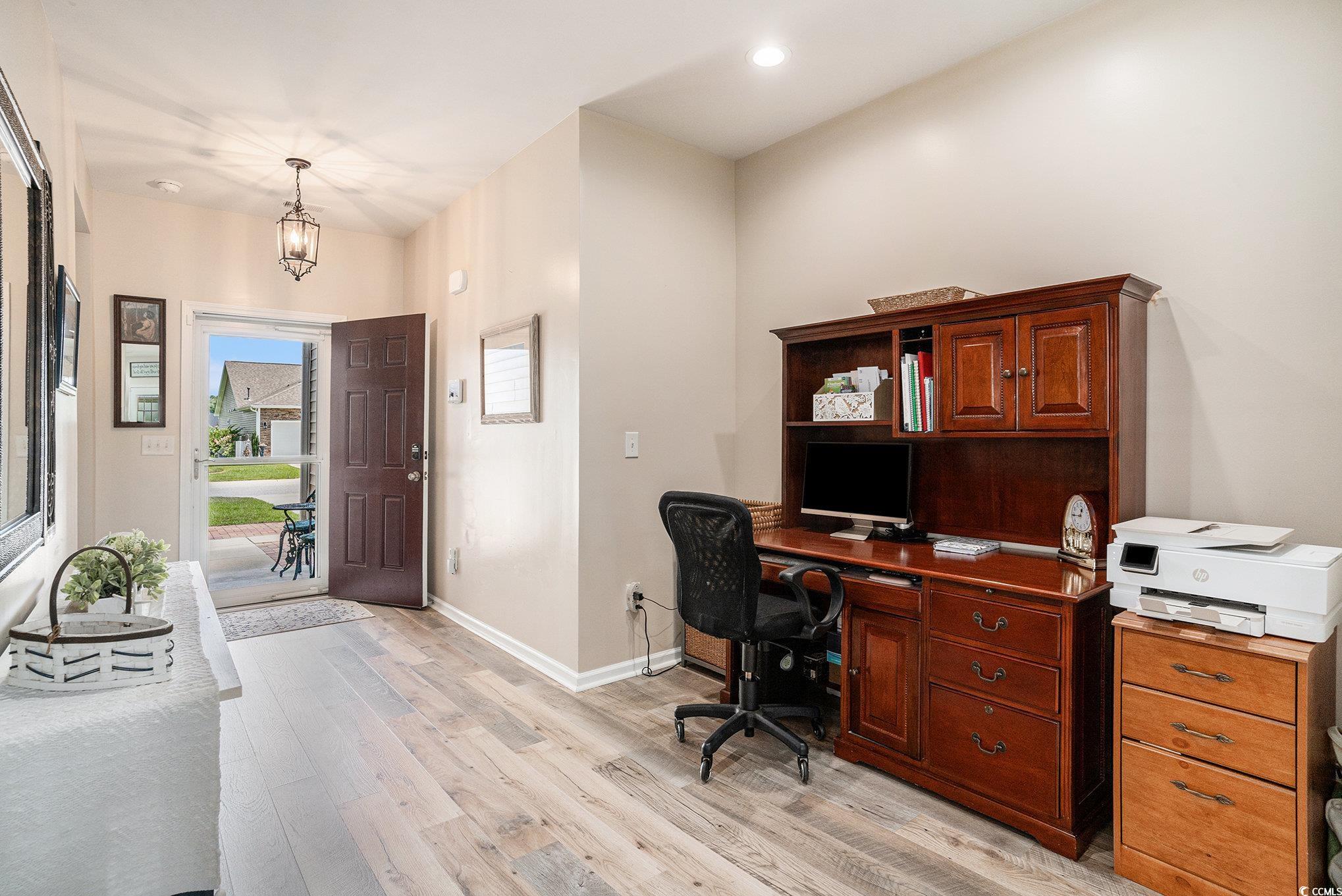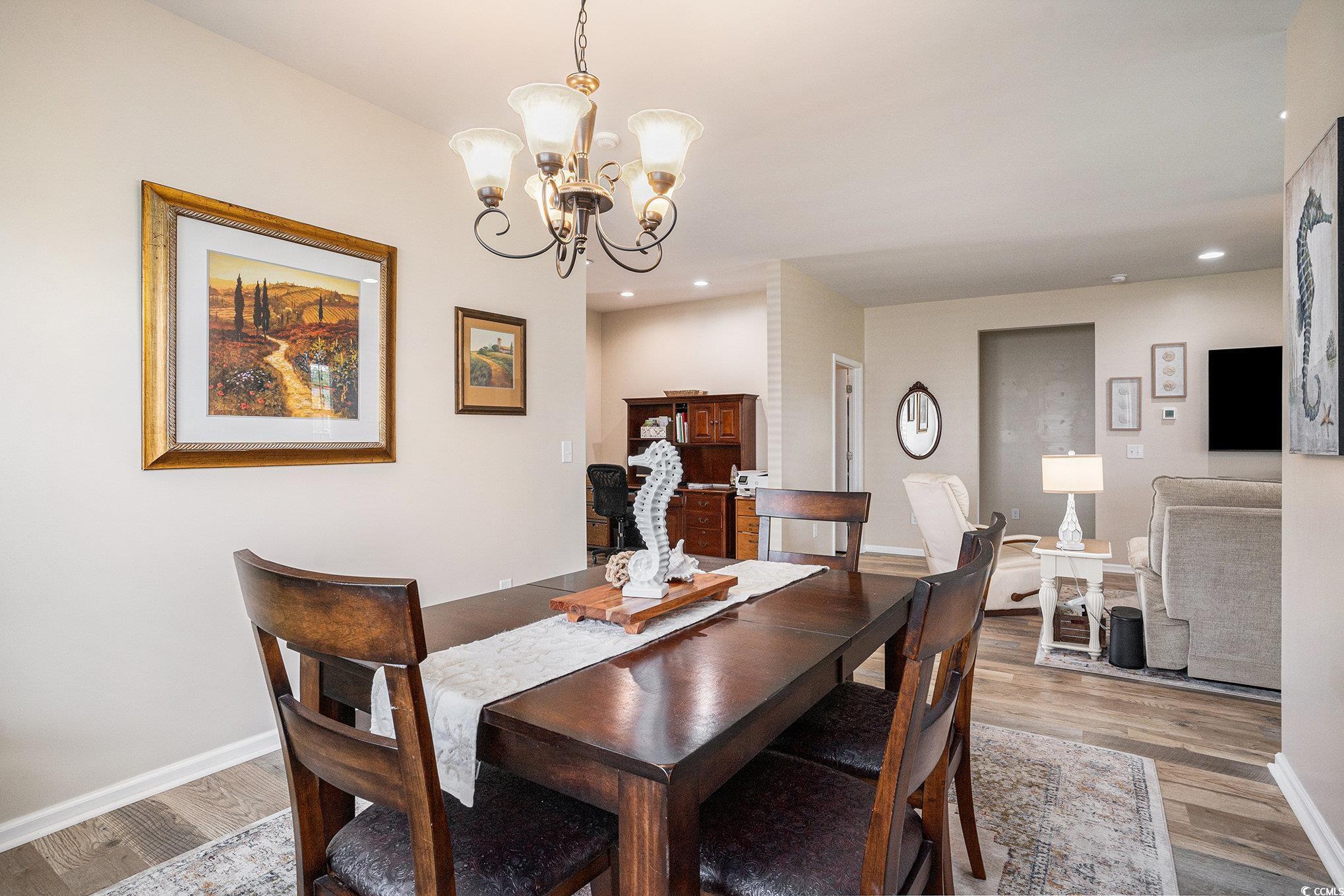 Discover this meticulously maintained 3-bedroom, 2-bathroom residence, perfectly situated on a tranquil side street within this highly desirable natural gas community, Glenmoor. This home offers an immediate sense of comfort and elegance, thoughtfully designed with an open concept floorplan that seamlessly blends modern living with timeless appeal. The main entryway provides ample space, allowing for personalized customization to welcome guests. A dedicated separate dining room offers an ideal setting for formal meals or intimate gatherings, complementing the home's versatile layout. The heart of this home is its inviting gathering room, an expansive space anchored by a beautiful fireplace, perfect for creating warm and cozy evenings. Adjacent to this, culinary enthusiasts will appreciate the kitchen, which boasts abundant counter space and a charming breakfast nook, making meal preparation and casual dining a delight. All stainless steel appliances, including the refrigerator, washer, and dryer, have been upgraded and convey with the home, ensuring a truly move-in ready experience. Experience the elegance and durability of luxury RevWood flooring throughout the entire residence, with no carpet to be found. This premium flooring combines the stunning visual appeal of hardwood with exceptional toughness, offering superior scratch and water resistance. Engineered for long-lasting performance, RevWood ensures lasting beauty and easy maintenance, an ideal choice for an active lifestyle. Step outside to a tranquil screened-in porch, where a truly amazing and private view of the lake's full length awaits. This serene panorama features graceful ducks and swans, ensuring peaceful moments without a neighbor in sight – a genuine backyard oasis designed for relaxation and enjoyment. Beyond the home's interior, practicality meets perfection within the garage, which is thoughtfully equipped with a utility sink, workbench, and cabinets, offering unmatched convenience for hobbies or storage. The property also boasts stunning curb appeal, featuring beautiful landscaping and curbscaping that reflect its meticulous care and enhance its overall aesthetic. Residents of the Glenmoor community enjoy exclusive access to a refreshing community pool, providing an additional avenue for leisure and recreation. The prime location on a quiet side street ensures a peaceful living environment while offering easy access to local amenities, dining, and entertainment, including the Conway Riverwalk and Myrtle Beach attractions.