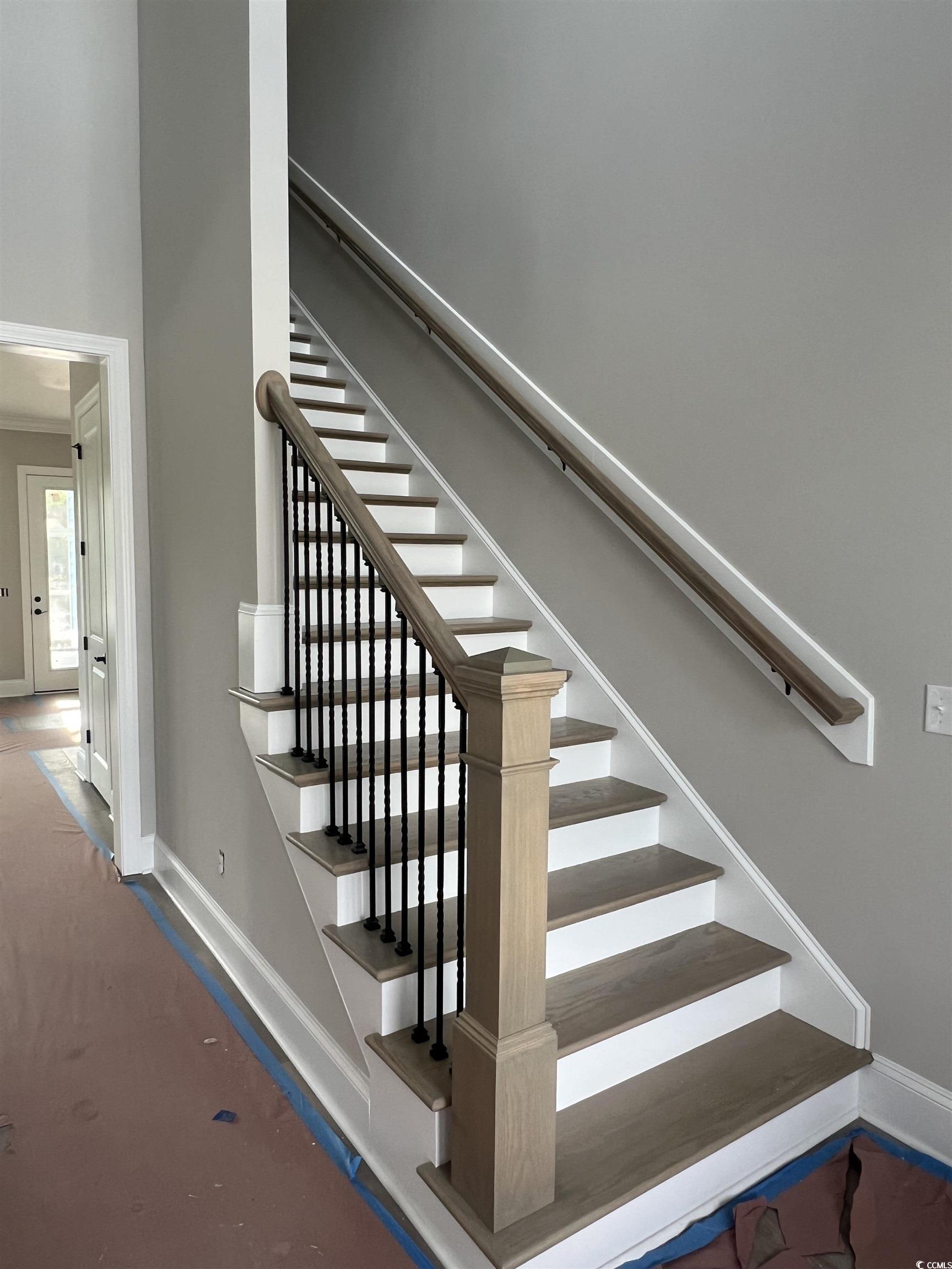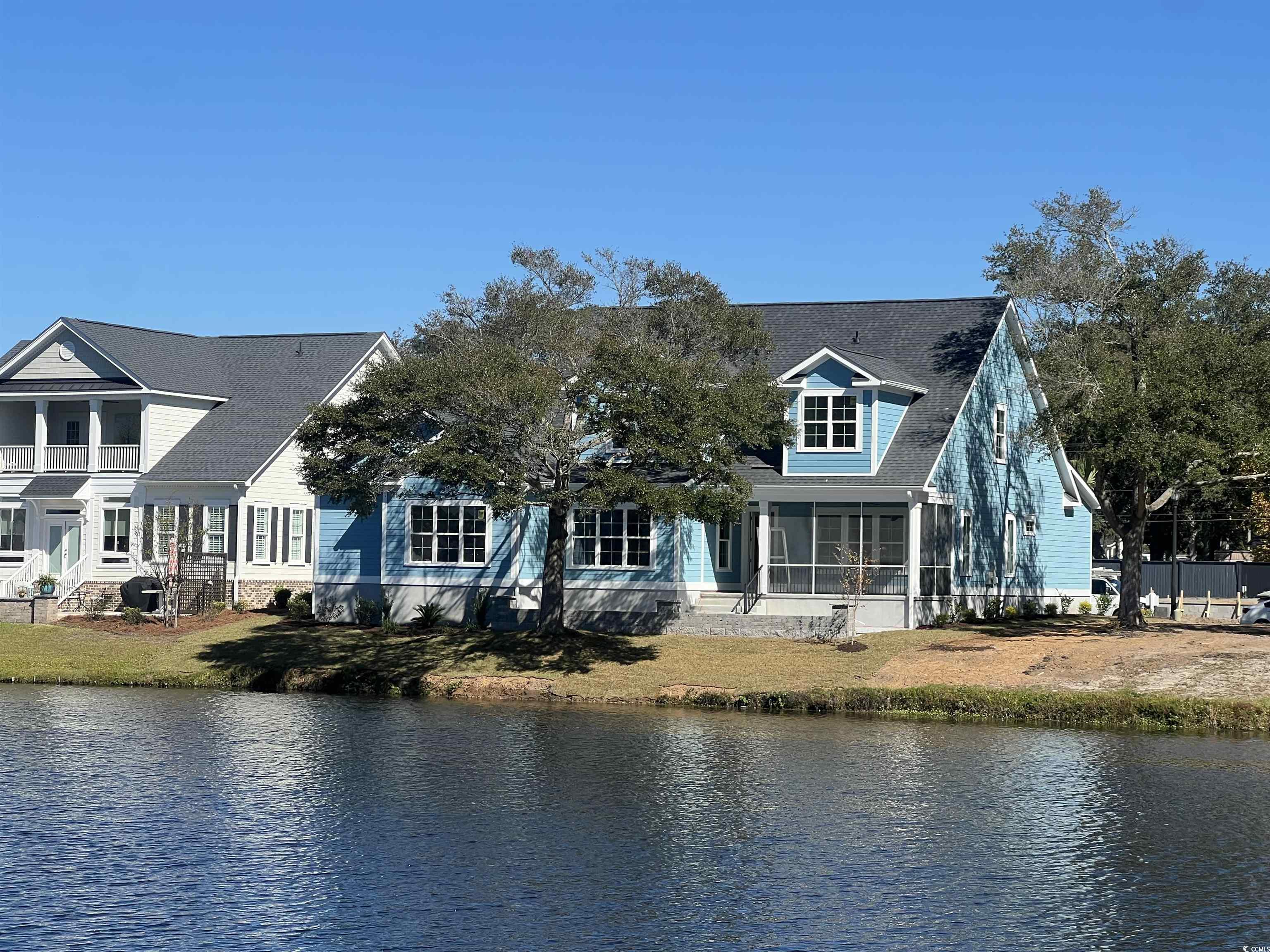 This beautiful home is located in the popular Cherry Grove Community of Charleston Landing with views of the Intercoastal Waterway. A large tree and lake views from your backyard and patio will make this the perfect place for your forever dream home. This home has 10' ceilings throughout the 1st floor. The first floor living area is 2124 heated sq ft and will consist of a split floor plan giving the owners privacy when entertaining family and friends. The spacious owner's bedroom with en suite bathroom and custom walk-in closet is located in the rear of the home with water views from each window. The second bedroom/office with a walk-in closet and attached full bathroom is located at the front left of the home. The family/great room with a fireplace is located on the back left side of the home with access to the screened porch where you can enjoy water view and beautiful sunsets. Enjoy the beautiful custom patio right off of the back screened porch. It is perfect for family gatherings and cooking out. The designated dining area has views of the lake and fountain. Large functional kitchen with 8' island and plenty of cabinets space. Just outside of the master suite is the large laundry room and drop area from the spacious 2 car garage. The second floor is 1440 heated sq ft. Bedroom #3 has a walk-in closet and en suite. Bedroom #4 a walk-in closet and shares the full bath with the Game/Bonus room. Both bedrooms #3 and #4 will have views of the water and calming fountain in the backyard. This community has a private swimming pool with lounge seating, a clubhouse facility with a partial kitchen for residents, a playground, basketball court, gazebos along the pond/lake and sidewalks and trails for walking. Just a short golf cart ride to the beach. Give us a call today to discuss!