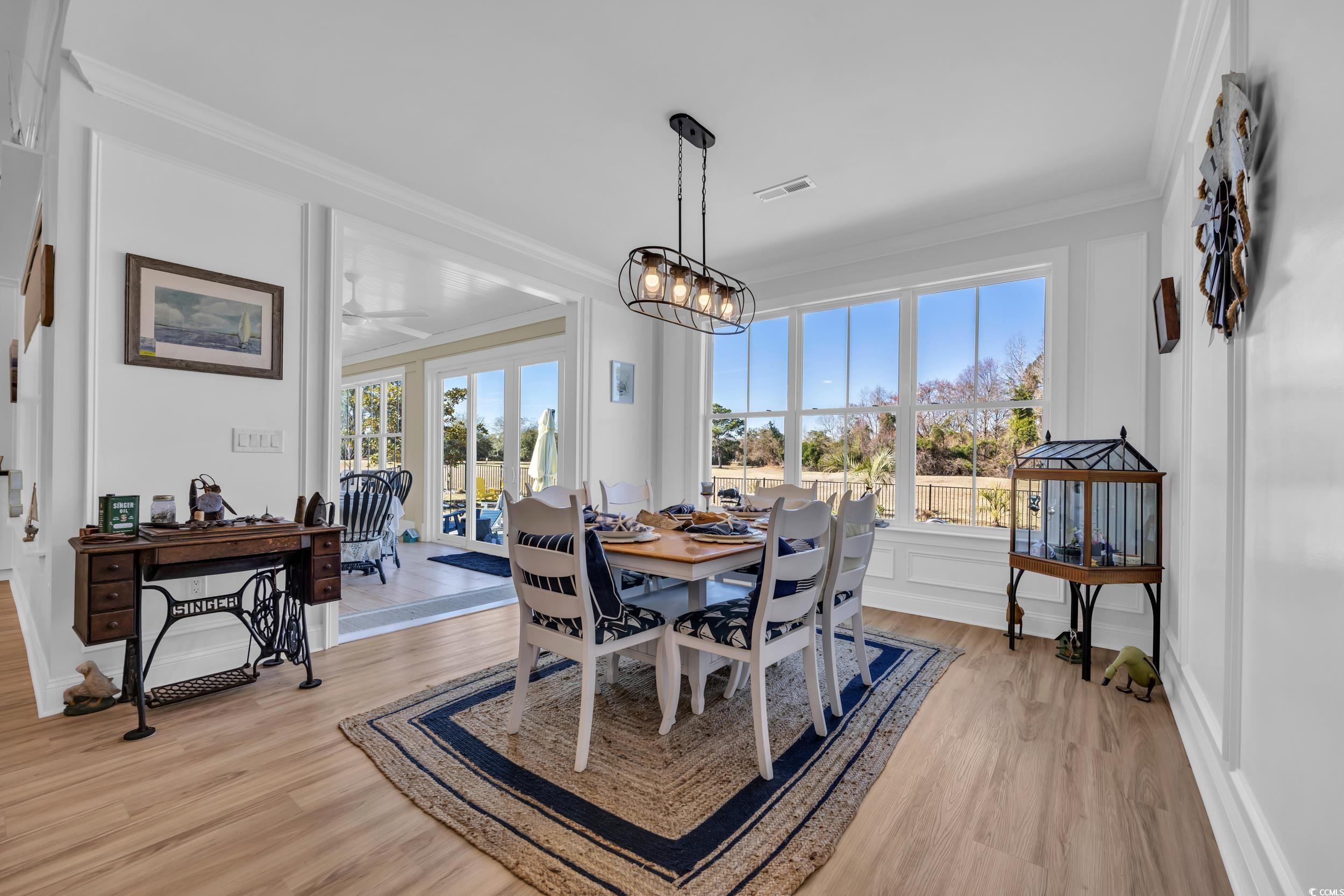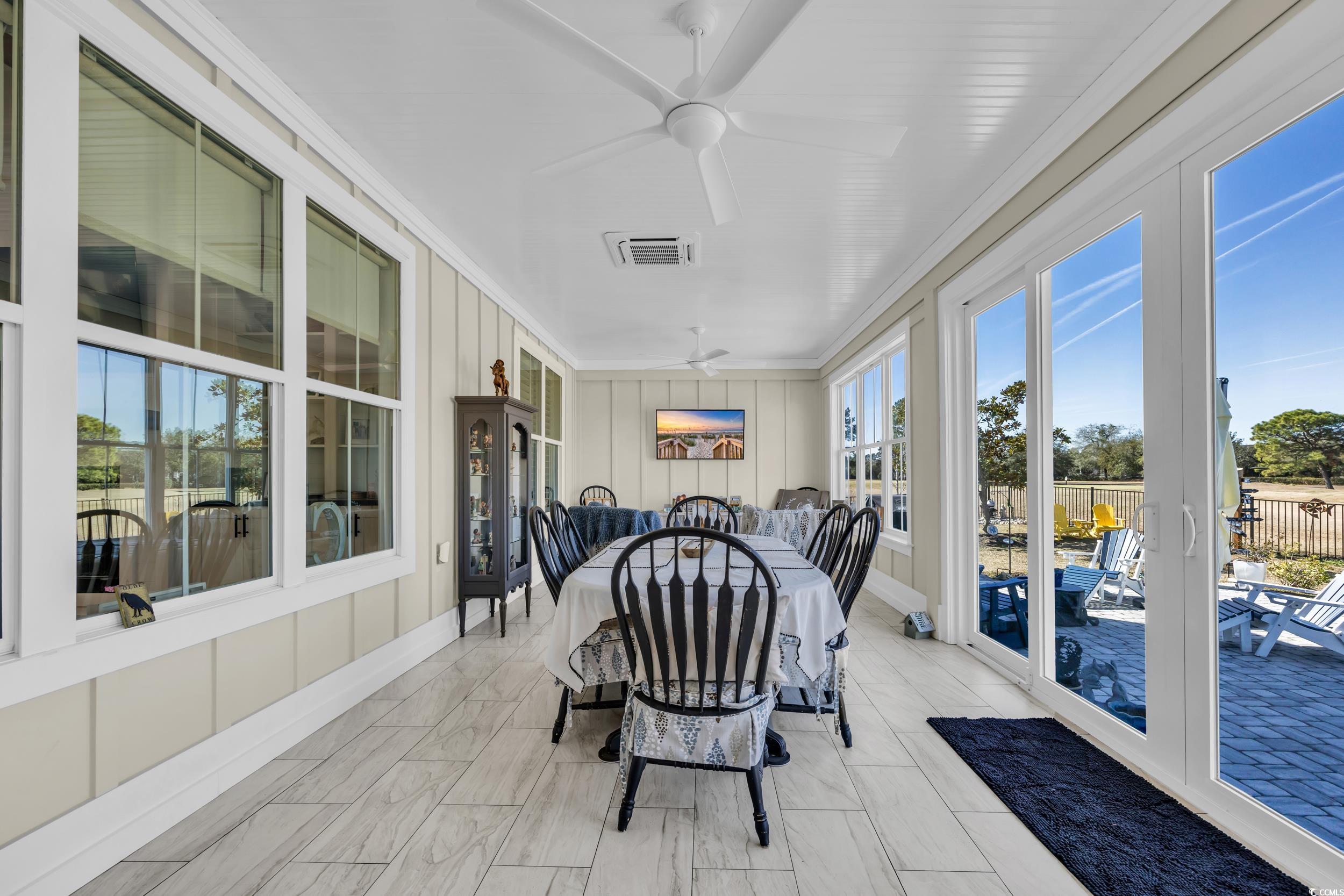 Immaculate Golf Course Home - Welcome to the epitome of modern living in this executive home located in the highly desirable Wild Wing Plantation. This Carolina low country inspired residence not only offers modern sophistication, and architectural elegance, but also an array of high-end features that cater to your every need. As you enter through the front door, you are immediately greeted by the open and spacious split floor plan. The living room has tall tray ceilings with beautiful rustic beams also featuring a gas fireplace and custom wooden built-in cabinets and shelving. The gourmet kitchen is truly a chef's dream boasting GE Cafe appliances in a crisp white finish including a unique double oven with French doors, 36” gas cooktop, gorgeous natural quartzite countertops, oversized 10’ x 5’ island that accommodates eight seats, ample cabinet space with soft-close features, and a large walk-in pantry. Prepare your favorite cocktail from the built-in beverage station equipped with a wine cooler for your favorite wine collection. The primary bedroom is a sanctuary of comfort with great natural light adorned with a tray ceiling and crown molding. The primary bathroom is designed with a double vanity with quartz counter tops, soaking tub, 6” tiled shower with glass enclosure. The 26’ x 12’ conditioned Carolina room is equally impressive with a 12’ sliding door that steps out to a custom paver patio with your very own private pool oasis with heat and cooling system, all overlooking a panoramic golf course view of the 9th green. The first floor has the primary suite and two additional guest bedrooms. Don’t forget about the spacious second floor that is situated with a private and spacious 14’ x 17’ guest bedroom, full bath, and a 26’ x 19’ flex space that is perfect for a family room, office, or fitness room. The features don't stop there. This home is equipped with dual HVAC units, tankless gas water heater, oversized two-car garage with epoxy floors and with a mini-split system, LVP flooring throughout, attic storage access, and plantation shutters and custom electronic blinds. This home's landscape features beautiful plantings, irrigation system, and fenced-in backyard. This home has it all. Don't miss the opportunity to own this stunning executive home that combines timeless elegance with contemporary convenience. The HOA offers resort style amenities including a clubhouse, fitness center, pool, tennis, playground, restaurant, etc. Wild Wing Plantation is conveniently located to Highway 501, award winning golf courses, CCU, HGTC, Conway Hospital, Carolina Forest, shopping, and dining. Schedule your private showing today! Square footage is approximate and not guaranteed. Buyer responsible for verification.