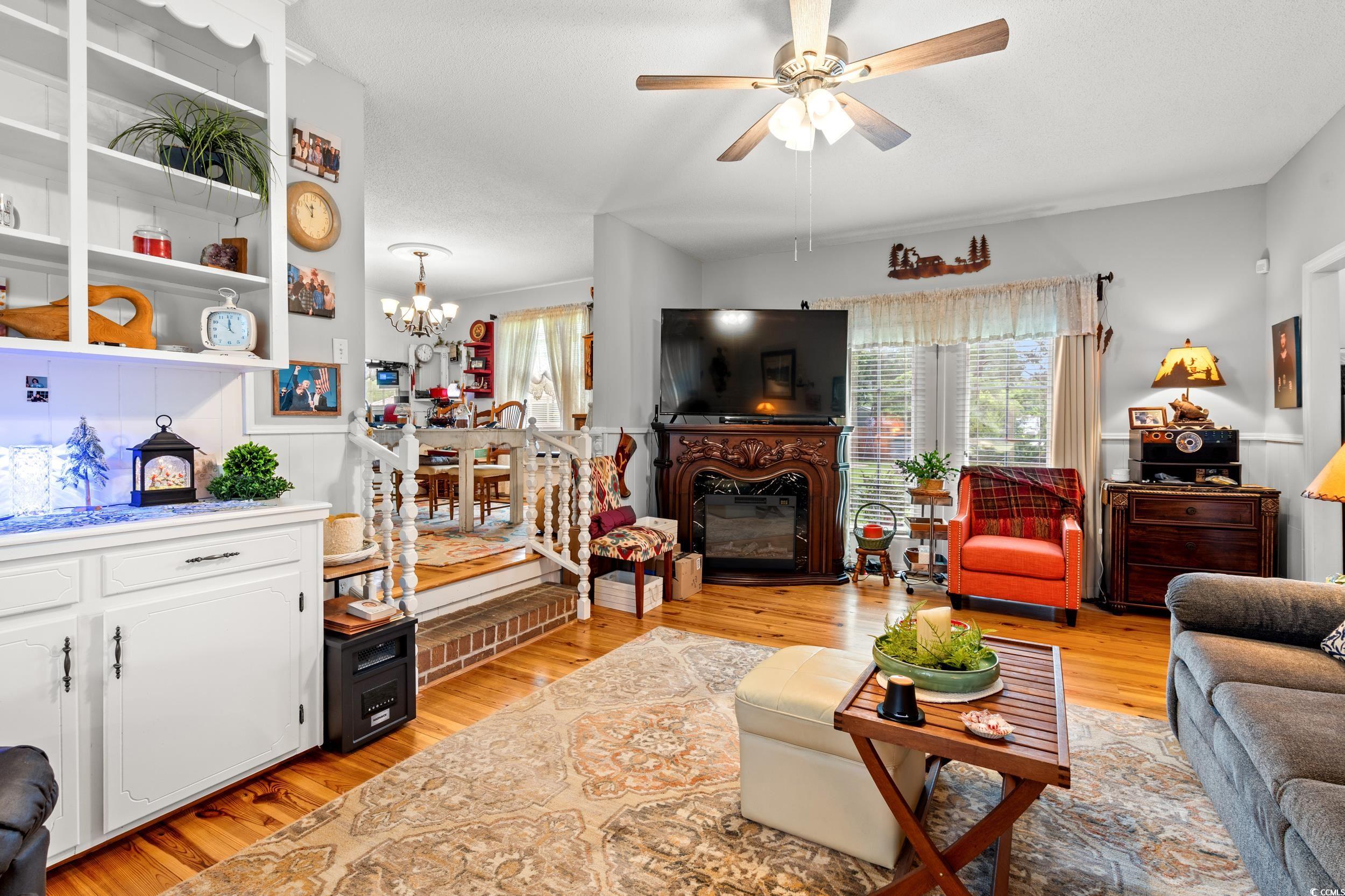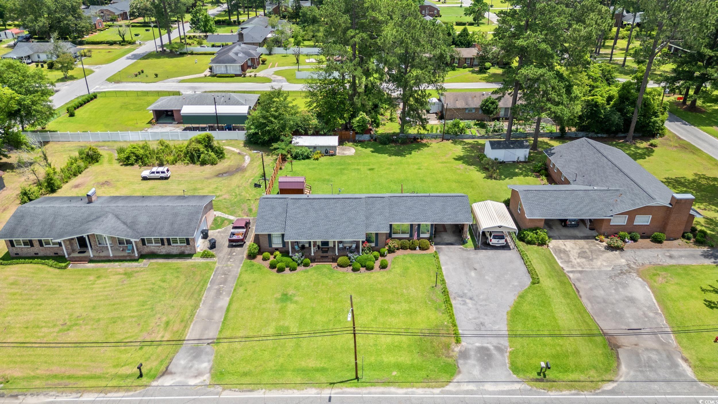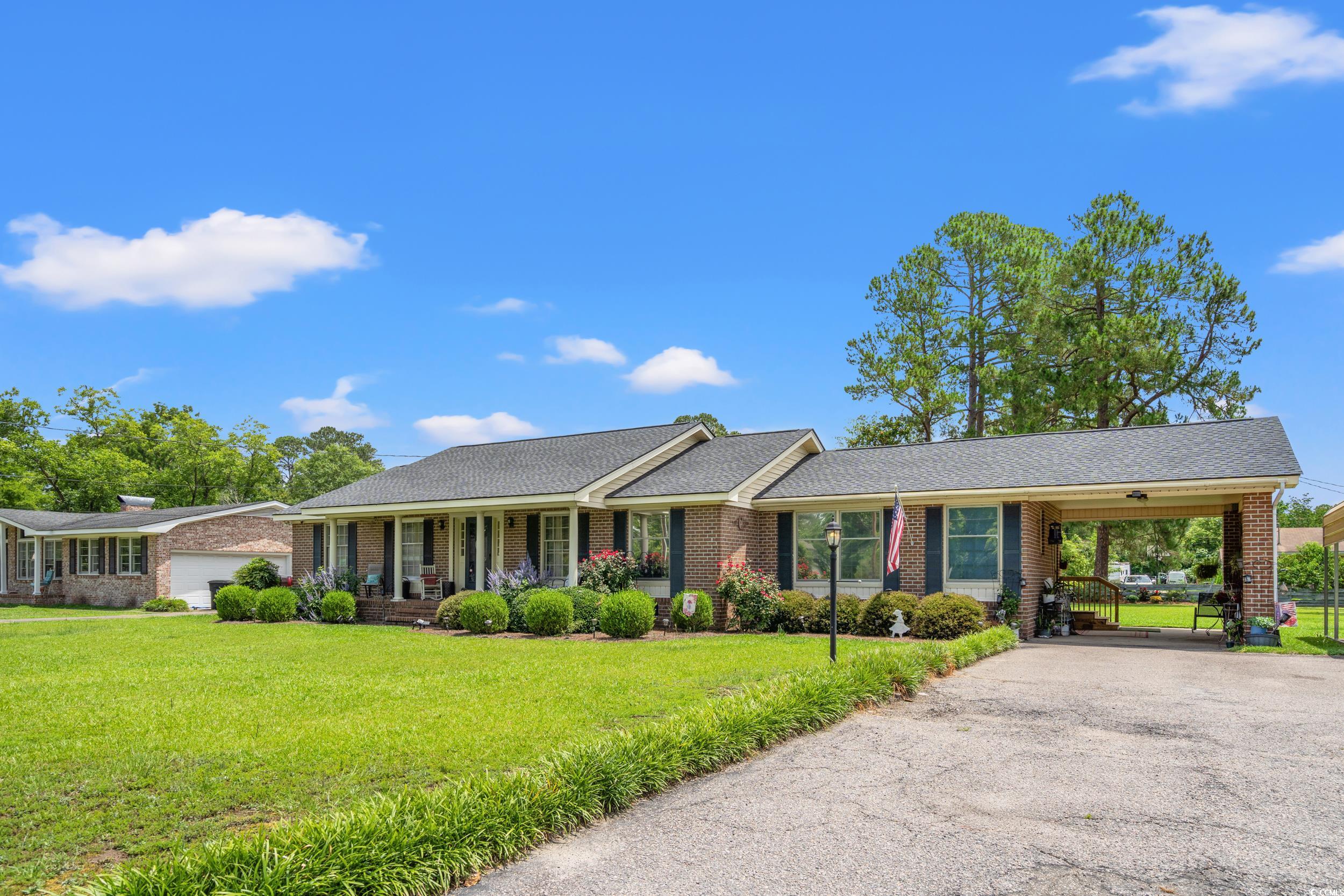Welcome to this charming 3-bedroom, 2-bath brick home situated on a spacious .44-acre lot in an established neighborhood within the city limits. Offering 1,909 square feet of comfortable living space, this well-maintained property features beautiful pine floors, a welcoming foyer, a cozy living room, and a versatile family/formal dining room combination. The kitchen is equipped with stainless steel appliances and a convenient laundry room. Outdoor living includes a rear patio perfect for relaxing or entertaining, along with a carport and outside storage for added convenience. Recent updates include a new roof, heat pump and ductwork installed in 2022. Interior paint, light fixtures, Refrigerator and dishwasher also updated in 2022. Located close to downtown shopping and dining in a prime location. Brown wood storage building, metal carport and curtains do not convey.