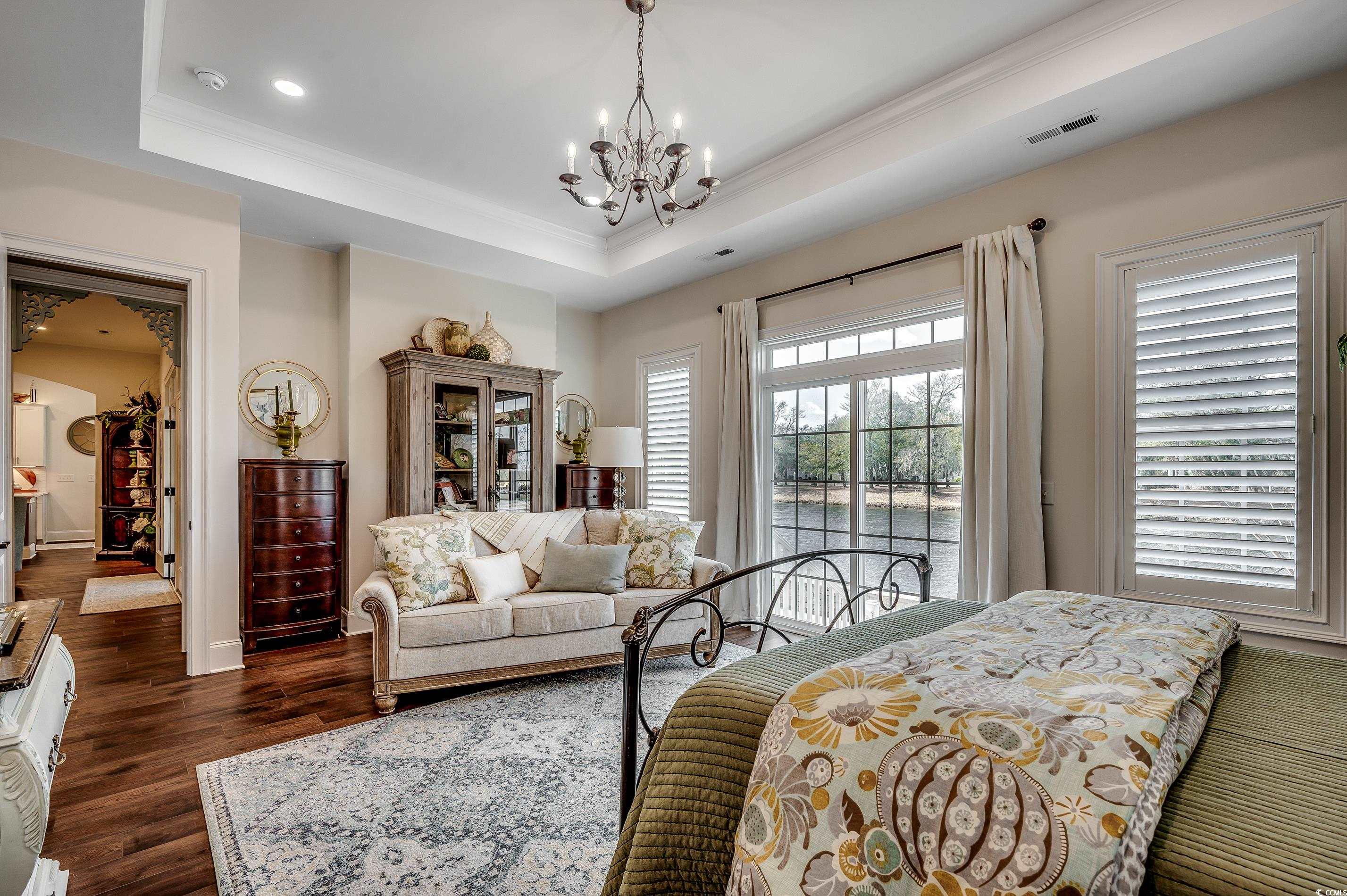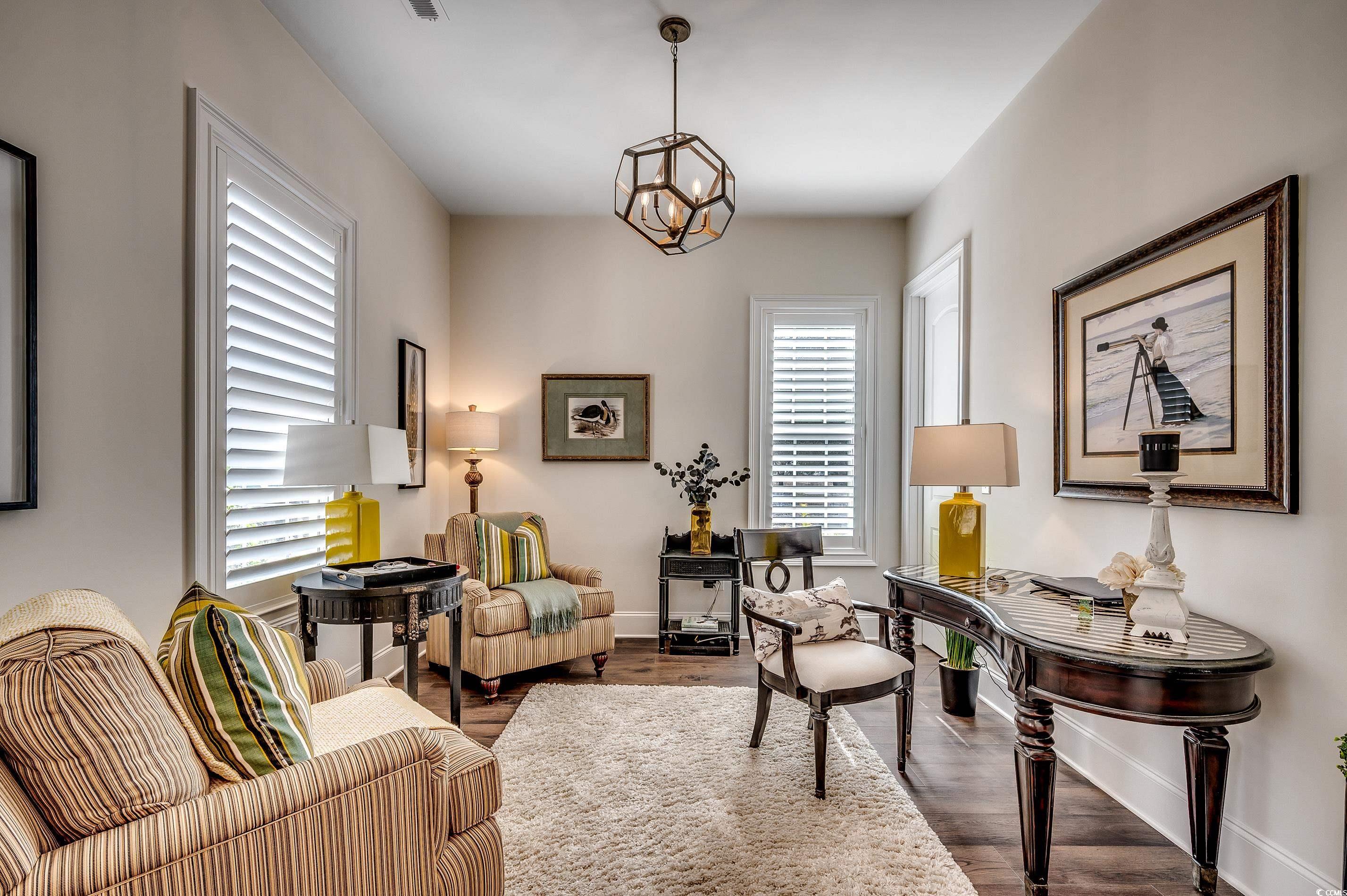 Southern Charm at it's finest! Step into timeless elegance with this 3,200+ sq. ft. custom-built home in the highly sought-after Charleston Landing community. Built in 2021, this property offers the perfect blend of charm and modern luxury. The main level features 10’ ceilings, 8’ doors, detailed trim work, and durable LVP flooring throughout. Enjoy a spacious open-concept living area with a cozy gas fireplace, and a chef’s kitchen complete with quartz countertops, gas stove, large pantry, and generous prep space. A dedicated study with a closet offers the flexibility of a 4th bedroom. The primary suite includes tray ceilings, a large walk-in closet, and a spa-like bath. Upstairs is perfect for guests, with a private living area, coffee bar, Trex deck, and a cozy reading nook overlooking beautiful Cherry Grove. Relax year-round in the sunroom featuring a gas fireplace and mini split system, all while overlooking a peaceful pond. The backyard is ideal for entertaining, with a large patio, ambient lighting, cookout area, and sea wall. Highlights: LVP flooring throughout Lawn irrigation system Southern-style front porch Attic with pull-down stairs Garage with polyurea floor coating Partially furnished. Located minutes from the beach, shopping, and dining. Owner financing available! Don’t miss this incredible opportunity—schedule your showing today.