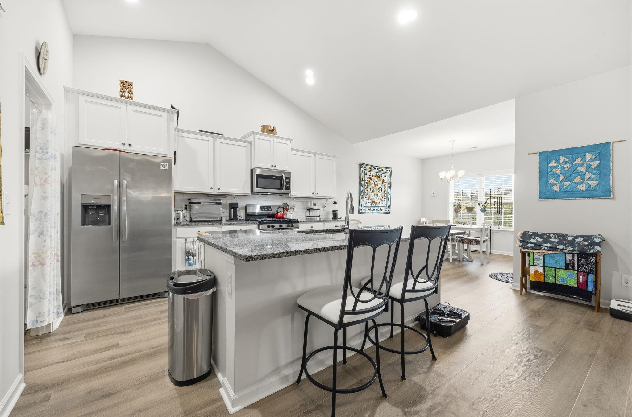 Welcome to Rivertown Row North, one of Conway’s most desirable communities. This single-level former model Abaco floor plan blends comfort, efficiency, and modern style with natural gas heating, cooking, and a tankless hot water system. The open-concept living area features vaulted ceilings, luxury plank flooring, and abundant natural light, creating a warm and inviting atmosphere. This 3-bedroom, 2-bath layout includes a spacious rear primary suite, granite countertops, a pantry, and a kitchen bar with seating. Additional interior upgrades include comfort-height toilets, upgraded carpet in the bedrooms, an insulated attic for improved energy efficiency, a full security system, and blinds already installed throughout the home. Exterior features include a painted and finished two-car garage, a dedicated laundry room, a yard irrigation system, a covered front porch, and a covered rear patio with an extended concrete pad that expands your outdoor living and entertainment space. This home offers fully cased windows, Aristokraft Birch shaker cabinetry, Frigidaire stainless steel appliances, and high-performance GAF architectural shingles with a roof warranty. Experience modern living, thoughtful design, and everyday convenience in the heart of Conway.