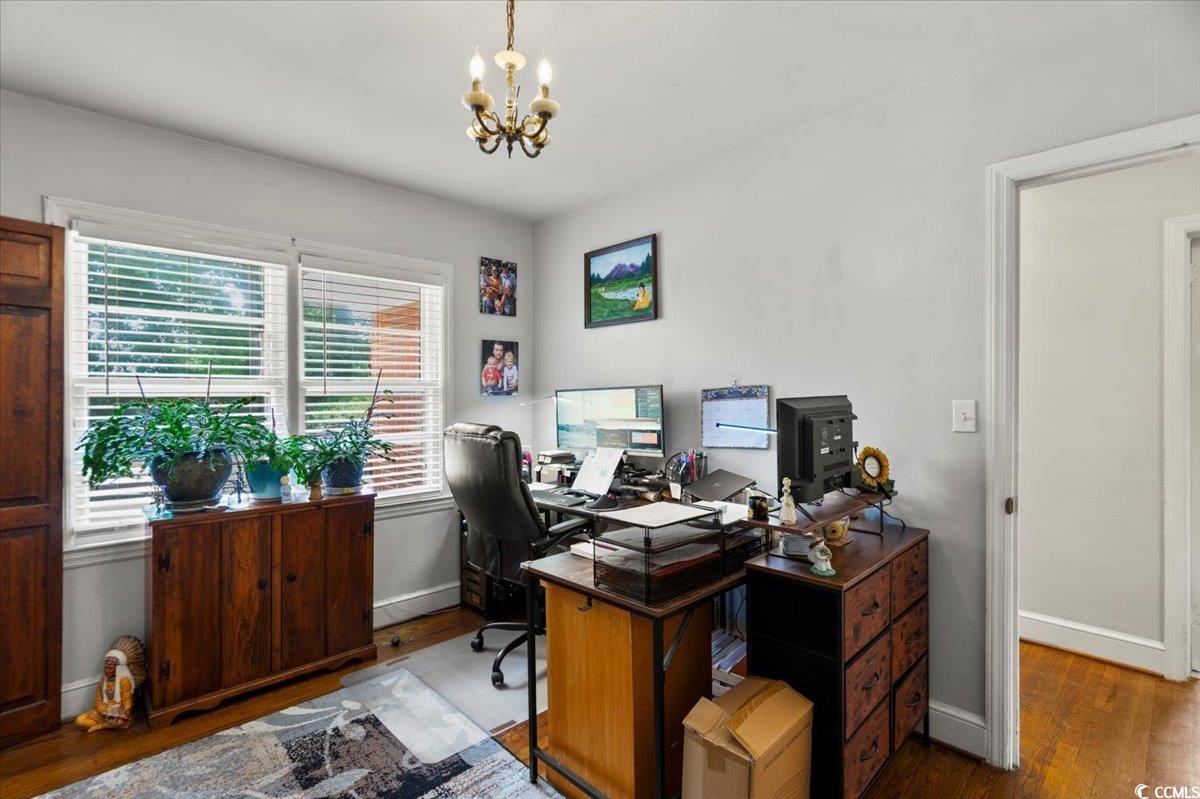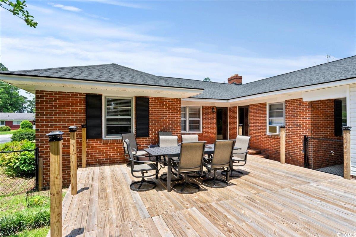 Back on MARKET! Buyer financing fell through. Discover a rare opportunity to own a beautifully maintained 3-bedroom brick home on nearly half an acre, ideally situated on a spacious corner lot in one of downtown Marion’s most established and sought-after neighborhoods. This home combines timeless character with modern convenience, all just 45 minutes from Myrtle Beach and moments from local shopping, dining, and parks. From the moment you arrive, the wide horseshoe driveway and two-car carport set the stage for comfort and functionality. Inside, a thoughtfully designed layout offers a spacious formal living room with a fireplace, a formal dining room perfect for entertaining, and a large great room ideal for family gatherings. The kitchen features custom cabinetry, granite countertops, and ample workspace to satisfy any home chef. Original hardwood floors run throughout most of the home, adding warmth and charm. A built-in security system is already in place for peace of mind. The generous lot includes a large backyard and an attached workshop with a roll-up door—ideal for storing golf carts, motorcycles, tools, or lawn equipment. Just down the street, you'll find a popular midtown park complete with tennis courts, a playground, and a walking path. Whether you're looking for a peaceful place to call home or a spacious property with an unbeatable location, this one checks all the boxes. Don't miss your chance to own one of the largest residential lots in Marion. Homes in this neighborhood don’t last long—schedule your private showing today and make this beautifully crafted home yours.