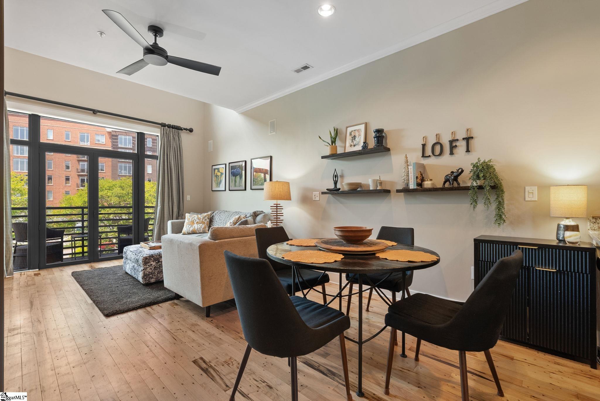 Situated within the prestigious Poinsett Corners, 101 W. Court St., Unit 224, offers an unparalleled living experience at the epicenter of downtown Greenville. This sophisticated one-bedroom loft is defined by an open-concept floor plan where soaring ceilings and expansive windows invite an abundance of natural light to illuminate the rich hardwood floors. The kitchen serves as a centerpiece for both daily life and entertaining, featuring premium granite countertops, high-end stainless steel appliances, and a sleek peninsula with bar seating that transitions seamlessly into the main living area. For those seeking an outdoor connection, a private balcony provides an intimate space to immerse oneself in the city's dynamic energy. The architectural narrative continues on the second level, where an airy loft houses a sun-drenched primary suite. This private sanctuary is complemented by a spacious walk-in closet and a refined full bathroom featuring a custom-tiled shower and designer finishes. Thoughtfully designed for modern efficiency, the residence also includes a dedicated laundry area conveniently located on the upper floor. With a premier location that offers immediate walkability to Main Street, the Peace Center, and the Swamp Rabbit Trail, Unit 224 represents a rare fusion of high-end luxury and effortless access to Greenville’s finest dining, retail, and recreation.