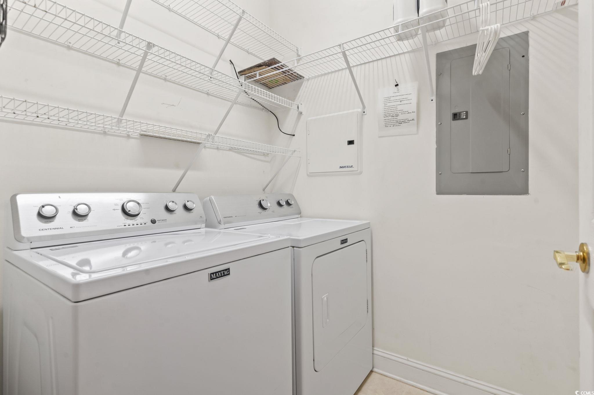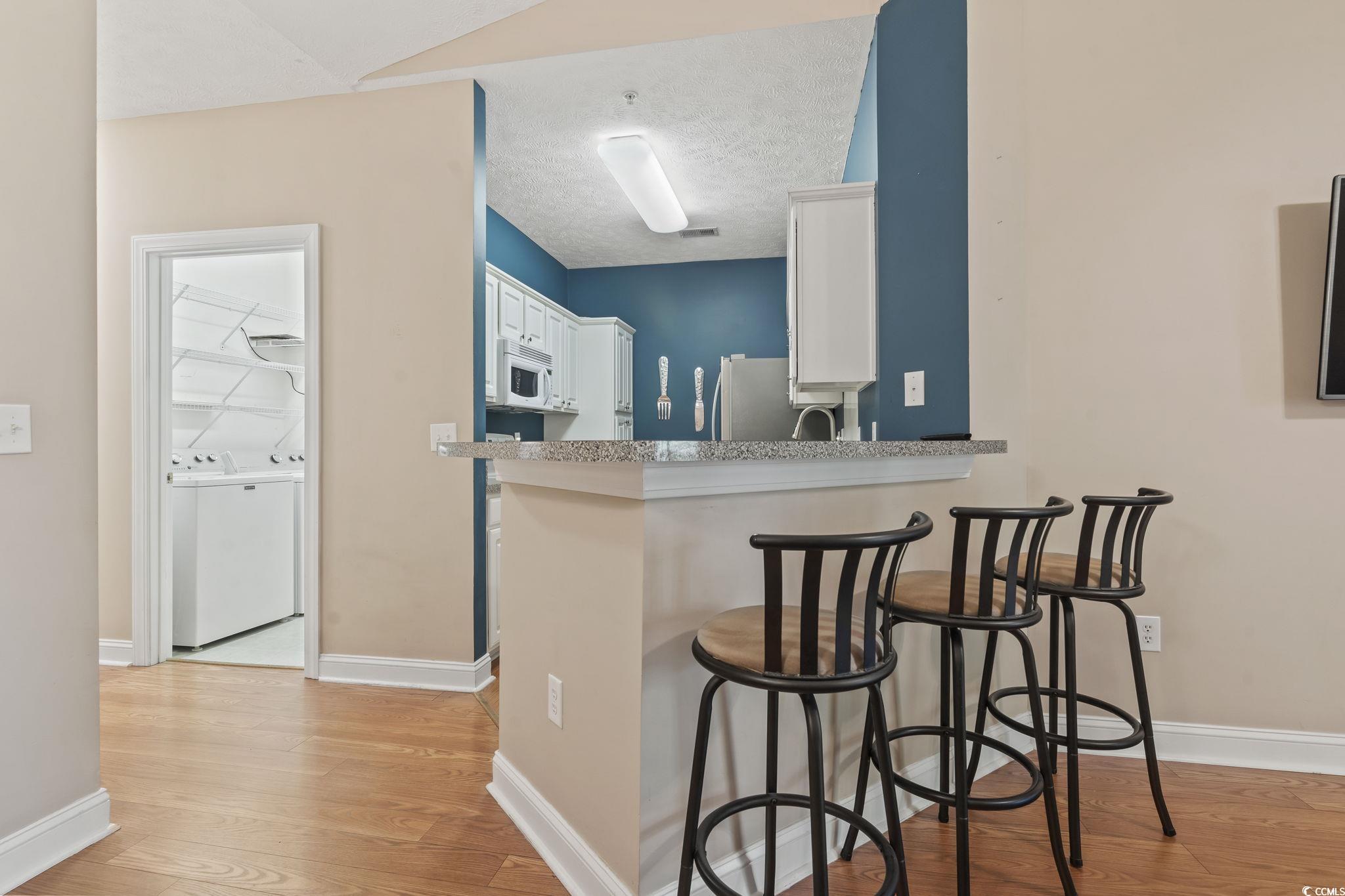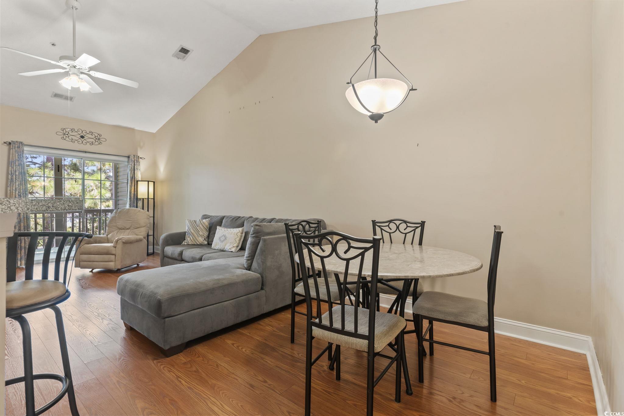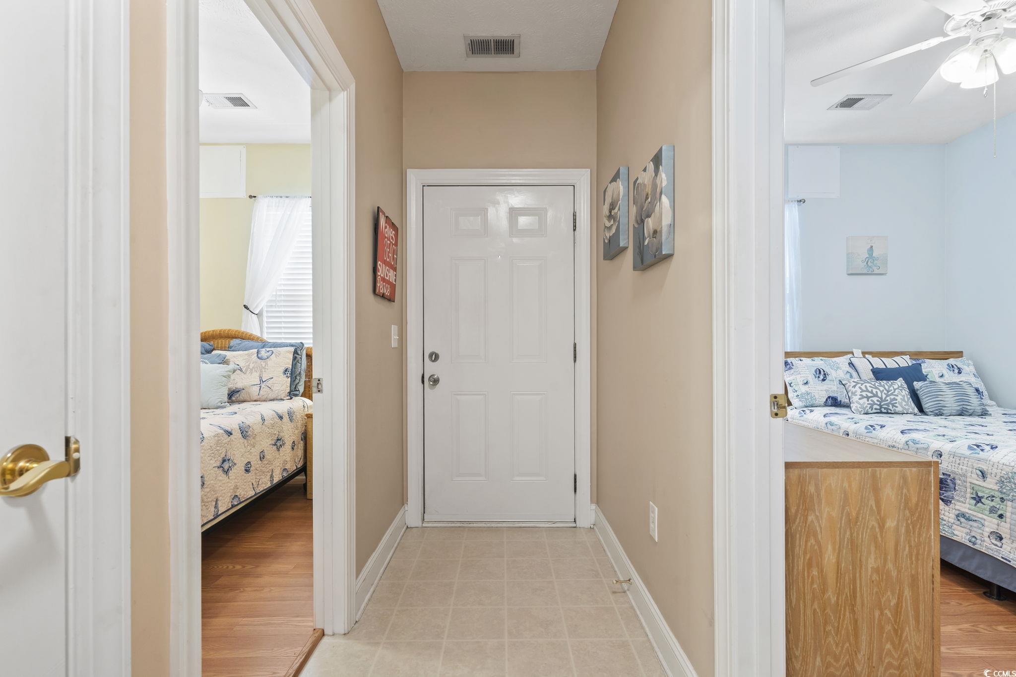 Welcome to this spacious Top-floor 3-bedroom, 2-bath condo, perfectly designed for entertaining with its open floor plan and vaulted ceilings. Natural light pours in through the sliding glass doors, which lead to a screened balcony—ideal for relaxing with your favorite beverage. This move-in-ready unit comes fully furnished and includes all appliances, including a stainless steel refrigerator that’s just three years old. The HVAC system is only two years old, and the hot water heater is three, offering peace of mind and efficiency. Each bedroom features ceiling fans for added comfort, and an exterior storage closet provides a convenient spot for beach gear, fishing equipment, and more. Located just 10 minutes from the airport, Coastal Grand Mall, and a wide array of restaurants—and only 17 minutes to the beach—this condo is a fantastic choice for a primary residence, investment property, or weekend getaway.