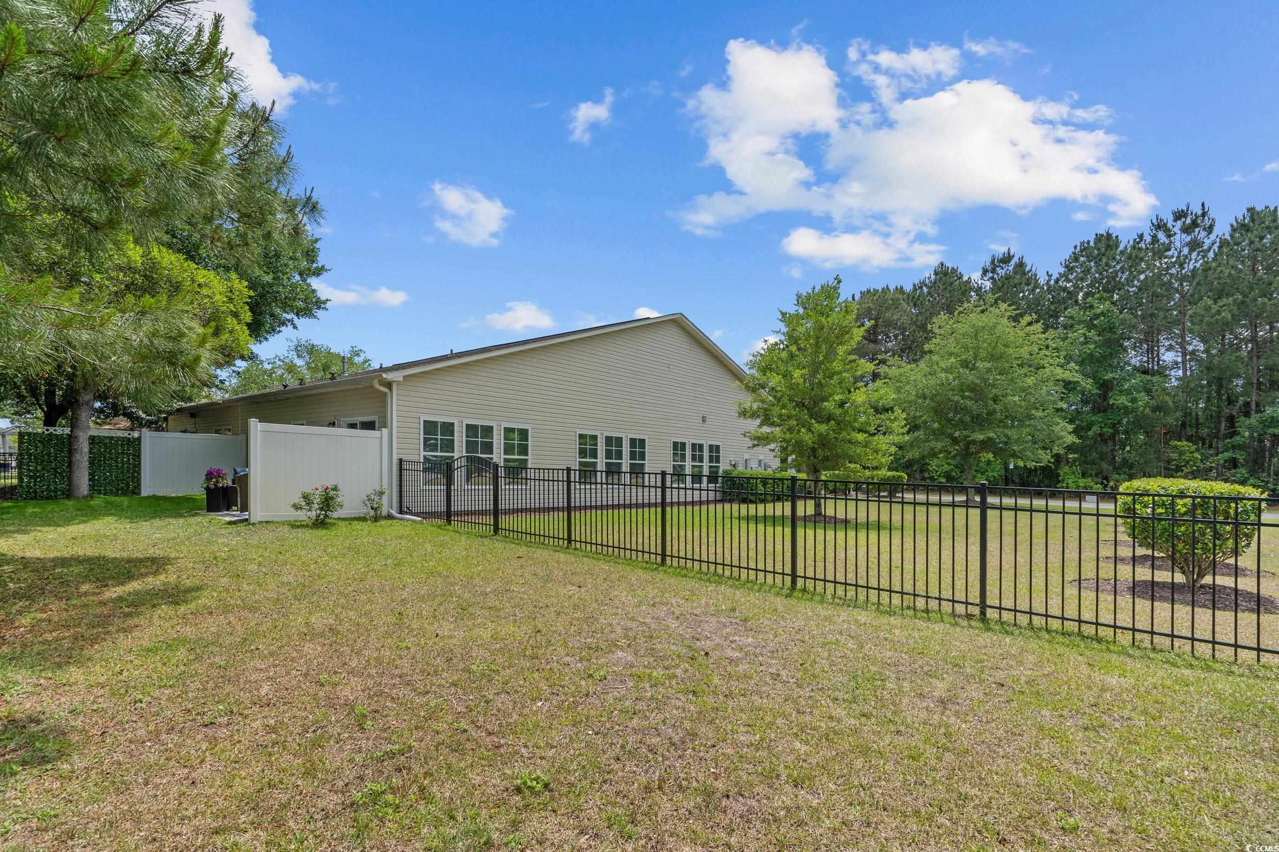 NEW ROOF JULY 2025. Nestled within the highly sought after community of Berkshire Forest, this well maintained semi-detached home offers comfort, style, and convenience, making it an exceptional choice for your next residence. This single level home is perfect for a low maintenance lifestyle! The HOA takes care of the lawn, so you can spend more time enjoying the beautiful surroundings and amenities. The HOA also includes two pools, tennis and pickle ball courts, dog park, walking trails and more. Enjoy the benefits of a single family home with a fully fenced in yard (installed 2022), with attached low maintenance living! The backyard provides privacy, bordered by your own trees, so you can savor the serene beauty and seclusion that the lush landscaping provides. Situated on a third of an acre corner lot, you will have the perfect spot for hosting gatherings, playing a game of cornhole, or simply basking in the South Carolina sun. Benefit from a spacious two-car garage with transom windows, offering ample storage and convenience for your vehicles, as well as a large driveway with four additional parking spots. This home features plenty of natural light, elegant hardwood flooring throughout the main living areas, tile in the bathrooms and laundry room (installed 2025), plush carpet in the bedrooms (2025), and tastefully painted ceilings and walls. At the heart of the home, the kitchen includes beautiful quartz countertops (2022), a tile backsplash, pantry, breakfast bar, and a dining area nearby. The open floor plan seamlessly flows from the kitchen to living room area, with an additional Carolina Room in the rear of the home. The primary suite is also located in the rear of the home, facing the lush landscaping, and features a tray ceiling and a ceiling fan. The ensuite bathroom is equipped with two separate vanities, a large walk-in closet, separate toilet, linen closet, garden tub and walk-in shower. The home includes two additional bedrooms, each with ceiling fans, and a full guest bathroom with a tub/shower combo. Additionally, the property boasts a spacious laundry room, a Taexx system for integrated pest management (IPM) and a lawn irrigation system. As a resident of Berkshire Forest, you'll enjoy access to a wide array of resort-like amenities. Take a dip in the pool, float along the lazy river, or enjoy a game on the tennis, basketball, and pickleball courts. Embrace leisure with the bocce pit, dog park, and fully-equipped fitness center. Experience easy access to schools, the airport, top-tier golf courses, and the beautiful Atlantic Ocean. This move in ready home provides the ideal blend of comfort, convenience, and lifestyle amenities. Whether you're seeking a permanent residence or a second home getaway, this property offers everything you need. This beautiful property is truly a gem! Schedule your tour today!