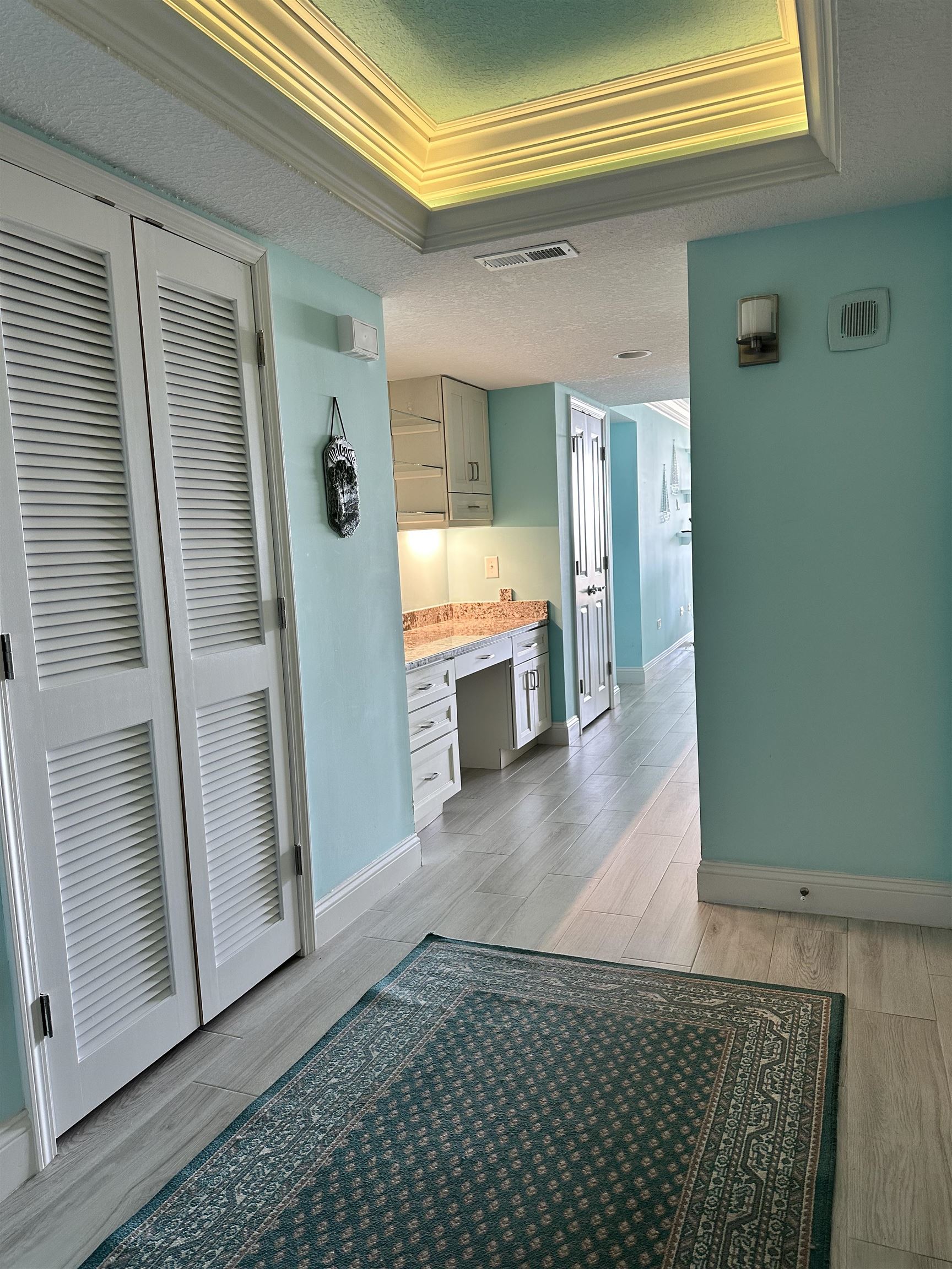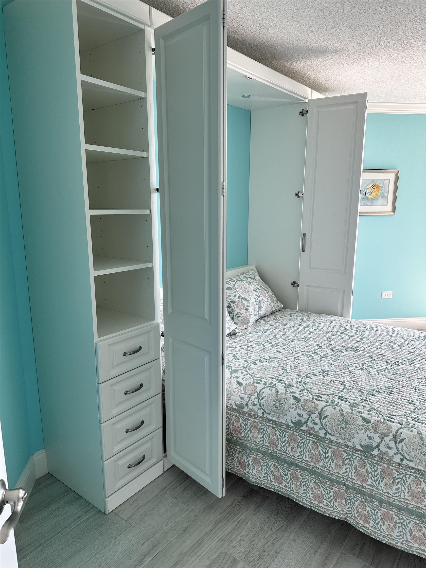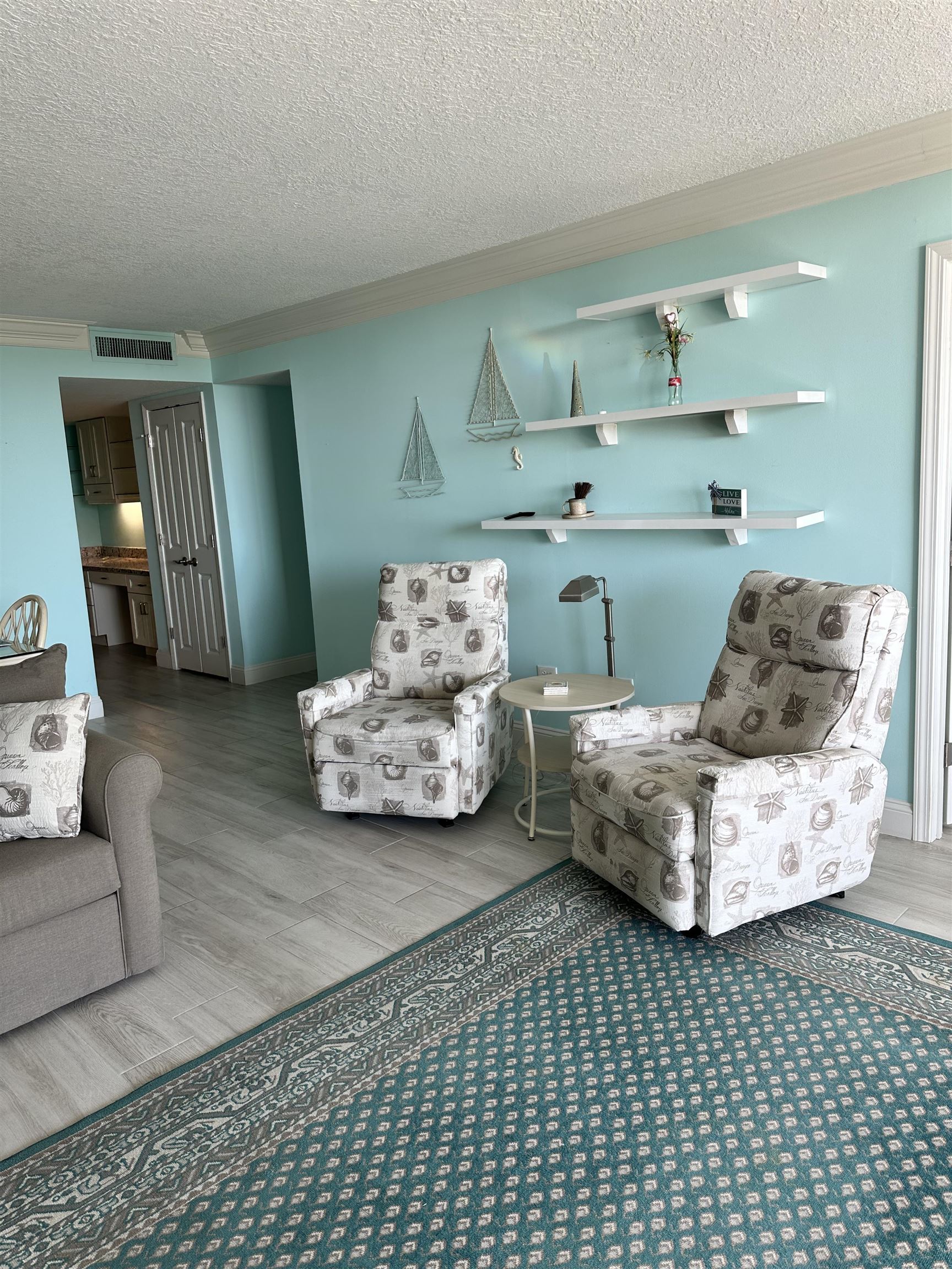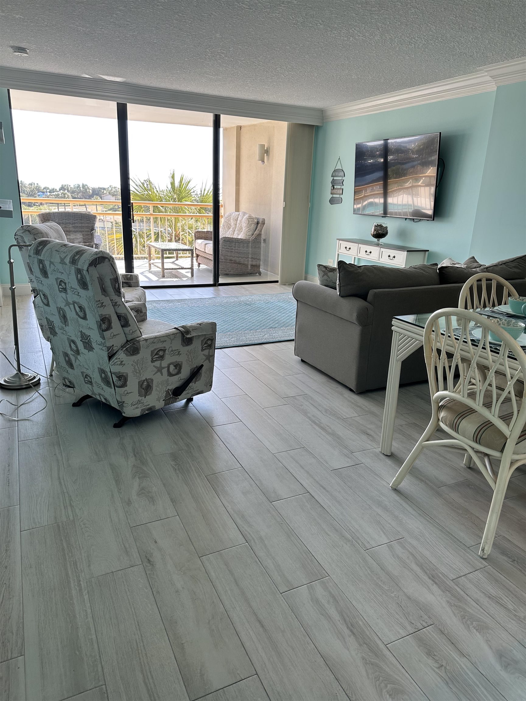 Check out the gorgeous views of the ocean and Ocean Creek from the second floor of Tower South! EE2 was totally and completely renovated in 2018 with new granite throughout, all new cabinets and tile floors, a lighted tray ceiling in the entrance way and beautiful crown molding throughout. Master bedroom has a 50” TV on the wall, a king bed and a new balcony door with screen so you can be lulled into peacefull sleep by the ocean waves. The second bedroom has a pull down queen size Murphy Bed with a comfy upgraded mattress as well as a pull down desk, 6 drawers, a file drawer and shelves for decorating. Another 9 foot granite countertop desk enlarges the hallway and offers lots more storage with cupboards, drawers and places to add your own decorations. The livingroom has a 65” TV on the wall, 2 recliners and the loveseat pulls out into a twin bed. A new furnace was installed in December 2025. All appliances work beautifully, the refrigerator was purchased new in 2022, and the washer/dryer in 2018. Enjoy your ocean view with lots of palmtrees and greenery while you rest in one of the plush thick cushioned chairs with adjustable backs or in the matching glider/rocker love seat on the balcony. This condo was not a rental and the owners occupied it less than 50% of the time so the unit and contents are in very good and clean condition. Its well equipped to start you out with dishes, pots and pans, and silverware. Bring your own bedsheets, blankets and towels. Everything you see in the pictures goes with this unit. Come and make memories and friends in the South Tower at Ocean Creek Plantation! Immediate occupancy.