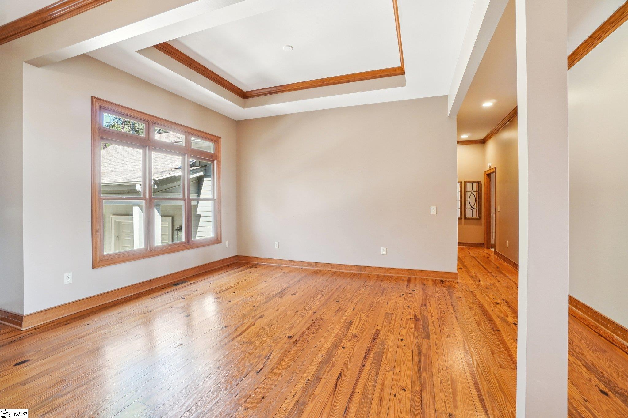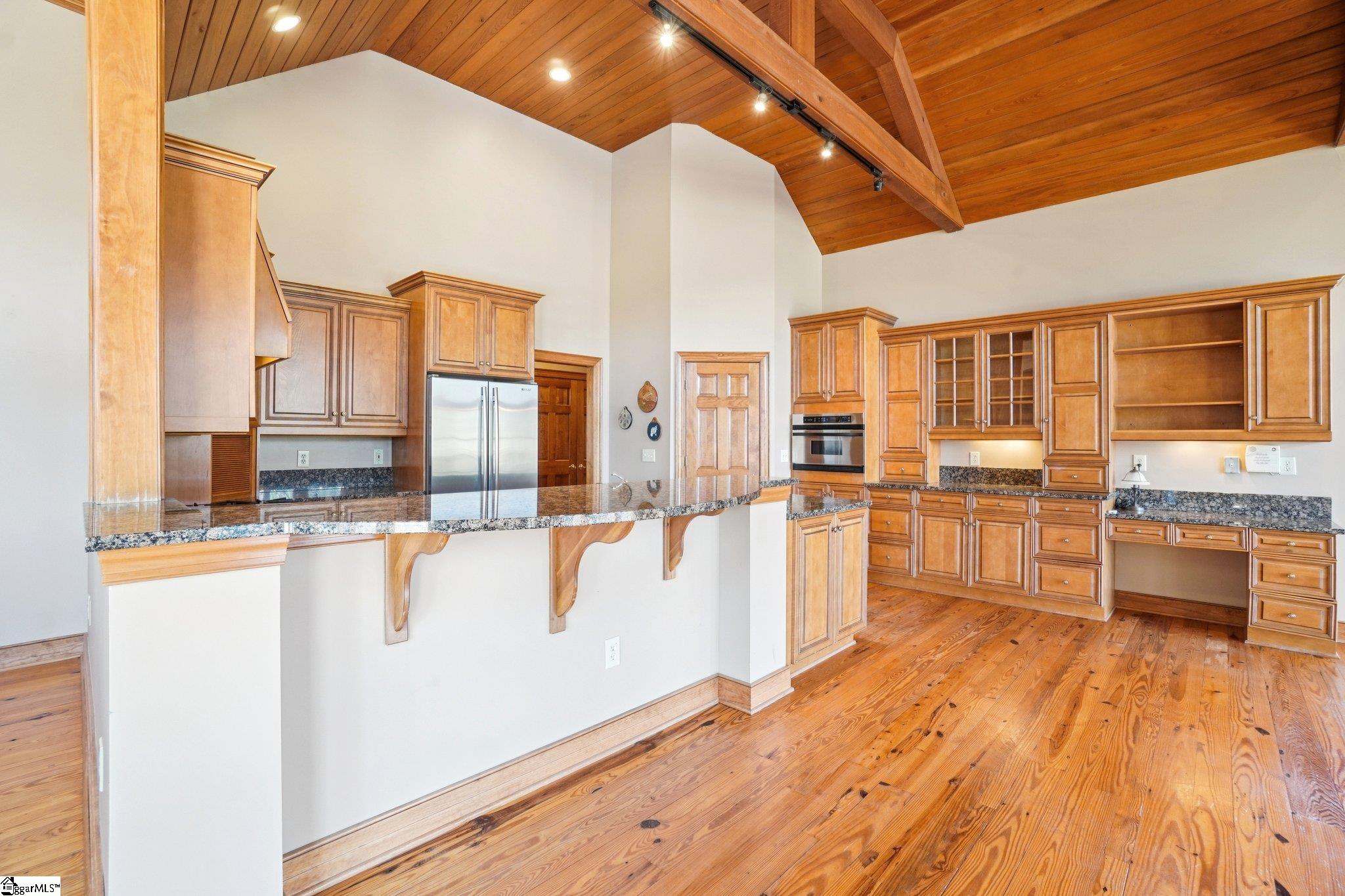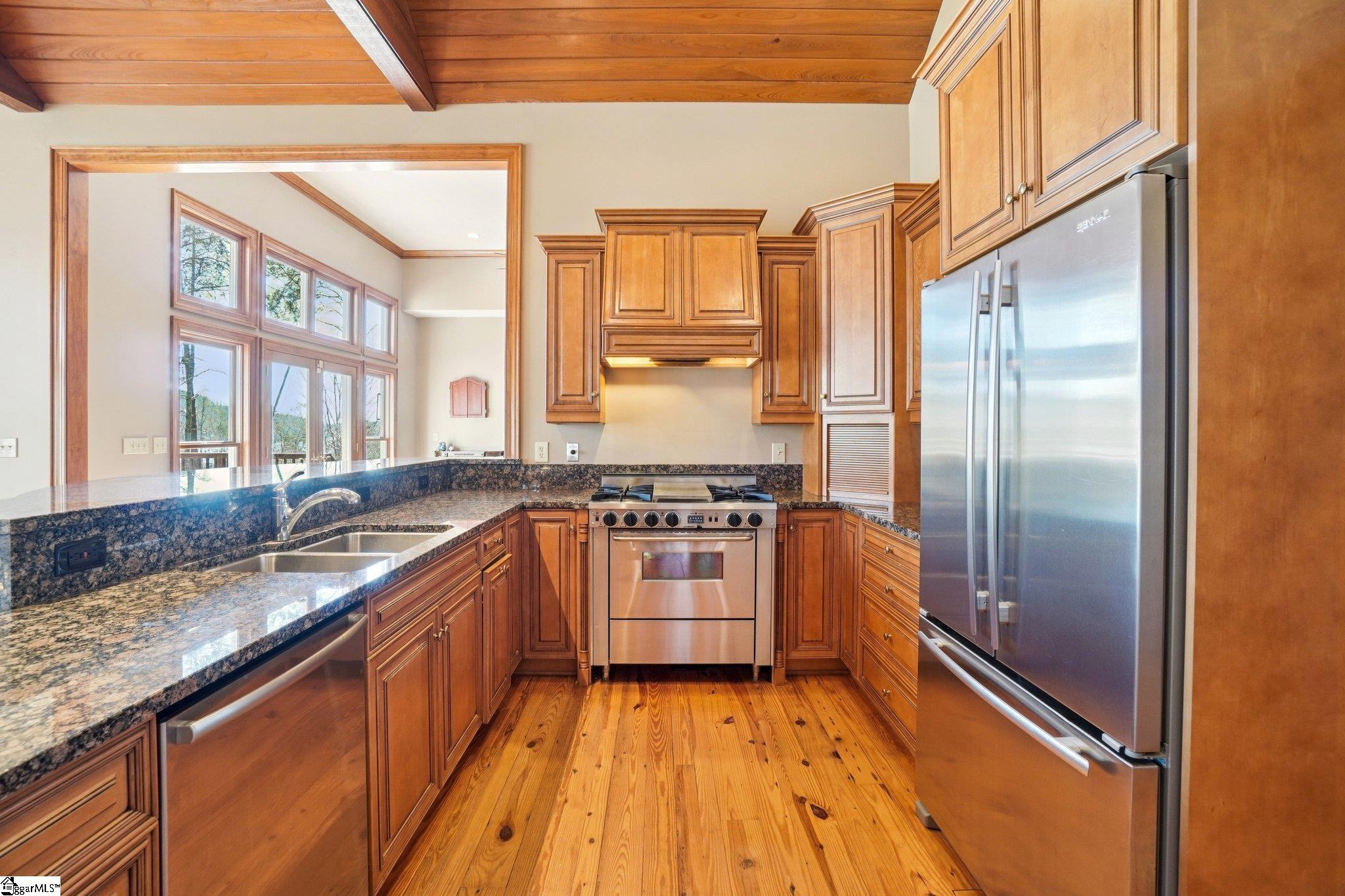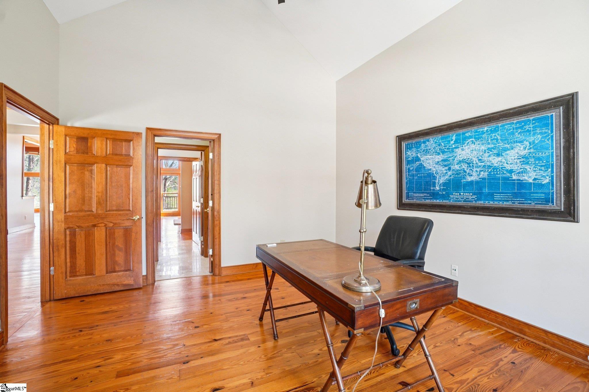 Nestled among the trees on a corner lot, this charming Vineyards residence offers picturesque views of a sprawling meadow and distant, seasonal lake vistas. The home is ideally suited as a primary residence, a weekend getaway, or a temporary retreat during construction. Designed entirely on one level and spanning over 3,400 square feet, the layout provides effortless accessibility and comfort. The open floor plan creates an inviting atmosphere, while each of the four bedroom suites enjoys its own sense of privacy. Notably, one suite is currently utilized as a dedicated office, adding flexibility to the home’s design. Upon entering, the office or bedroom is immediately to the right, offering tranquil views into the private courtyard. To the left, an informal dining area seamlessly transitions into a spacious great room. This central gathering space features a striking floor-to-ceiling stone fireplace and an abundance of windows that bathe the room in natural morning light. The adjacent kitchen is equipped with a walk-in pantry and a cozy breakfast nook, both of which anchor the left side of the open living area. French doors open onto a large deck, making this space perfect for entertaining guests. Overhead, a cathedral wood ceiling with beam accents adds warmth and character, complemented by rich heart pine flooring below. The master suite is discreetly located on the far-left side of the home, ensuring privacy and tranquility. The suite includes a welcoming bath, generous walk-in double closets, and a private deck for peaceful relaxation. Close by, an oversized laundry room with extensive cabinetry and a sink provides ample storage and utility. This area leads conveniently to the mudroom entry and the bonus of a three-car garage. At the opposite end of the house, two additional bedroom ensuites each feature walk-in closets, offering comfort and privacy for family or guests. The property enjoys an advantageous location near the lake house restaurant, community docks (available for lease), and the main entrance gate. This provides easy access to nearby towns and other Cliffs clubs, enhancing both convenience and community engagement. Certain items, such as a grill in the garage and select furnishings, are negotiable. This home presents exceptional value with entry-level pricing for the community and a wealth of desirable features.