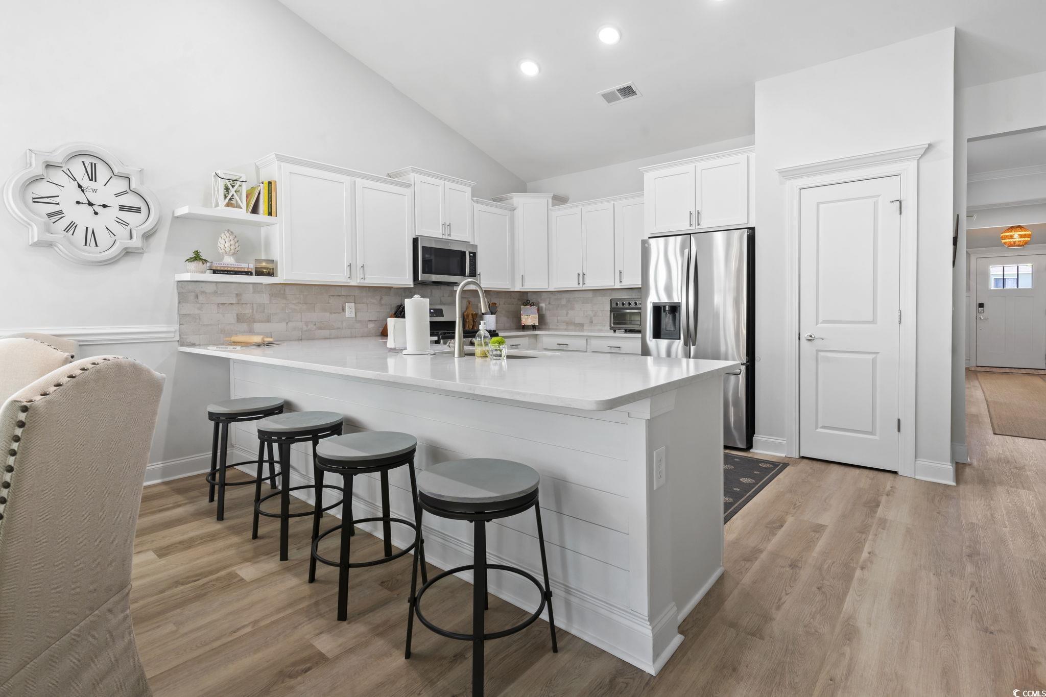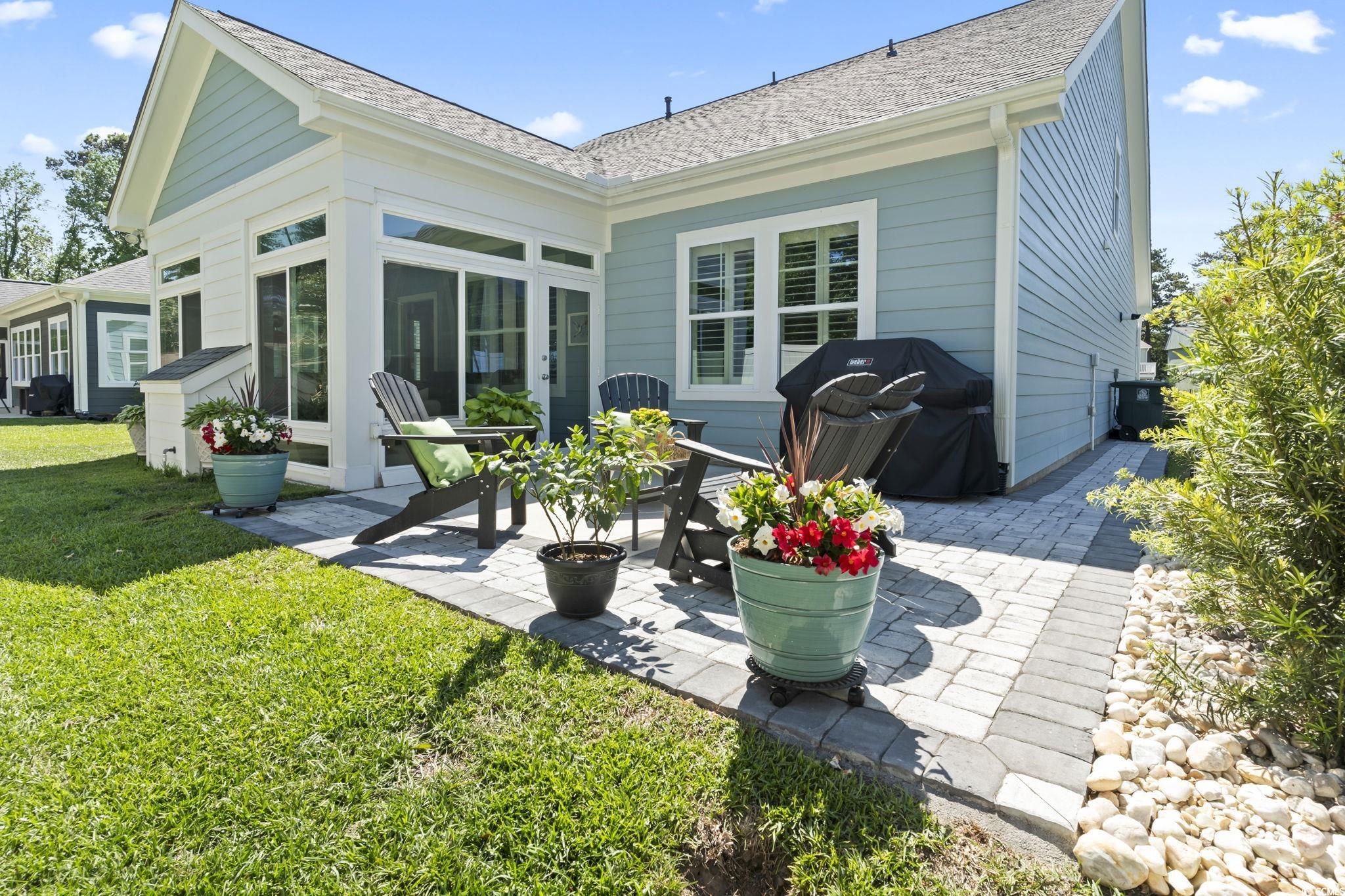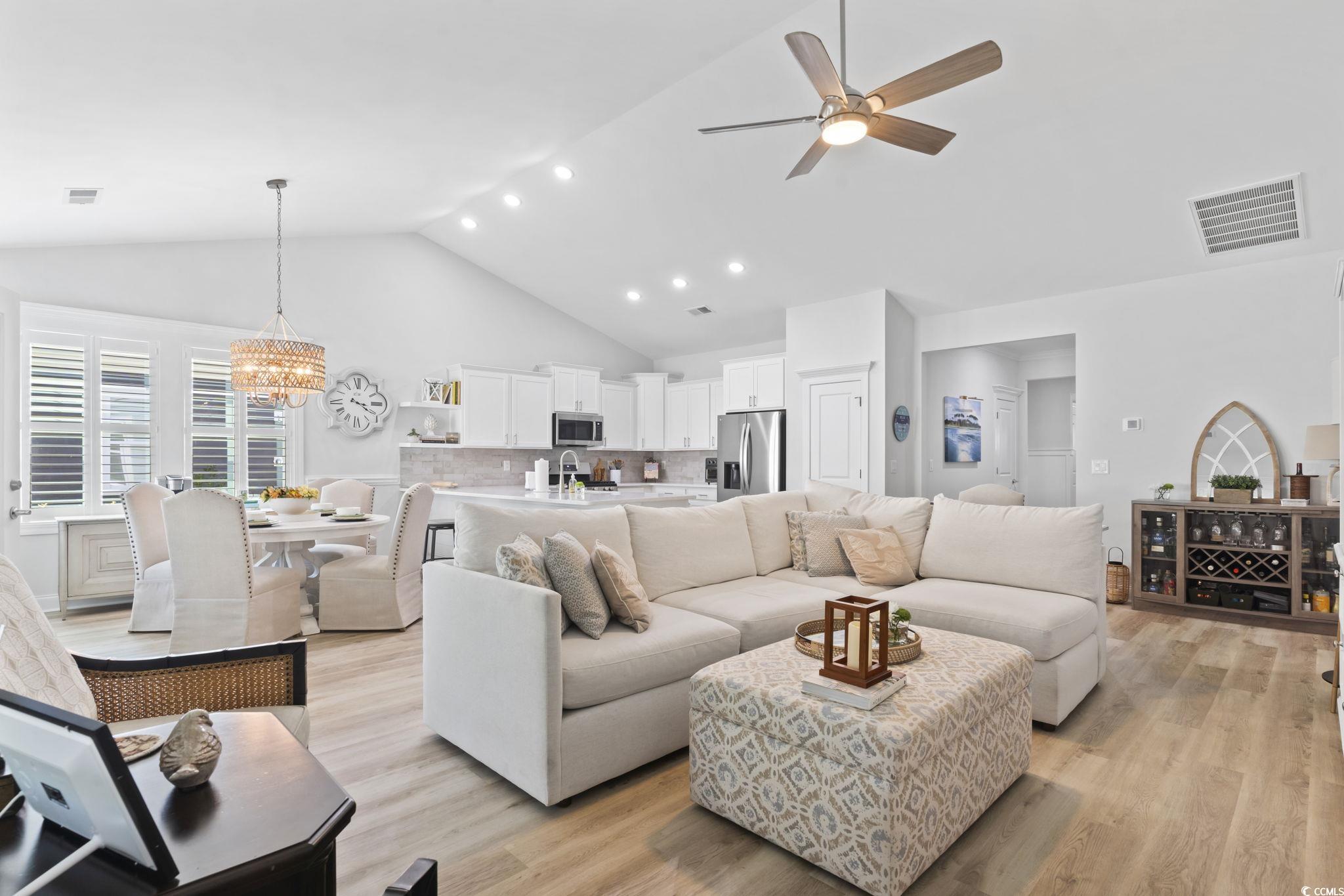 Experience the epitome of coastal living in this exquisite two-story retreat, featuring 4 bedrooms, 3 baths, and a generous two-car garage, stunning custom climate controlled sunroom with stunning shiplap gas fireplace and a wood mantel focal point—all nestled within the sought-after Robber’s Roost community of North Myrtle Beach. Perfectly situated just a short golf cart ride from the beach, this home places you moments away from local bars, restaurants, shopping, and all the vibrant energy of the Tilghman Beach section of Ocean Drive. From the moment you step onto the charming front porch and walk through the door, you'll immediately notice the exceptional craftsmanship, featuring 9' ceilings, wide plank flooring and a bright, open floor plan designed for modern living. The first floor offers an expansive living room perfect for gatherings, a stylish kitchen with quartz countertops, a free-standing gas convection range, dishwasher, a built-in microwave, a large pantry, and a spacious dining area that flows seamlessly into the main living space. The private owner's suite features a walk-in closet and a luxurious en-suite bath with double sinks and a walk-in shower. Two additional bedrooms, another full bath, a convenient laundry room, complete the main level. Upstairs, you'll find a large fourth bedroom, a versatile loft/playroom, a full bath, and abundant climate controlled storage space - perfect for guests or creating a private retreat. This home was thoughtfully designed with energy-saving features, including a tankless gas water heater. Keyless entry adds even more convenience to your lifestyle. Indulge in outdoor gatherings on the expansive custom patio—prepped for a gas grill and perfectly suited for seaside barbecues and starlit evenings. Robber's Roost is a natural gas community offering a resort-style pool and clubhouse, creating a true coastal resort lifestyle just minutes from the oceanfront. Located east of Highway 17, you'll be within walking, biking, or golf cart distance to Tilghman Beach, the Atlantic Ocean, the shops and restaurants of Coastal North Town Center, Main Street's famous Shag dance scene, boating and fishing in the Intracoastal Waterway, world-class golf, and endless entertainment options. Whether you're searching for a primary residence or the perfect vacation getaway, this home has it all - space, style, comfort, and an unbeatable location. Don't miss your chance to live the dream - schedule your private tour today! Measurements are not guaranteed. Buyer is responsible for verifying.